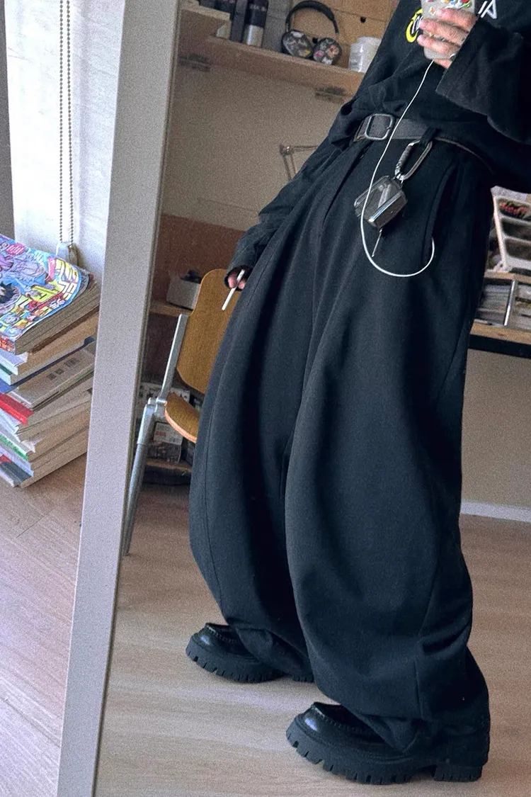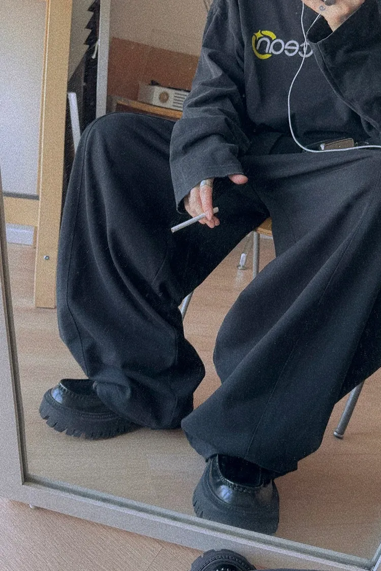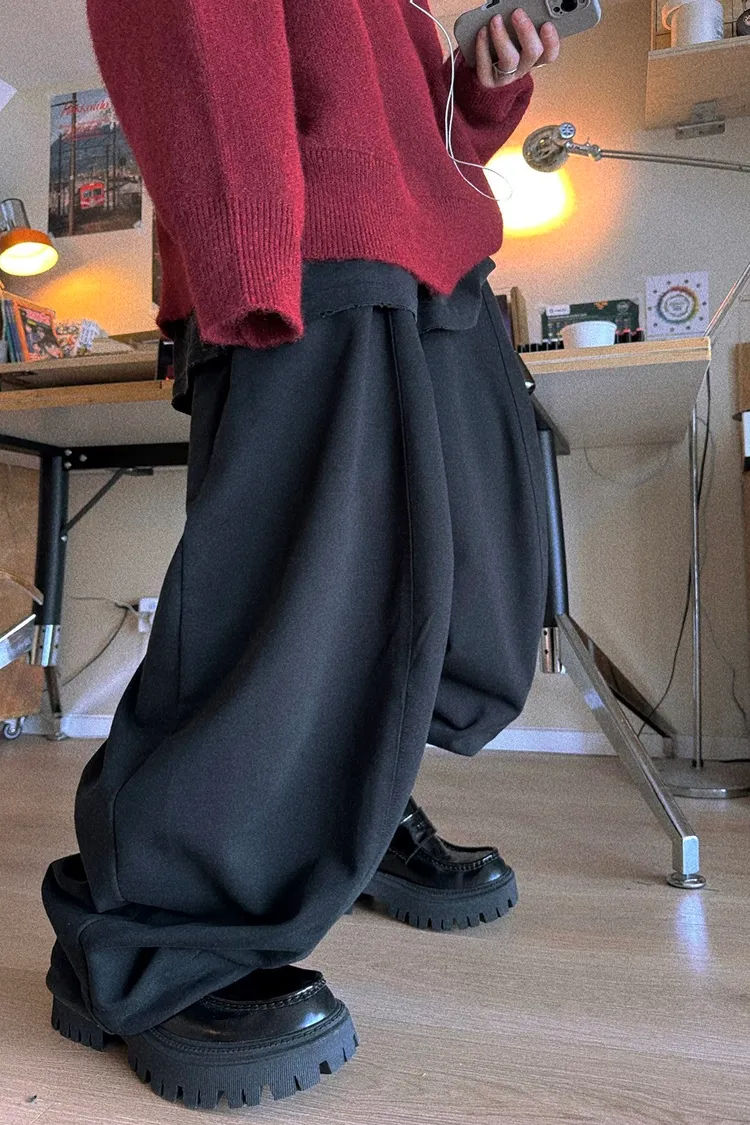 AUROCEAN 立體剪裁 彎刀闊形 棉褲 長褲(黑)