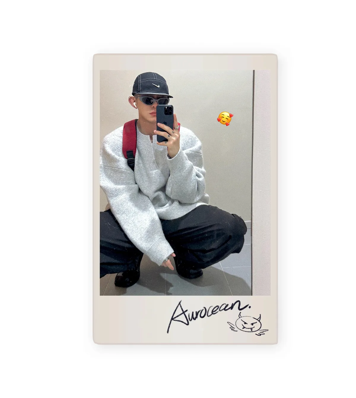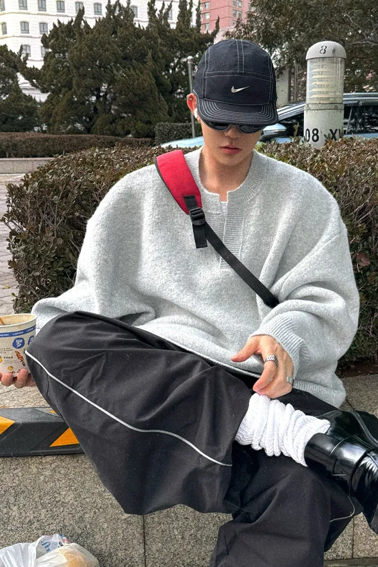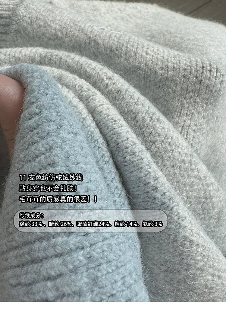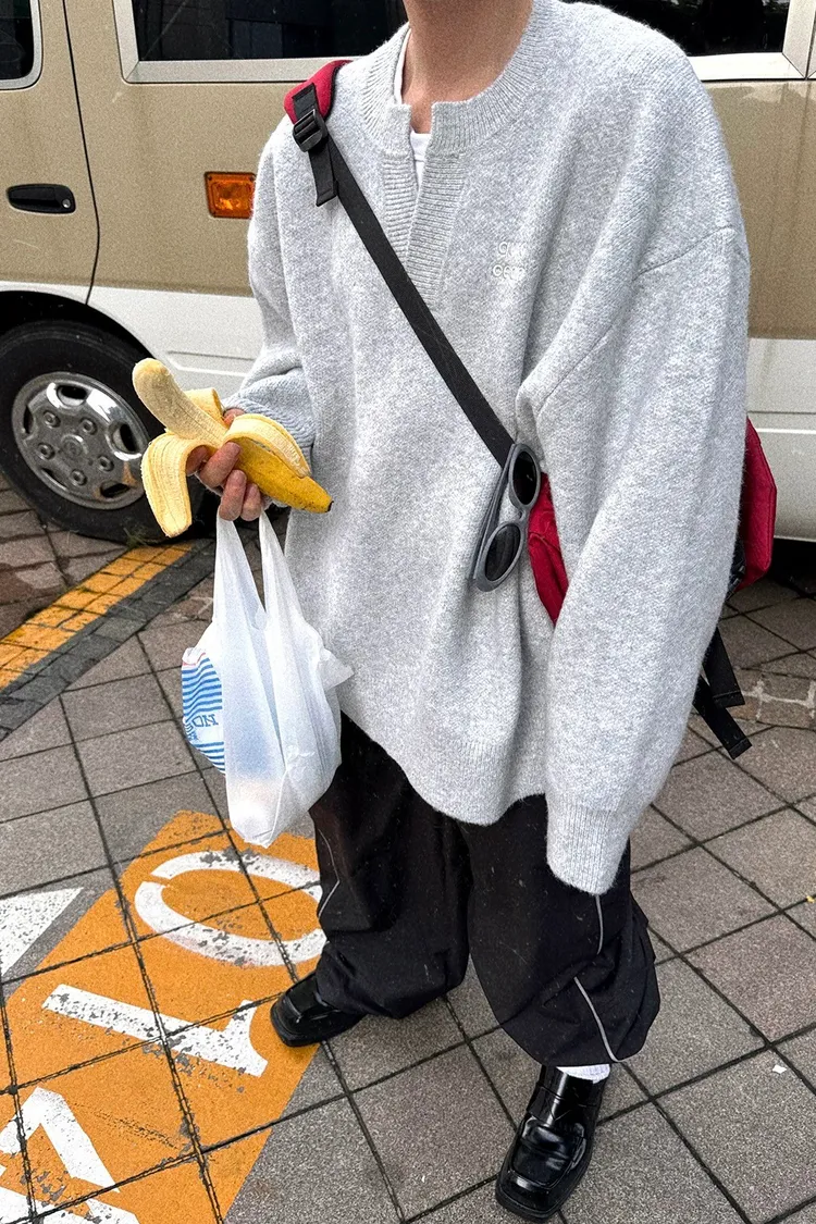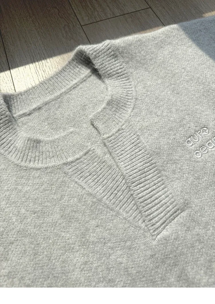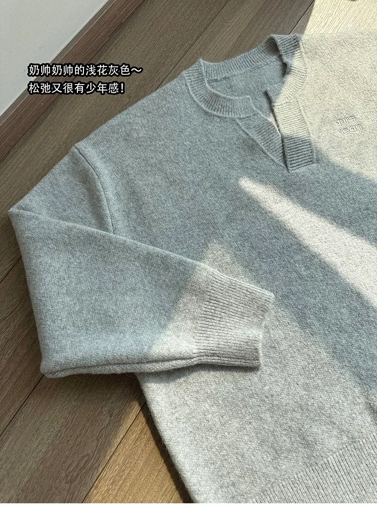 AUROCEAN 絨感學院 V領 撞色刺繡 毛衣(花灰)