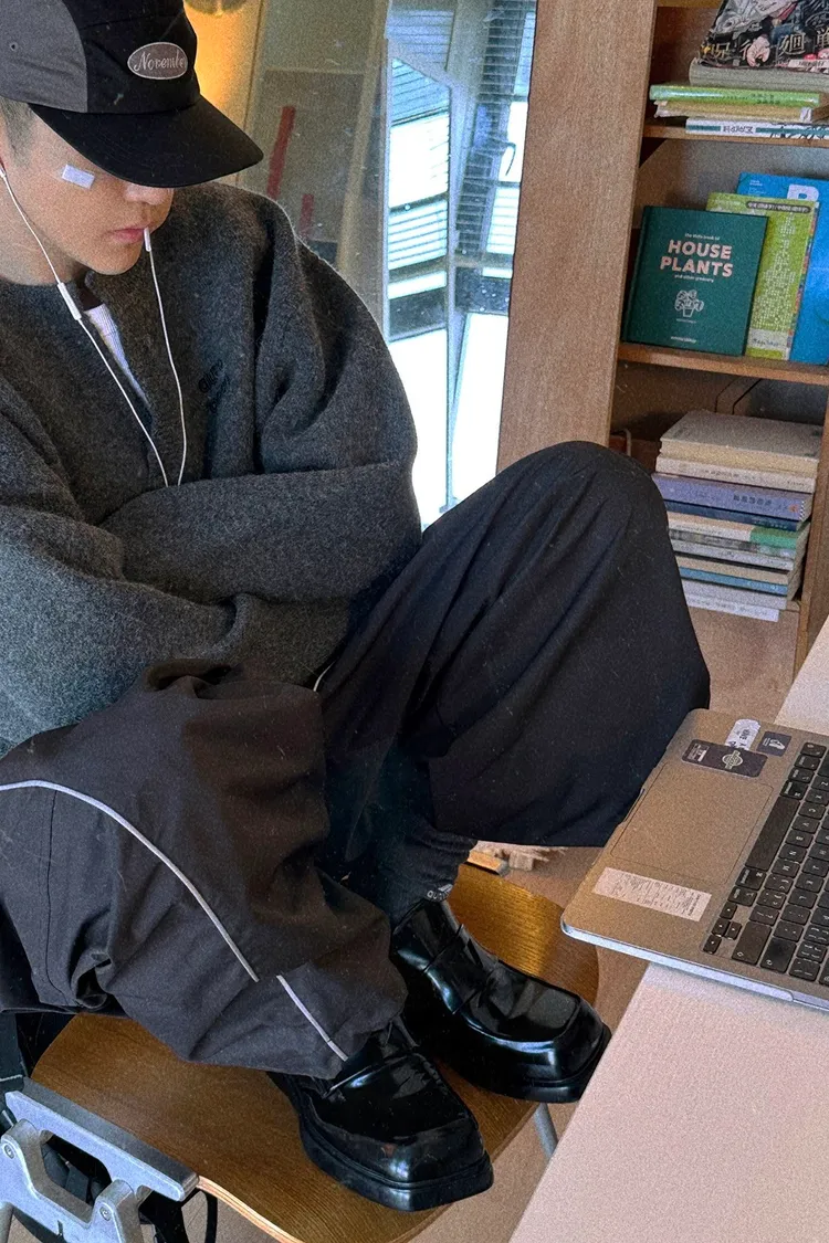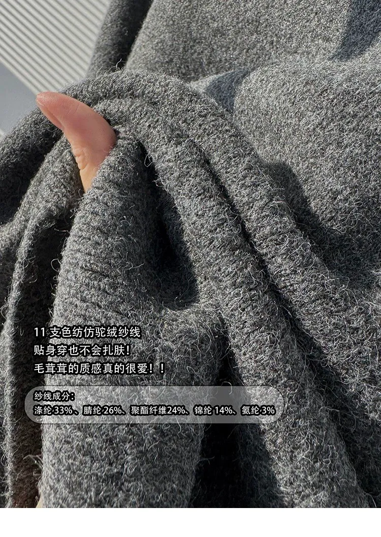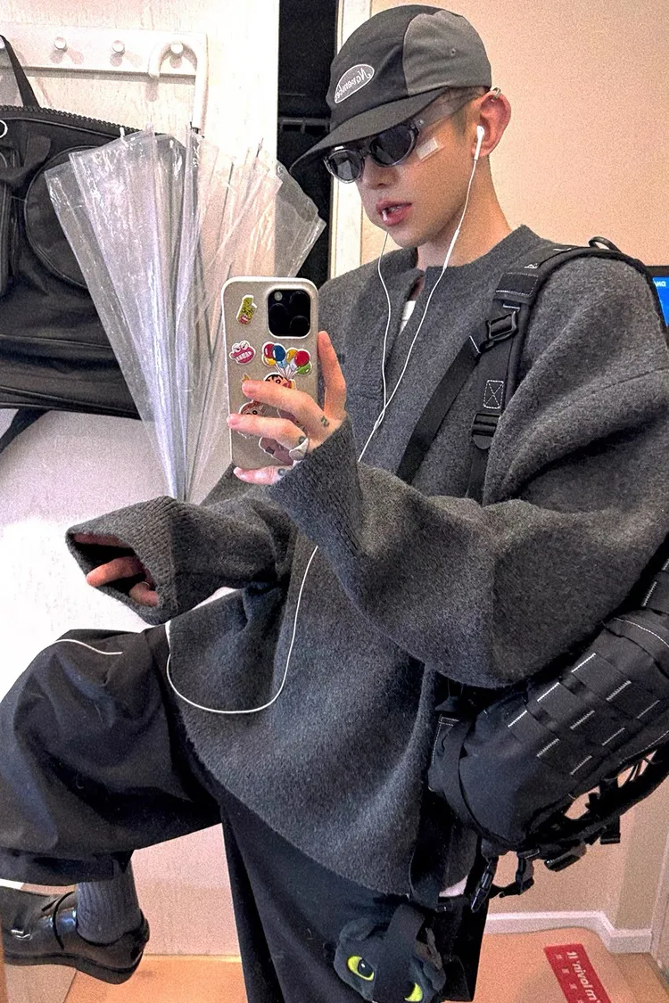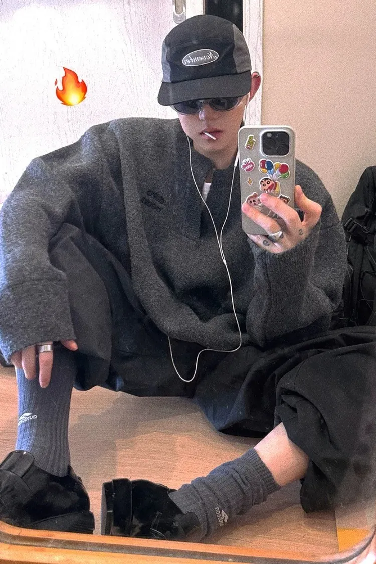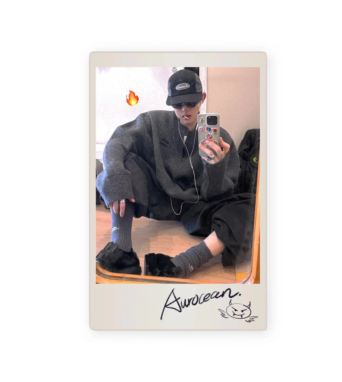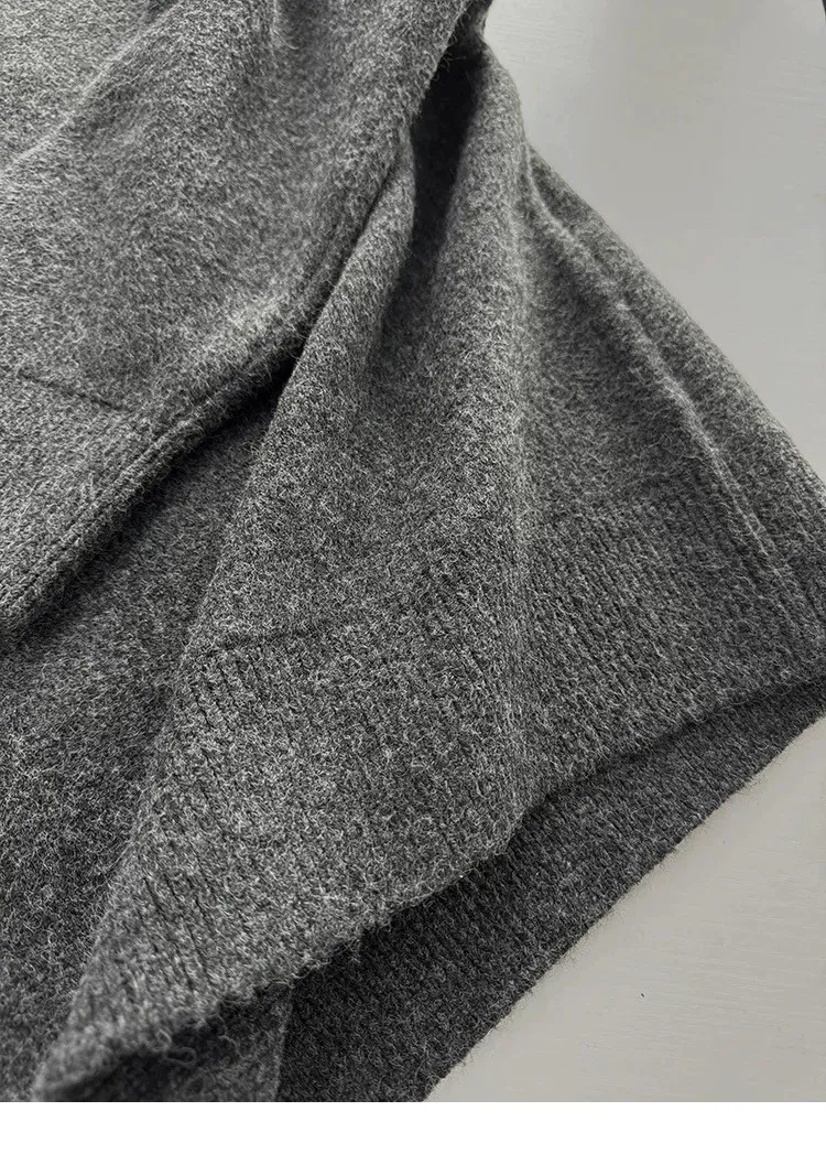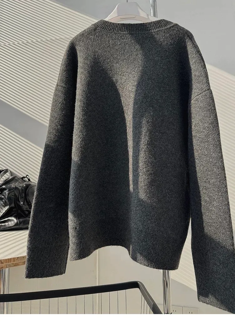 AUROCEAN 絨感學院 V領 撞色刺繡 毛衣(深灰)