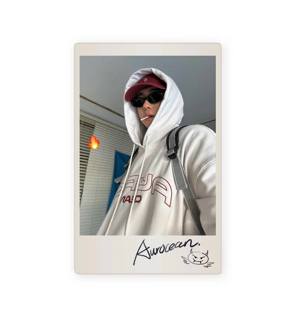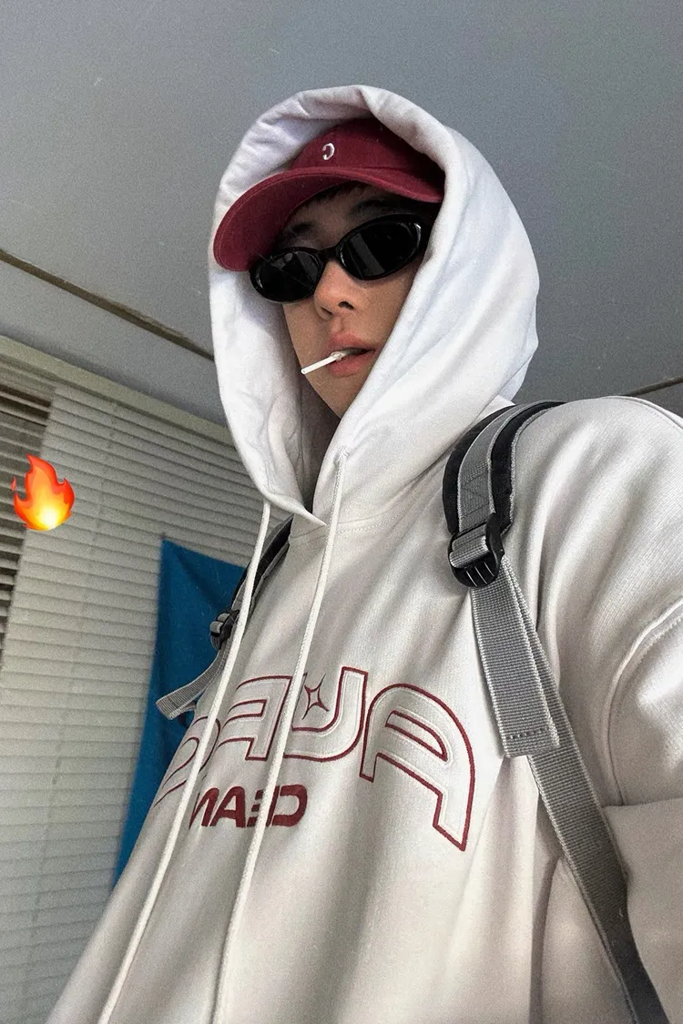 AUROCEAN 寬短版型 復古刺繡 帽踢(白)