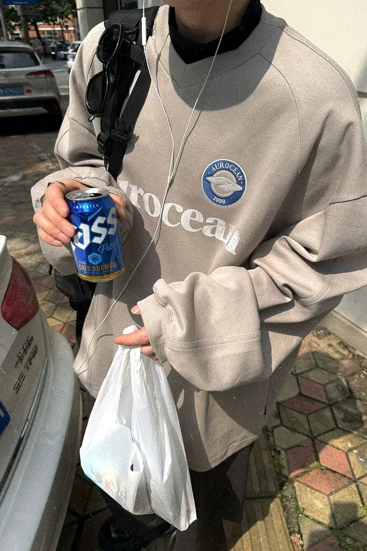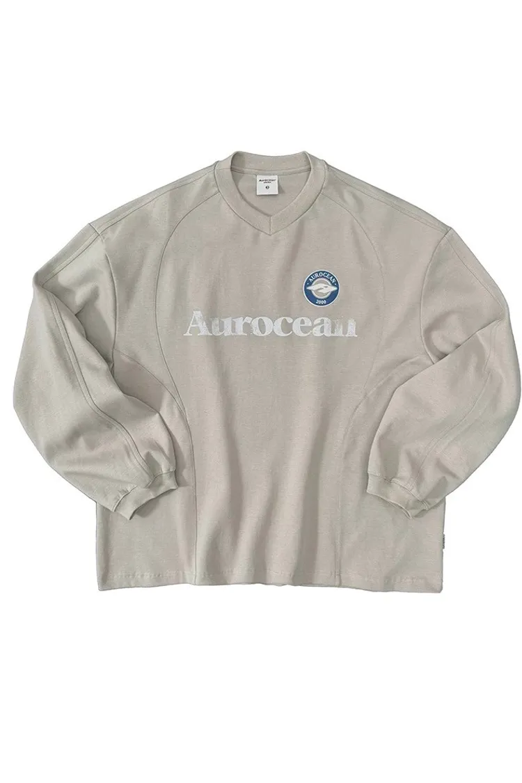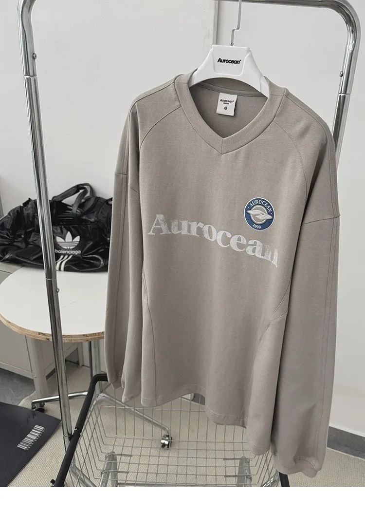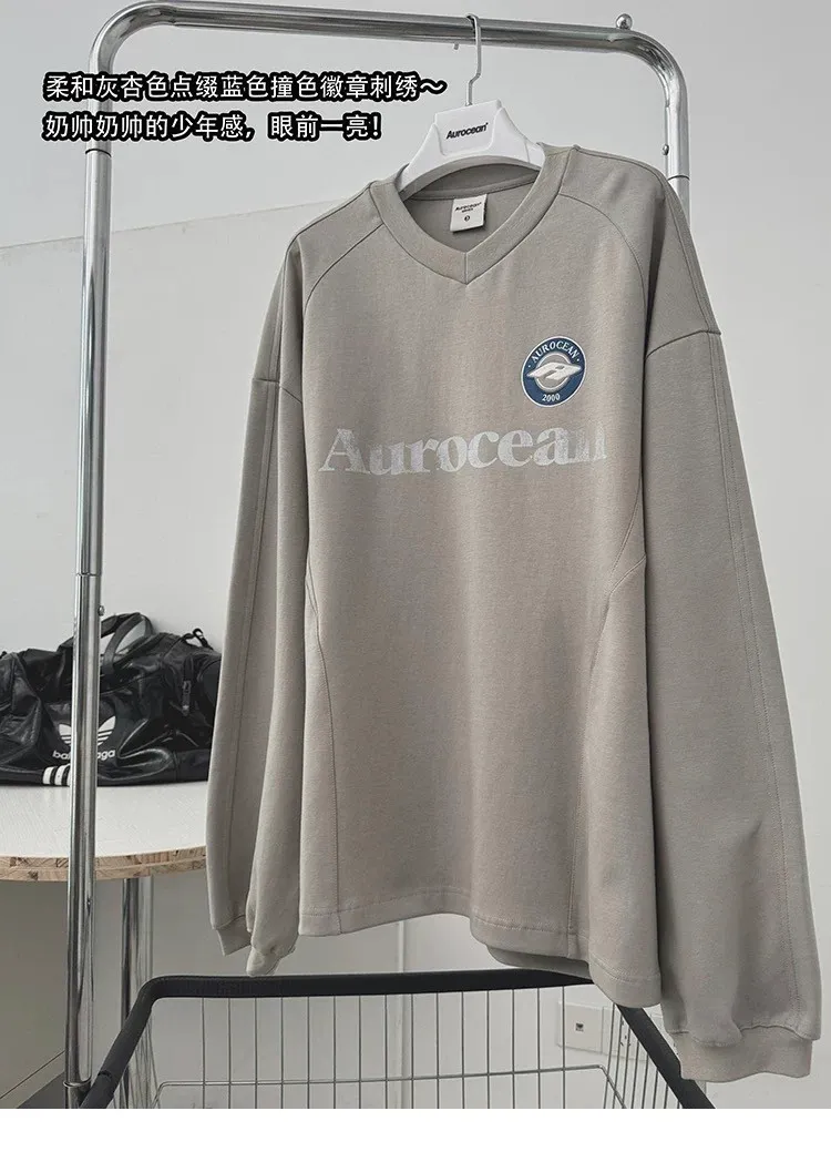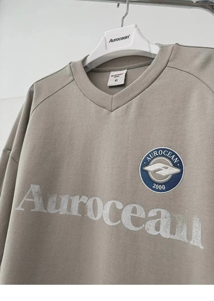 AUROCEAN 徽章刺繡 球衣感 OS 大學踢(灰杏)