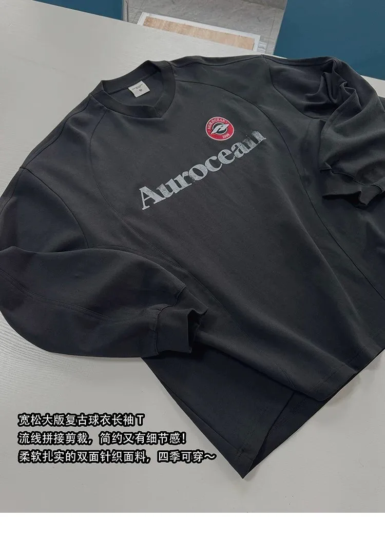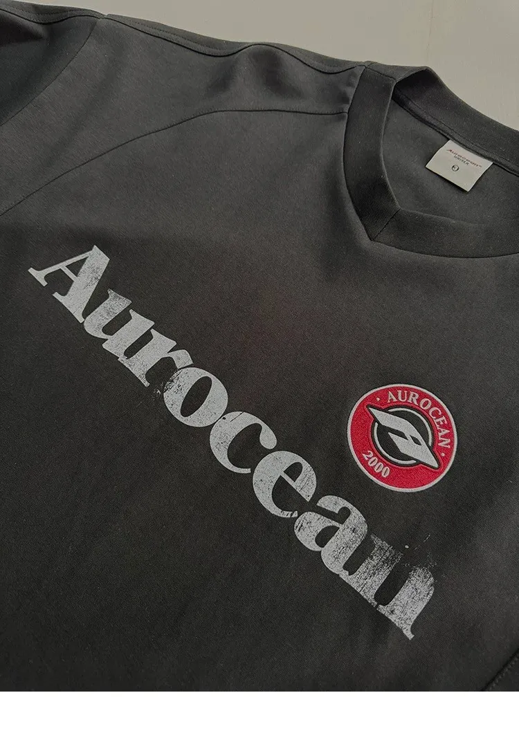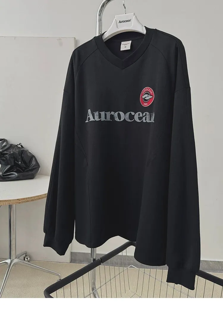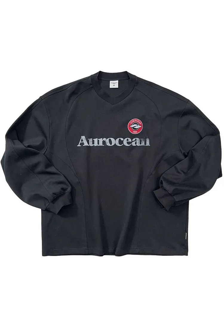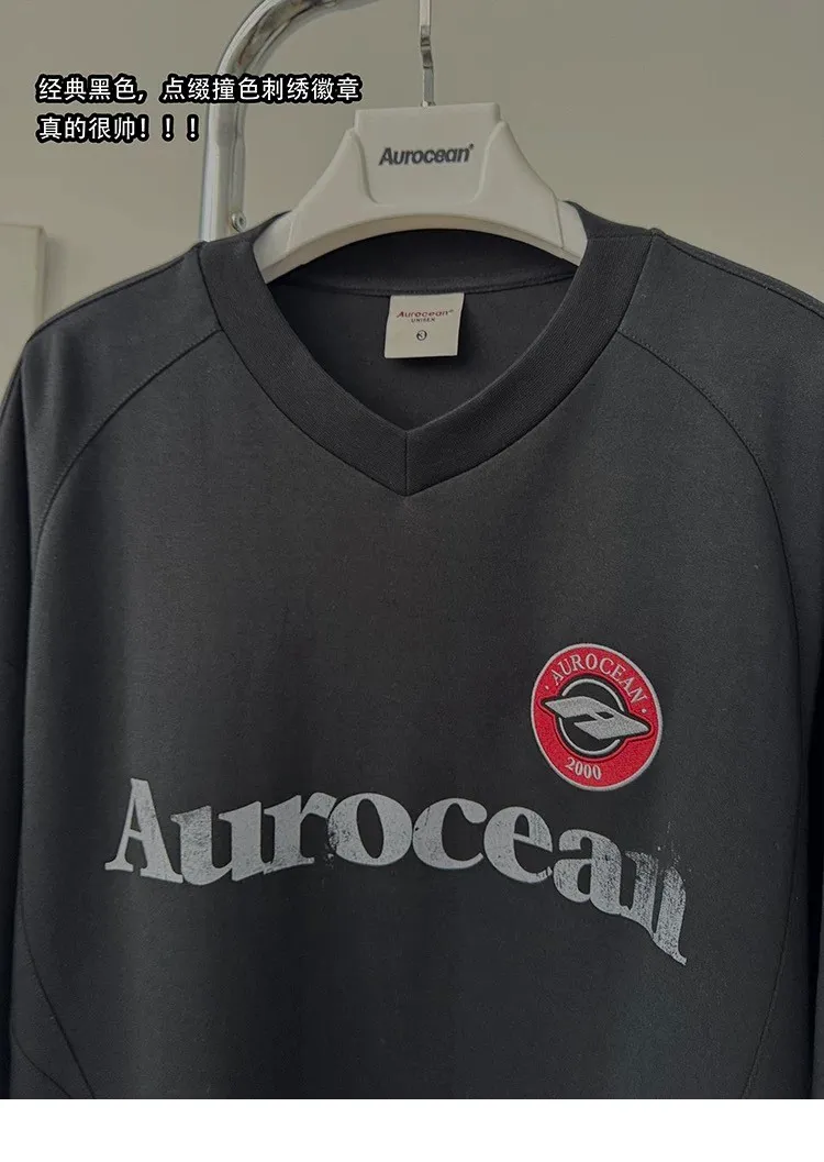 AUROCEAN 徽章刺繡 球衣感 OS 大學踢(黑)