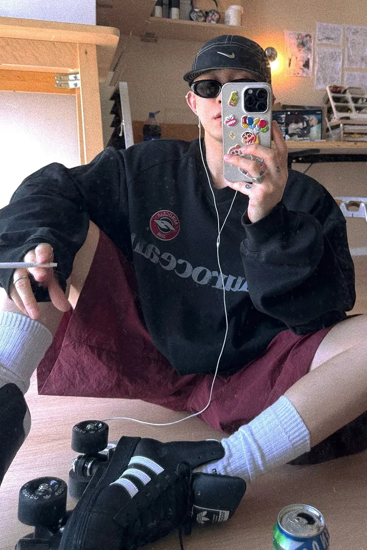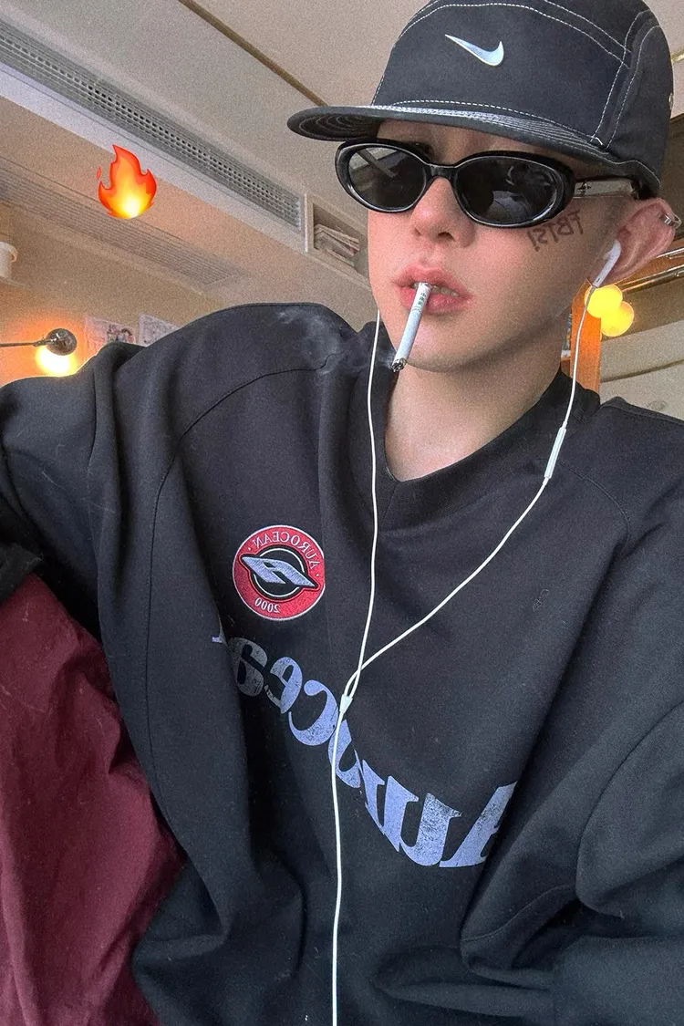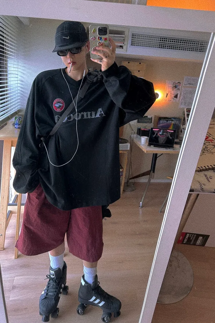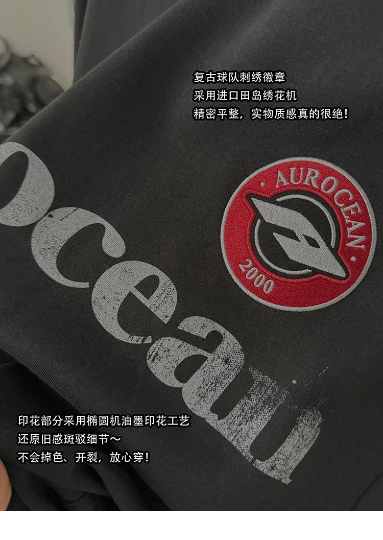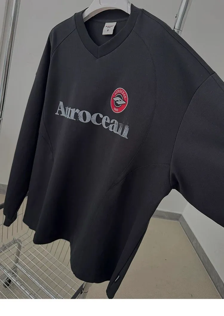AUROCEAN 徽章刺繡 球衣感 OS 大學踢(黑)
