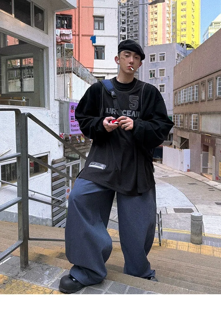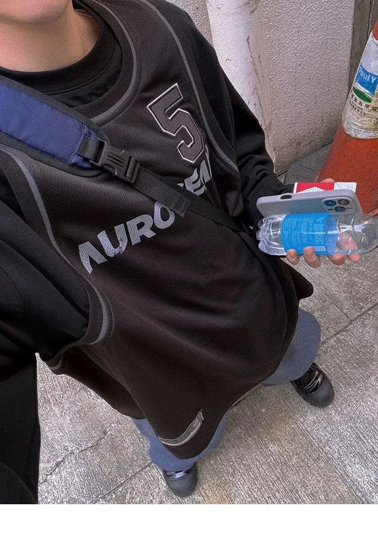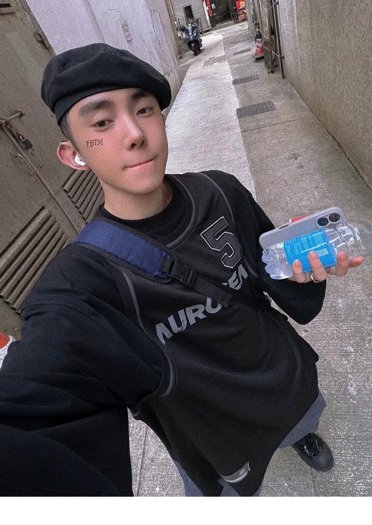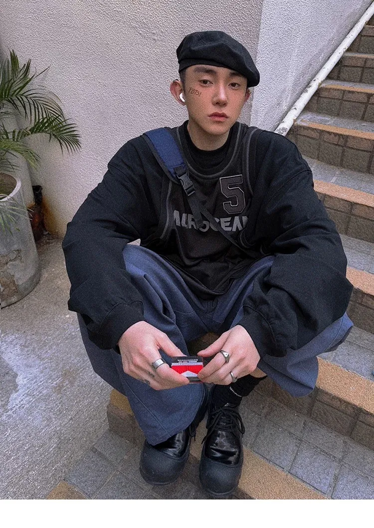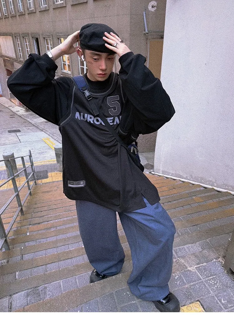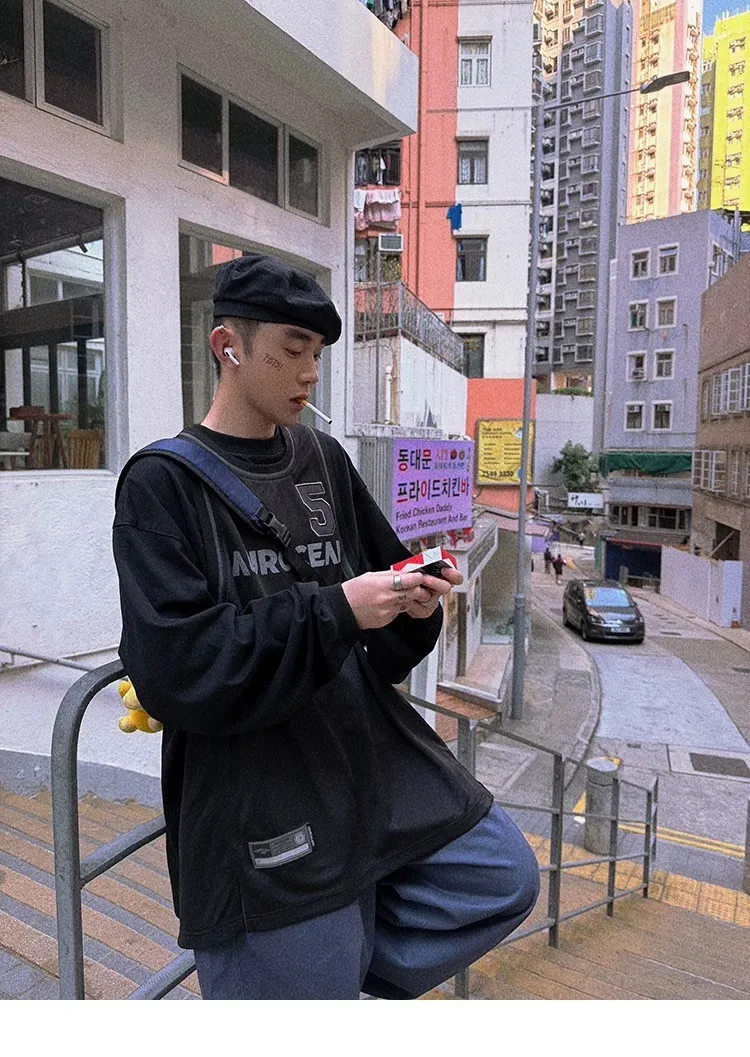 AUROCEAN 復古運動 拼接球衣 OS 長袖 (黑色)