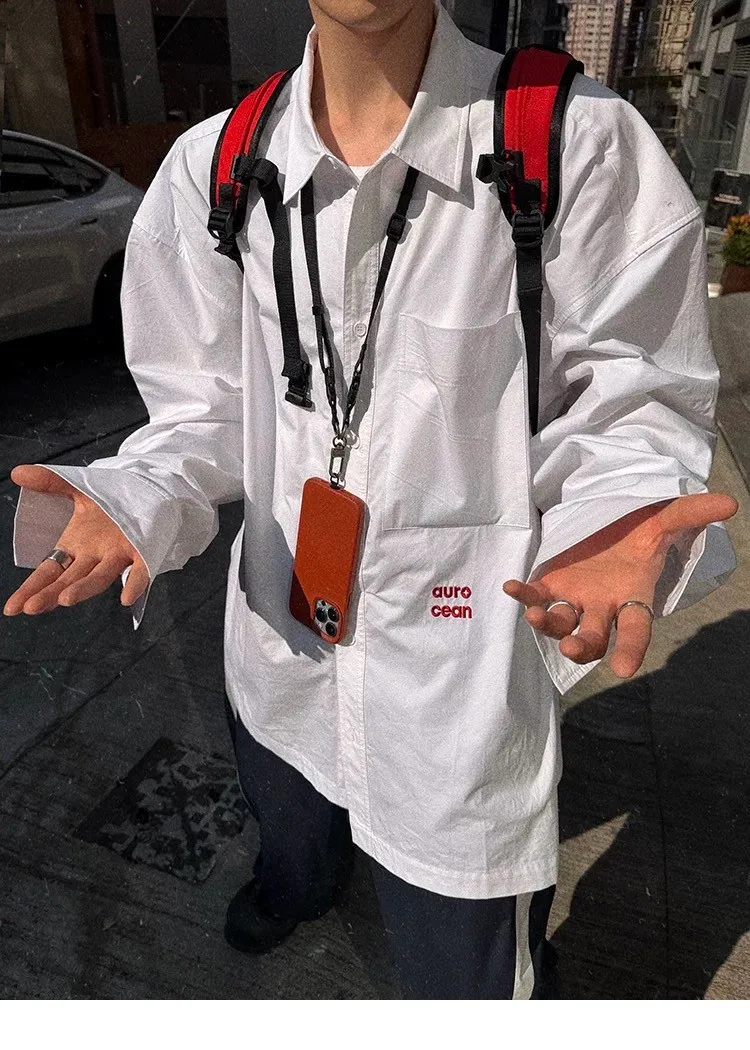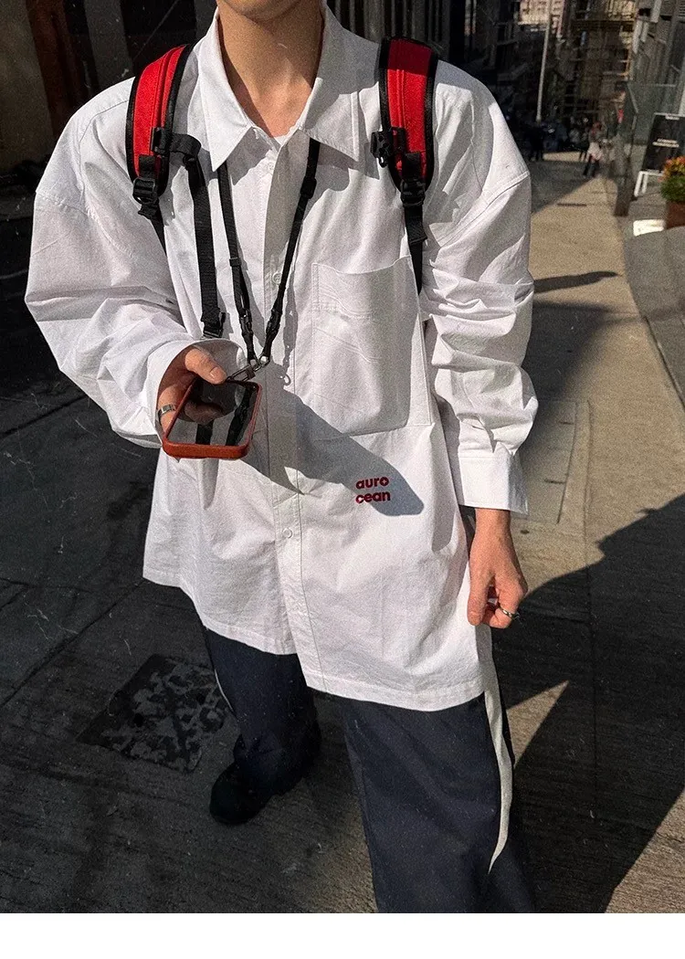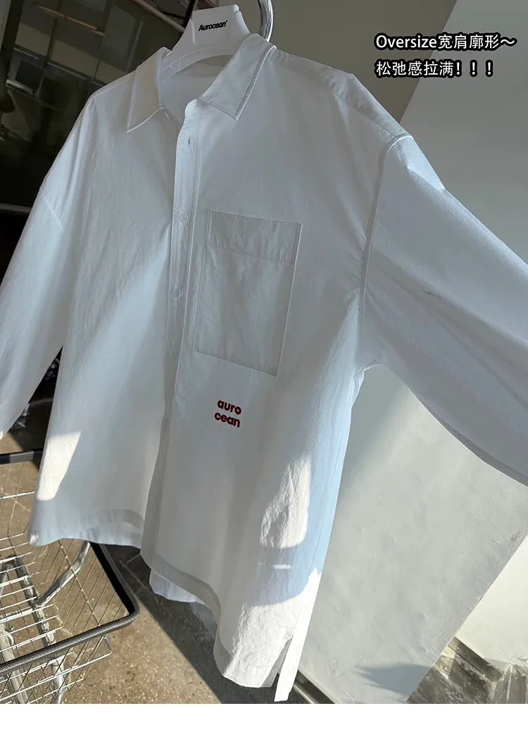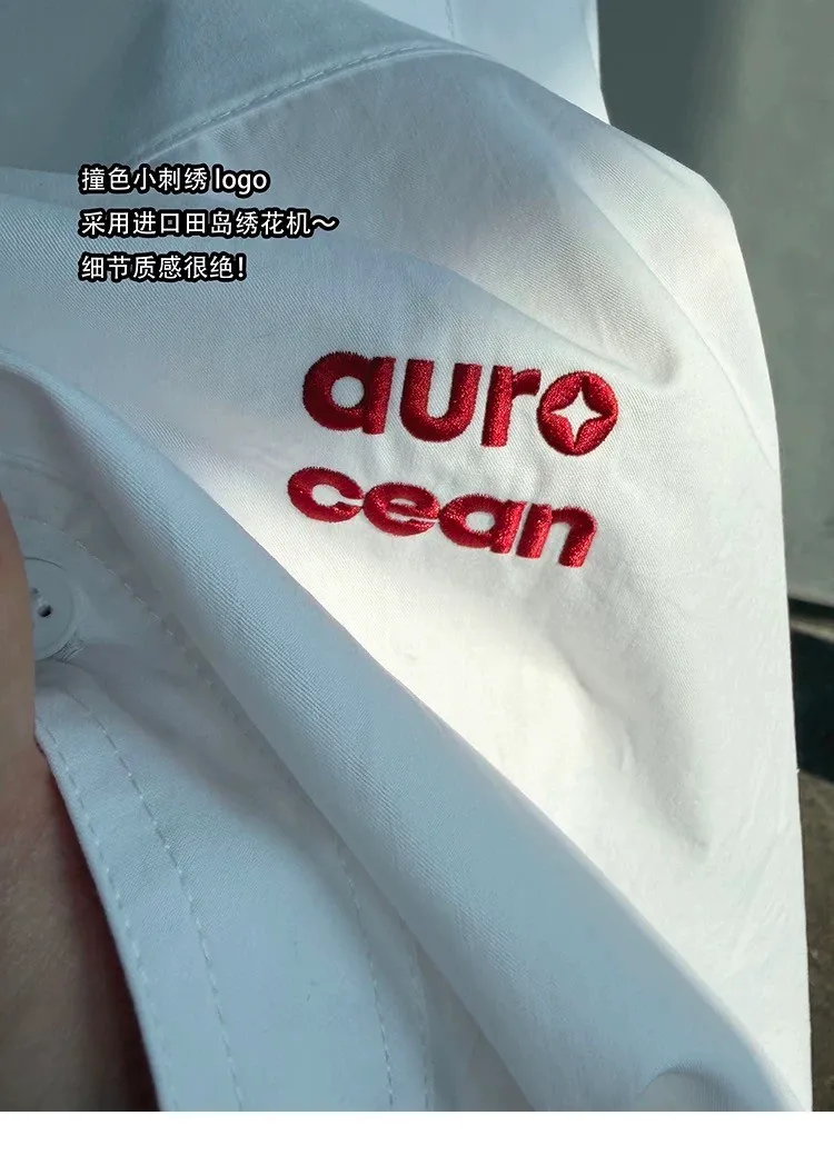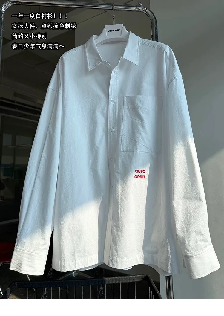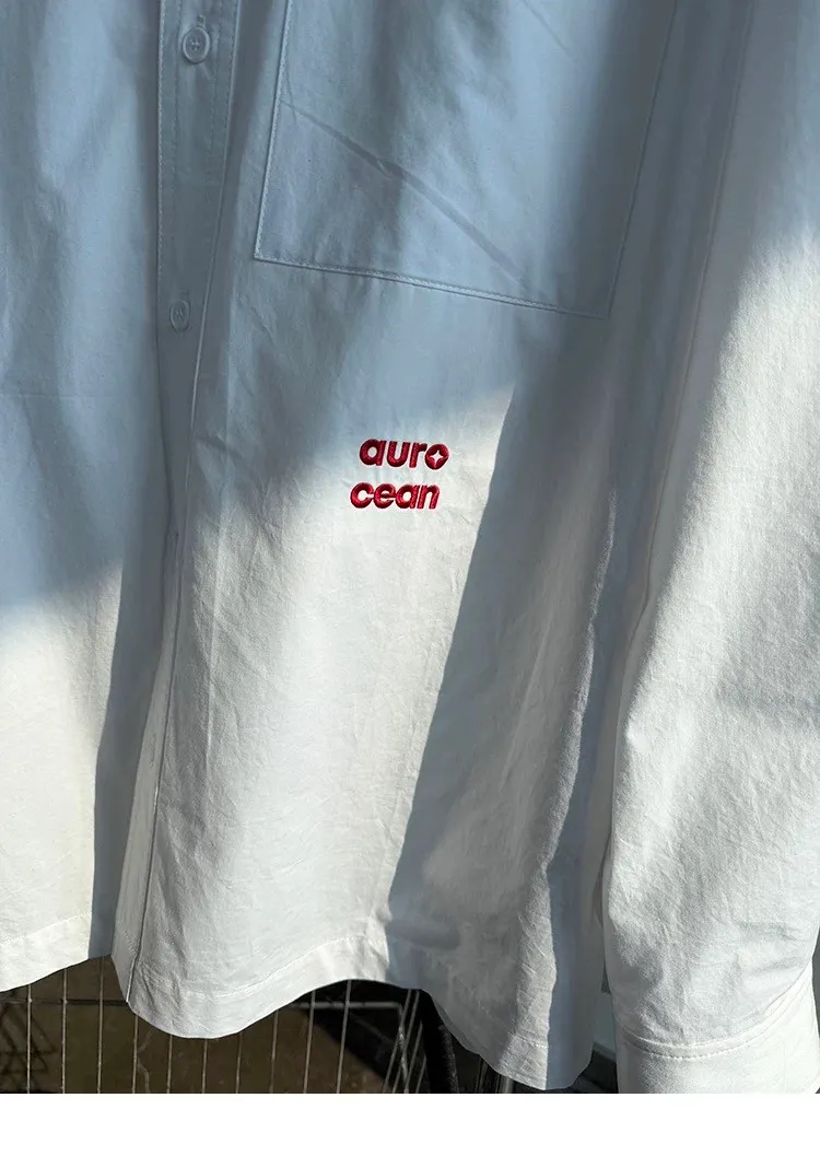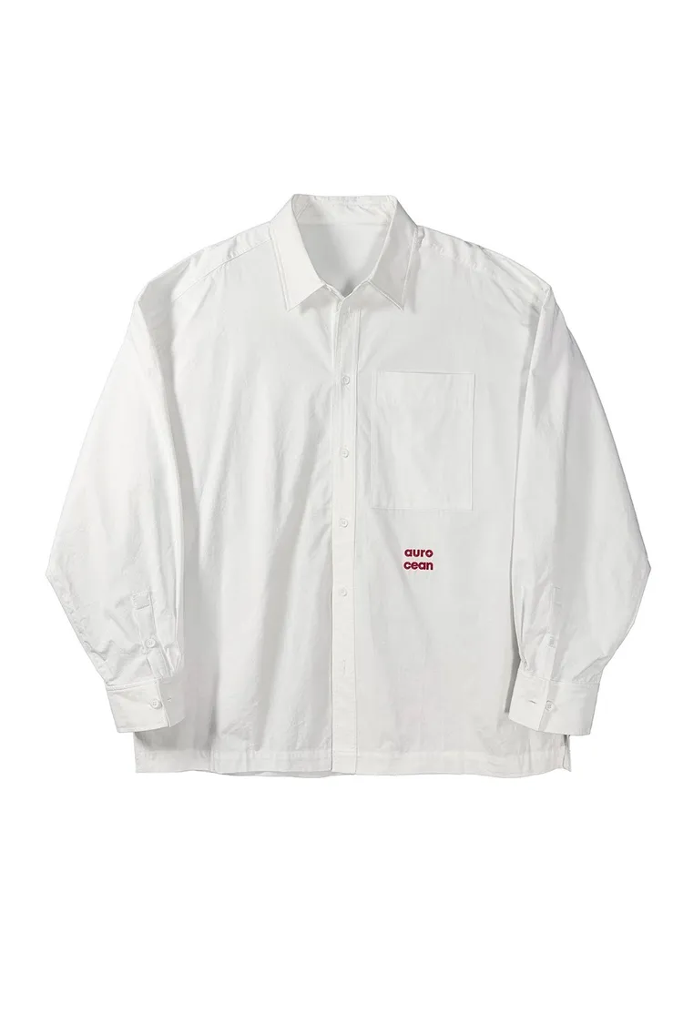 AUROCEAN 年度首選 寬肩闊型 刺繡 襯衫(白色)