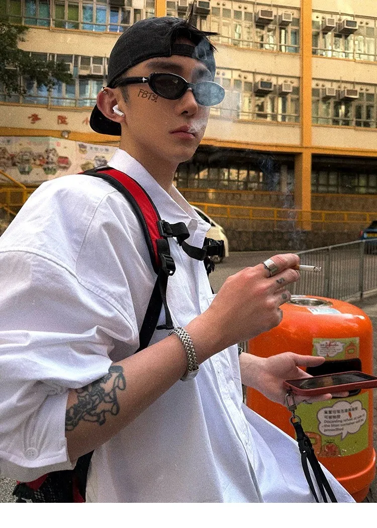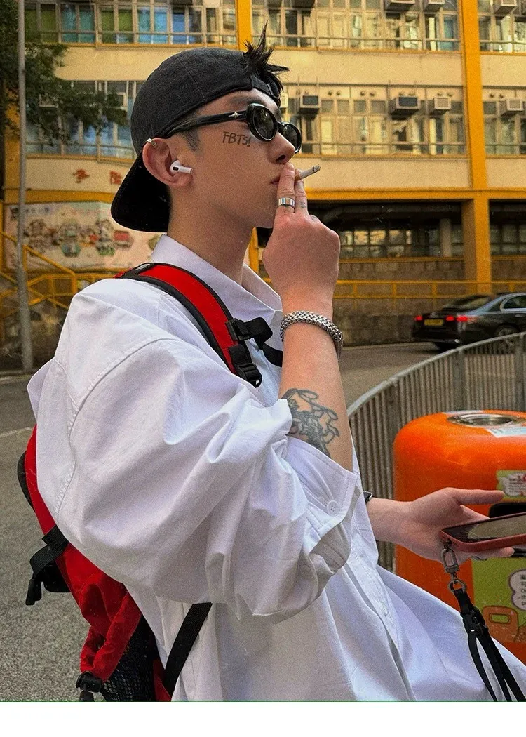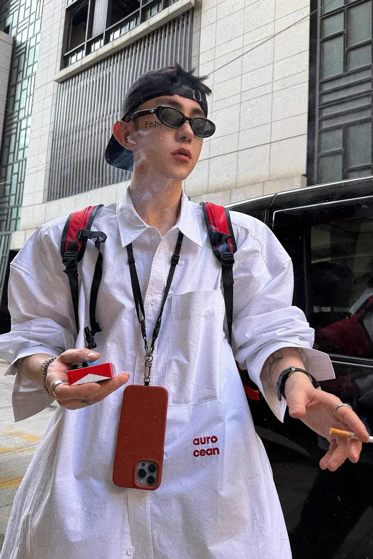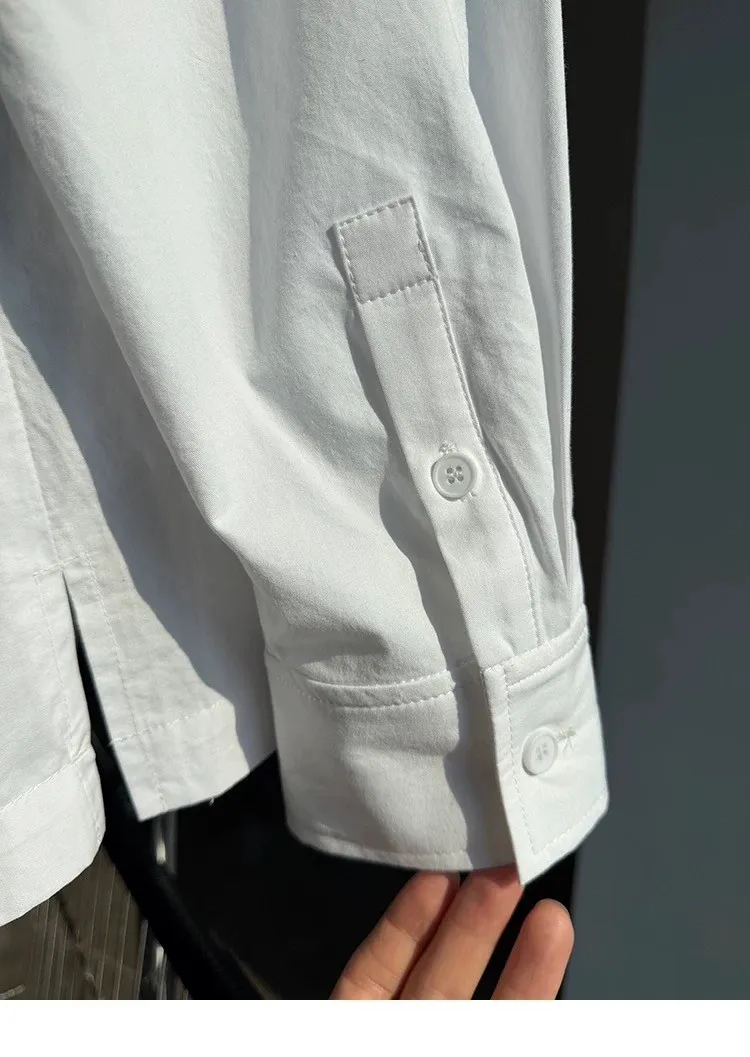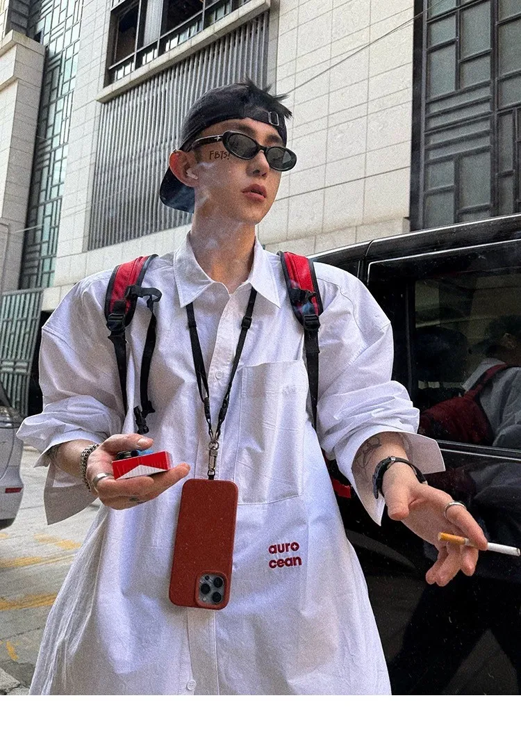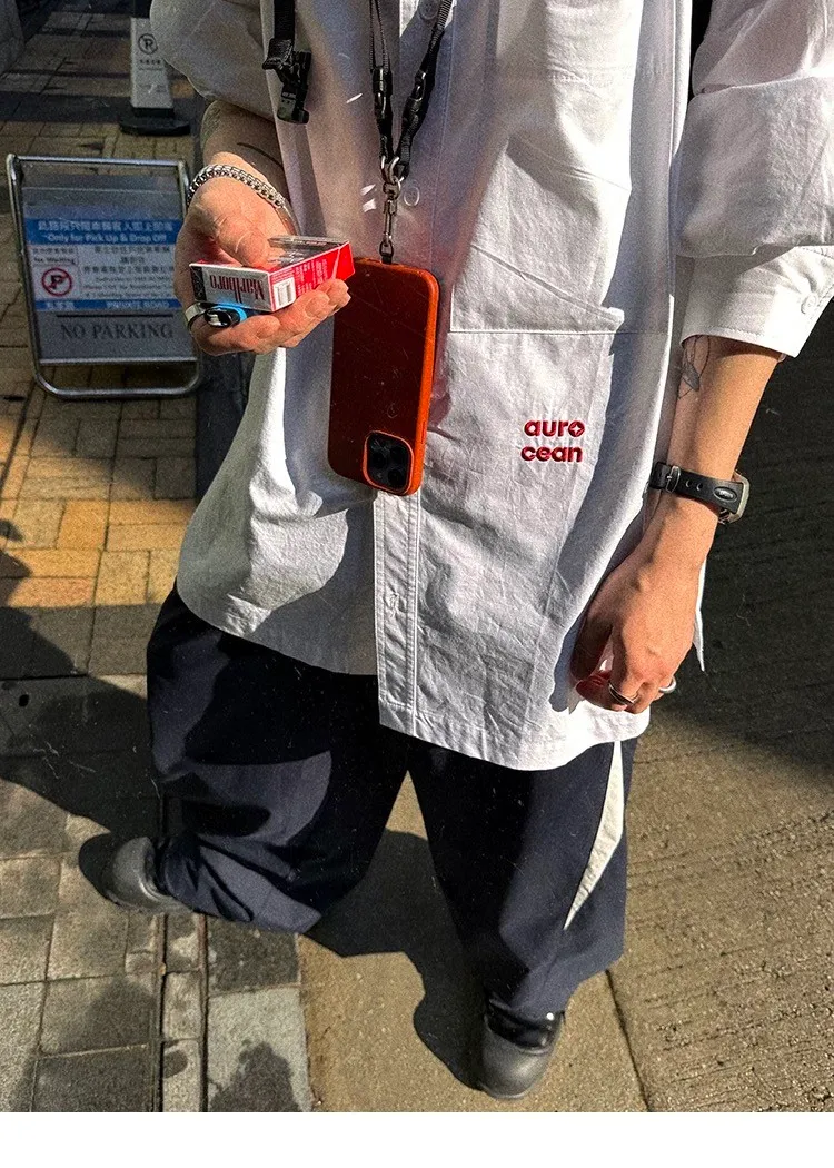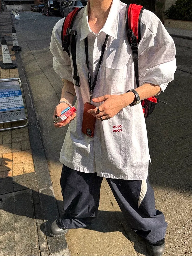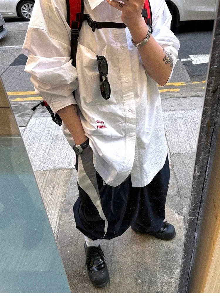AUROCEAN 年度首選 寬肩闊型 刺繡 襯衫(白色)