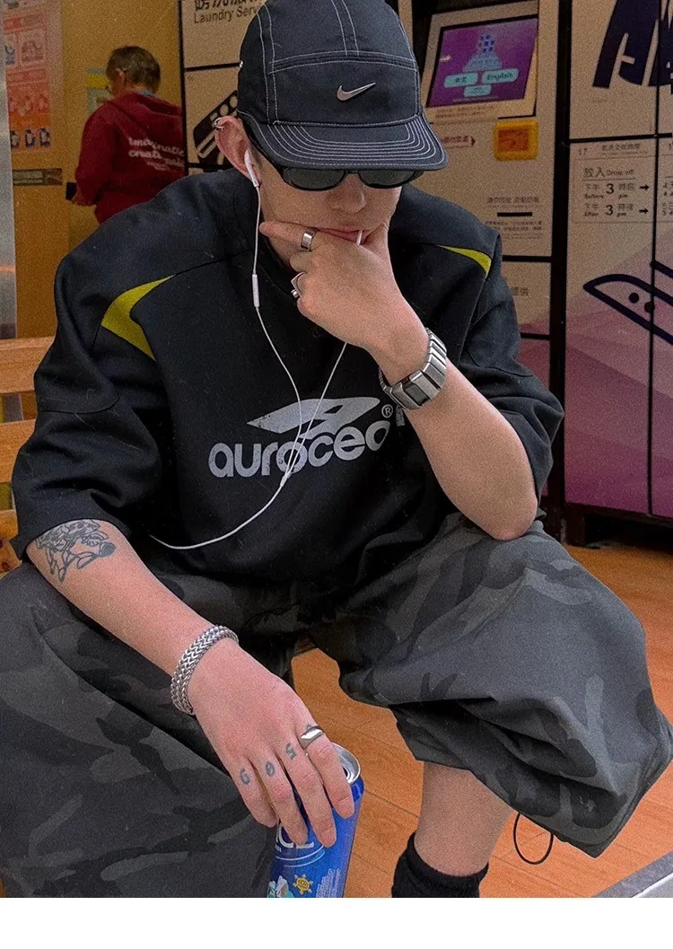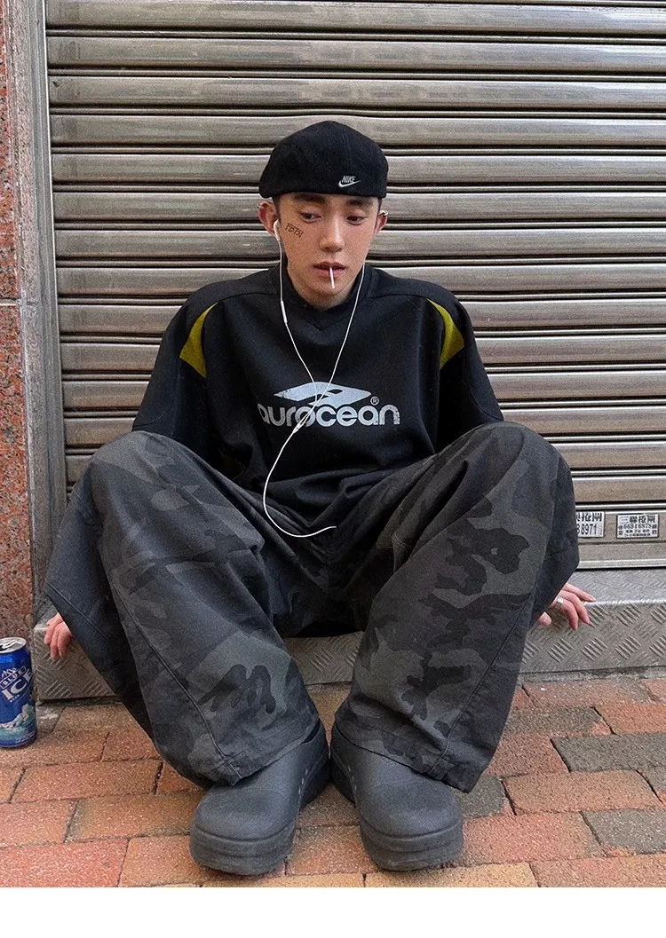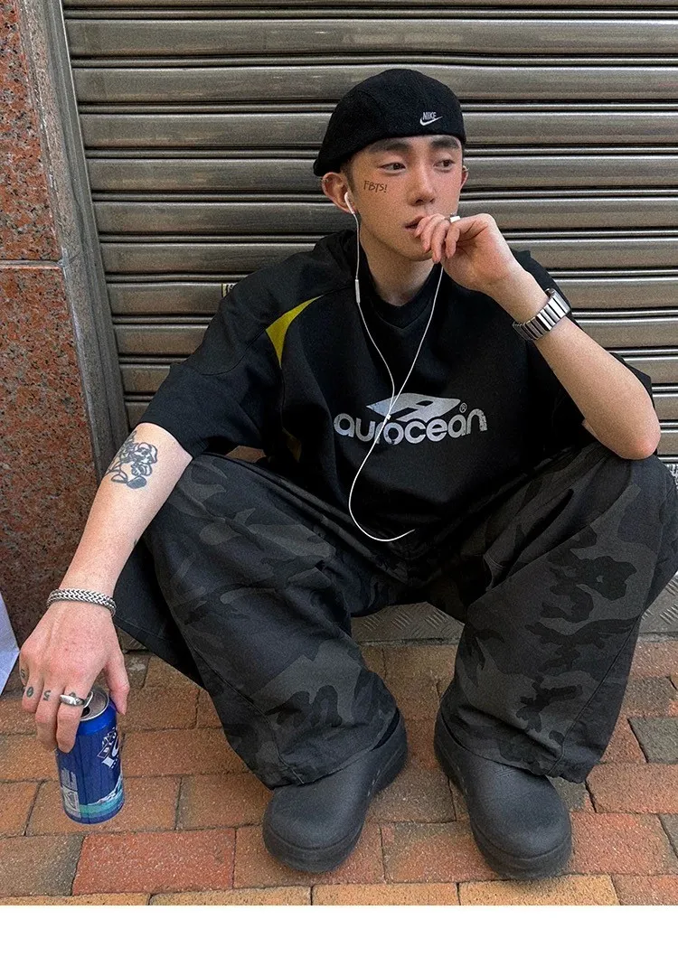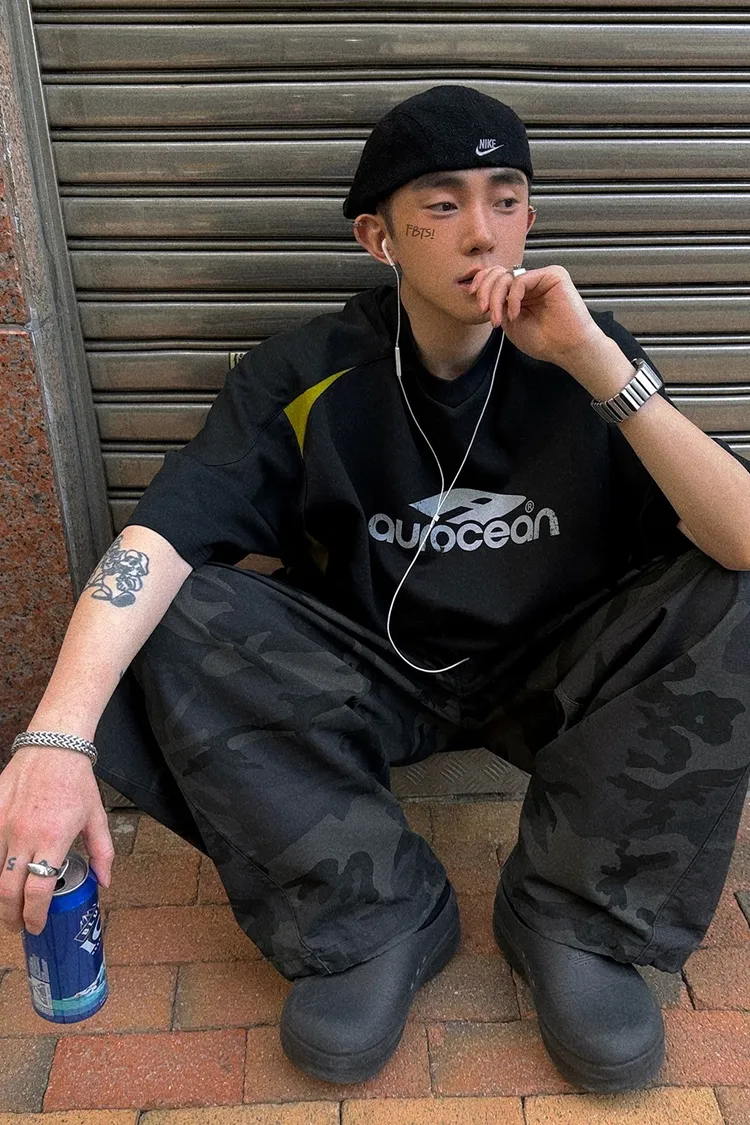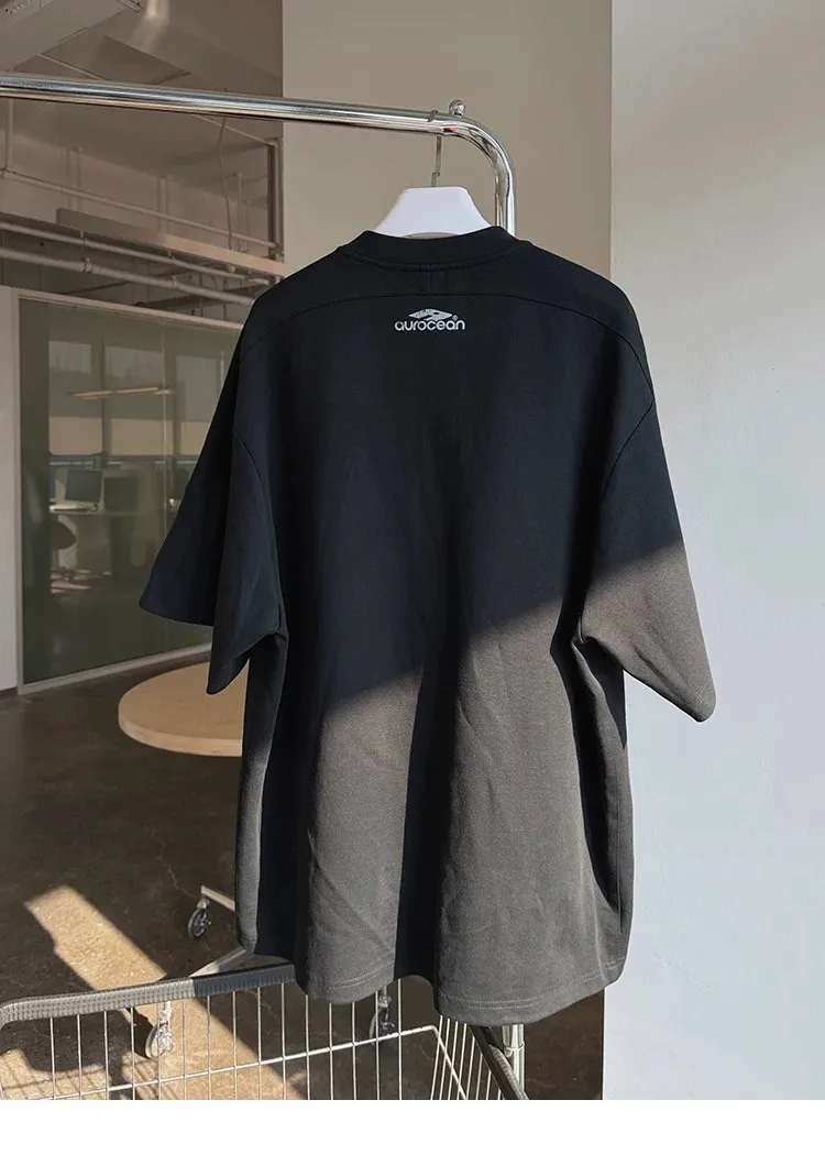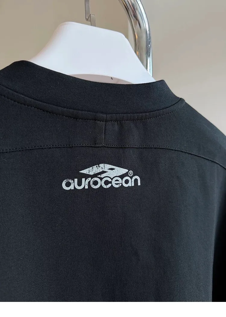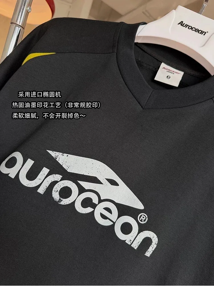 AUROCEAN 復古運動 撞色拼接 OS 短袖 (黑黃)