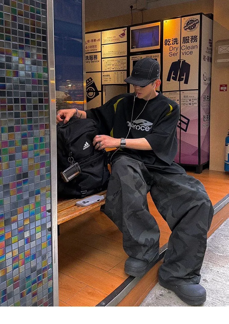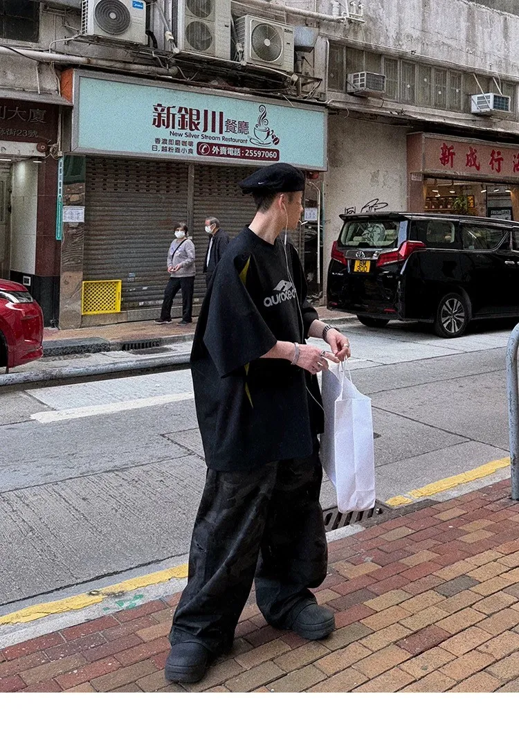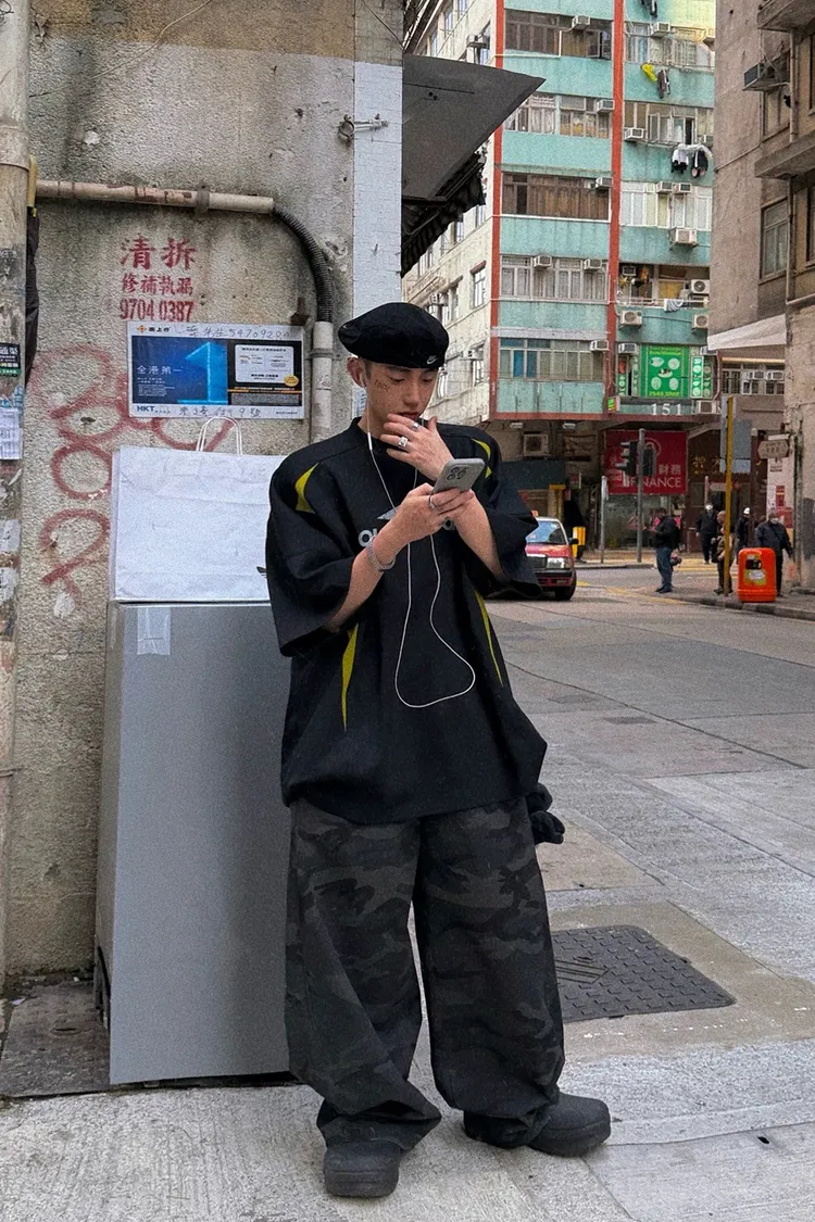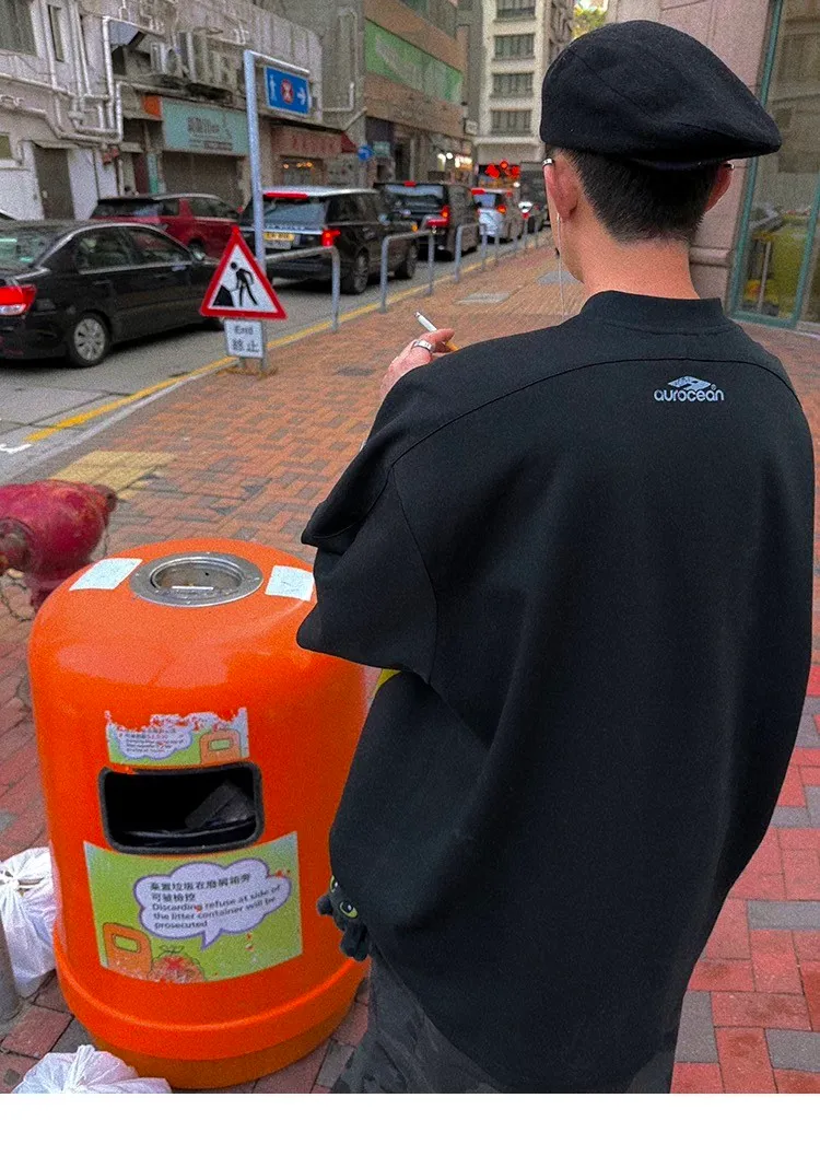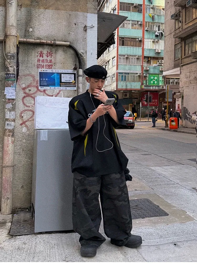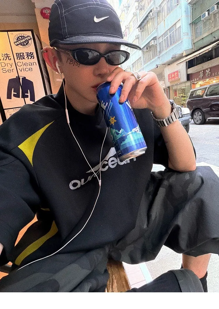 AUROCEAN 復古運動 撞色拼接 OS 短袖 (黑黃)