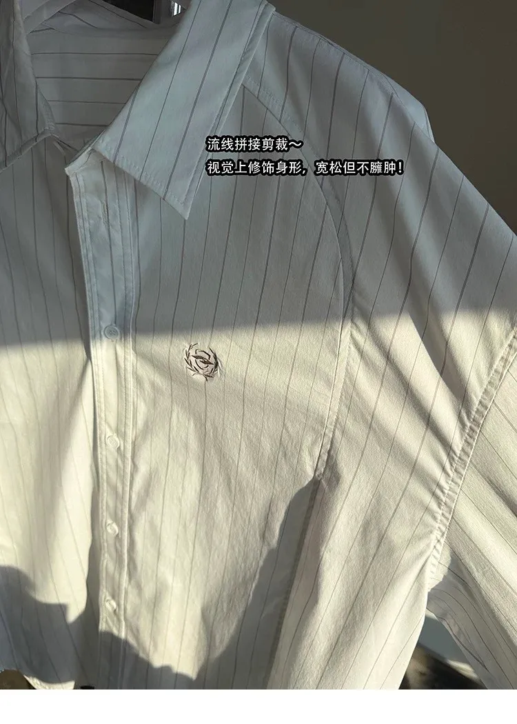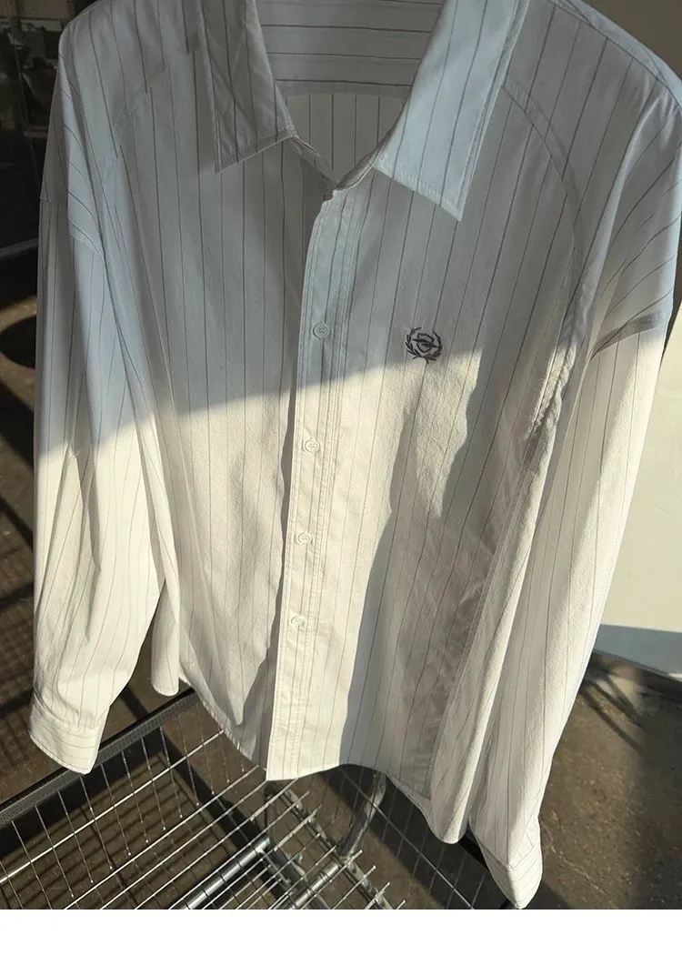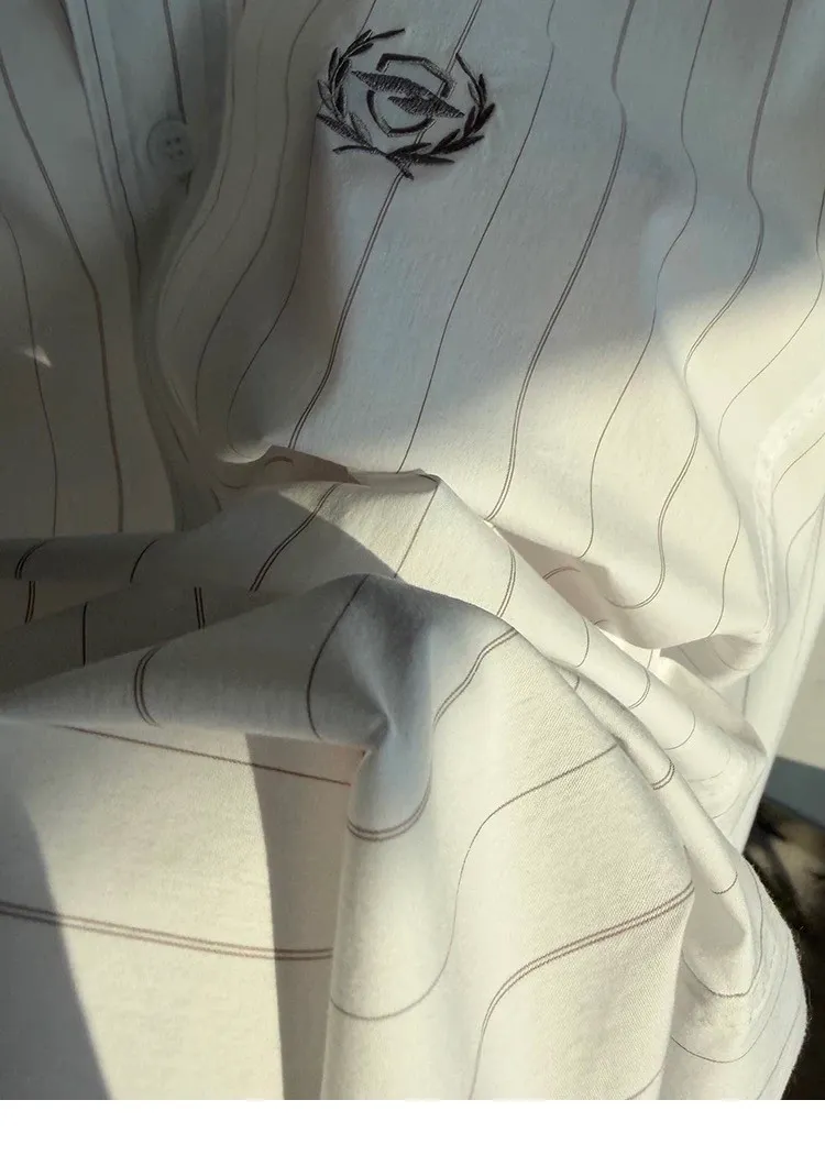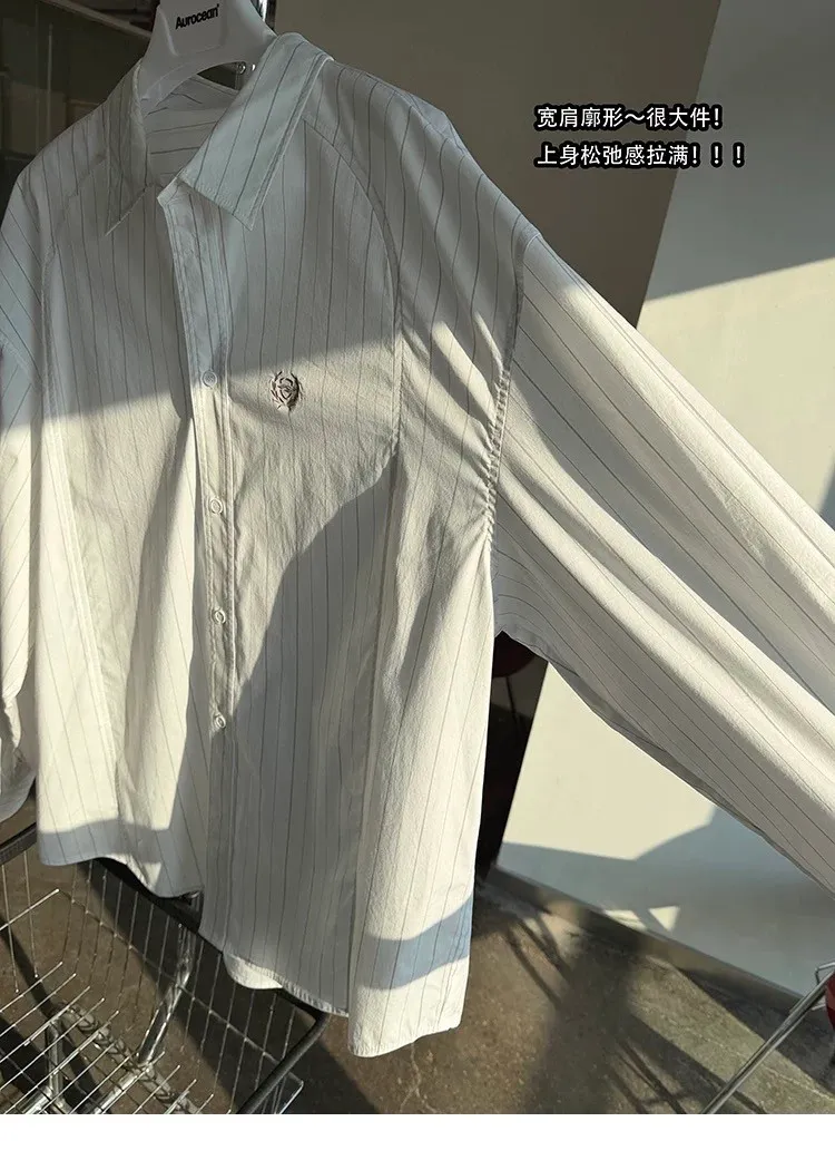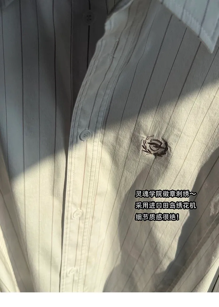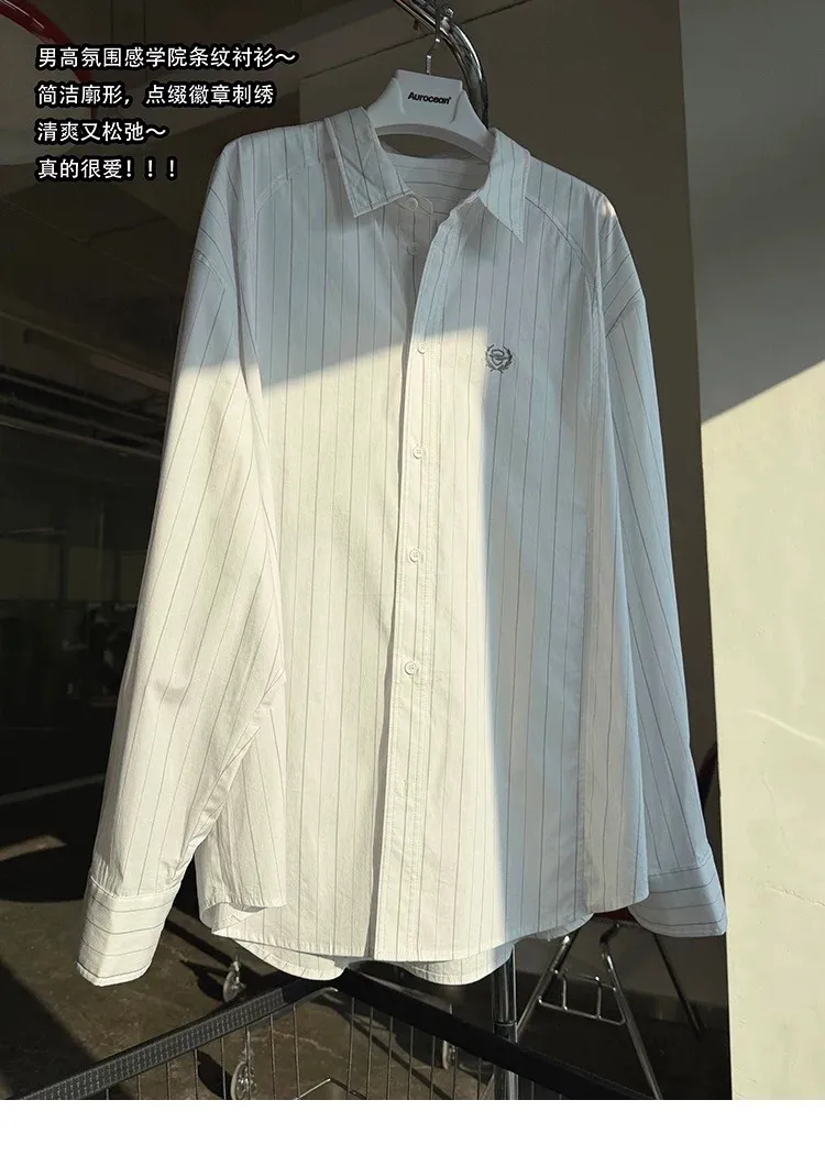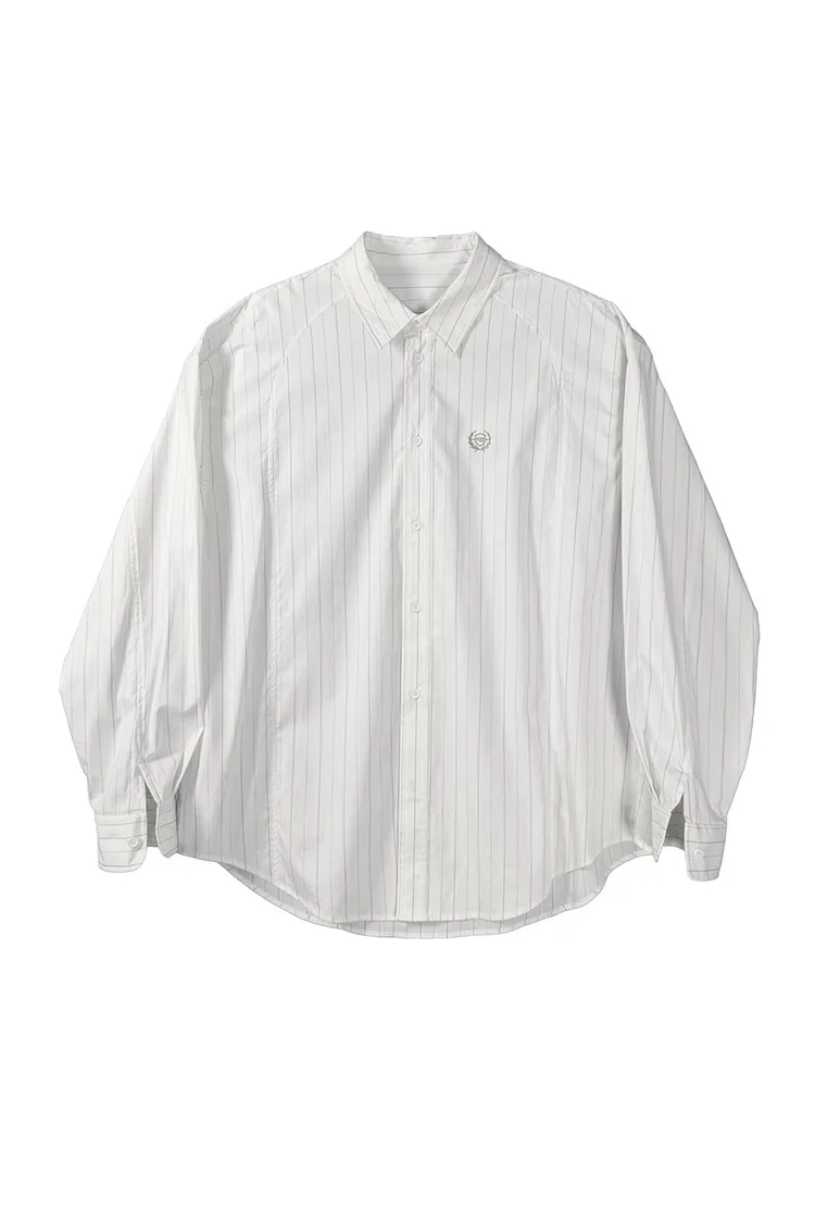 AUROCEAN 學院徽章刺繡 條紋 OS 襯衫(白色)