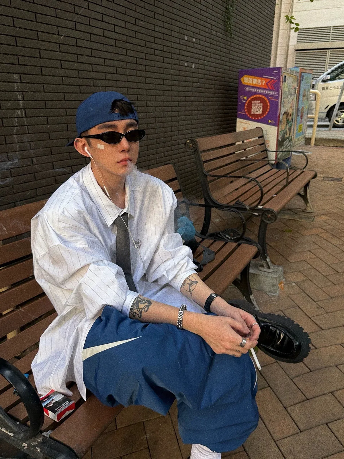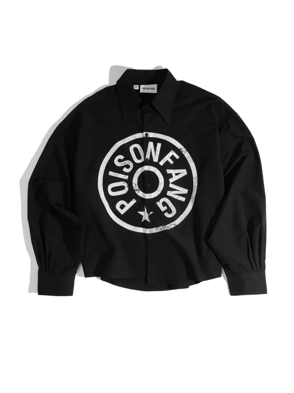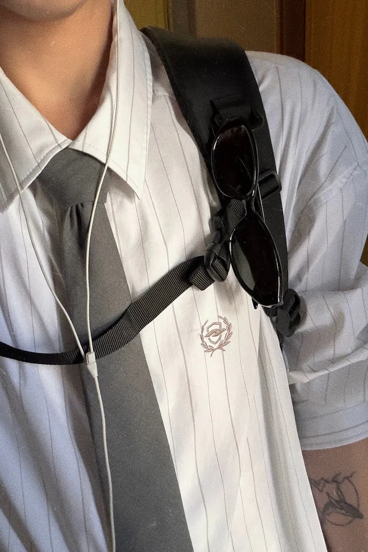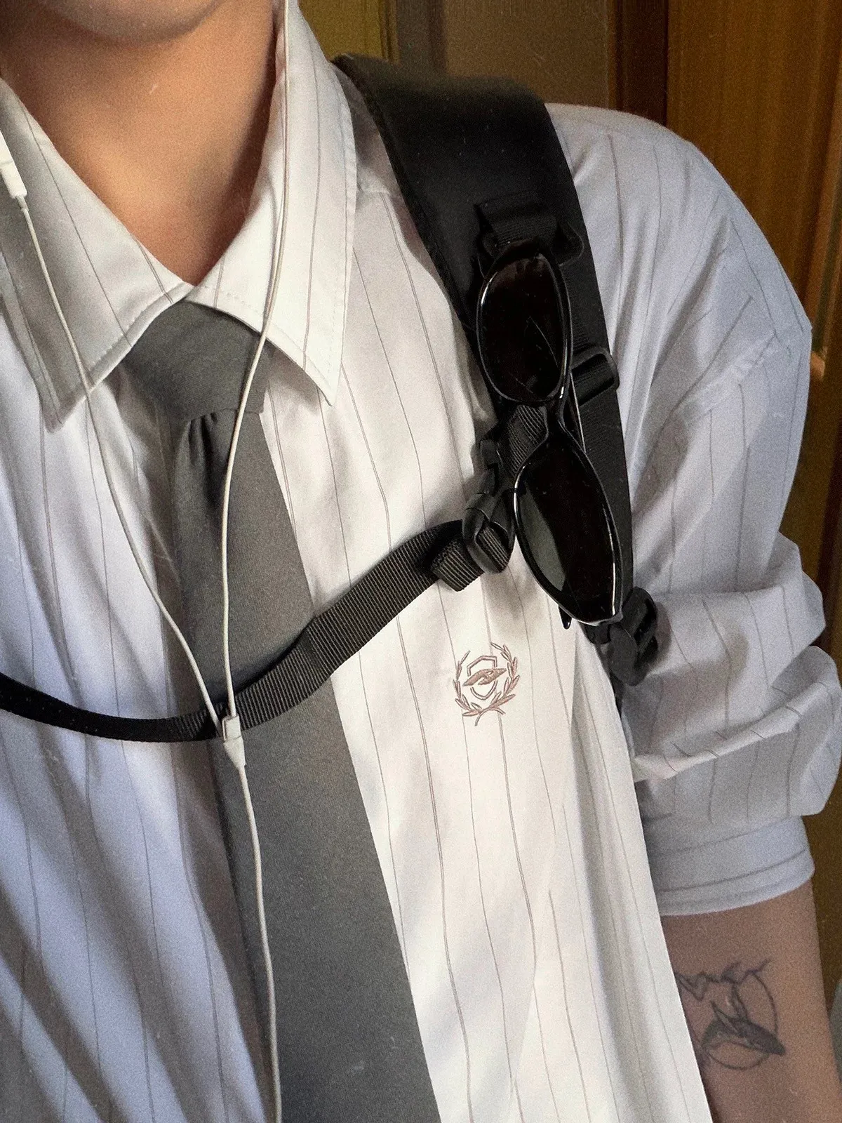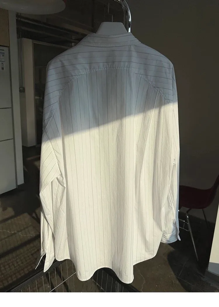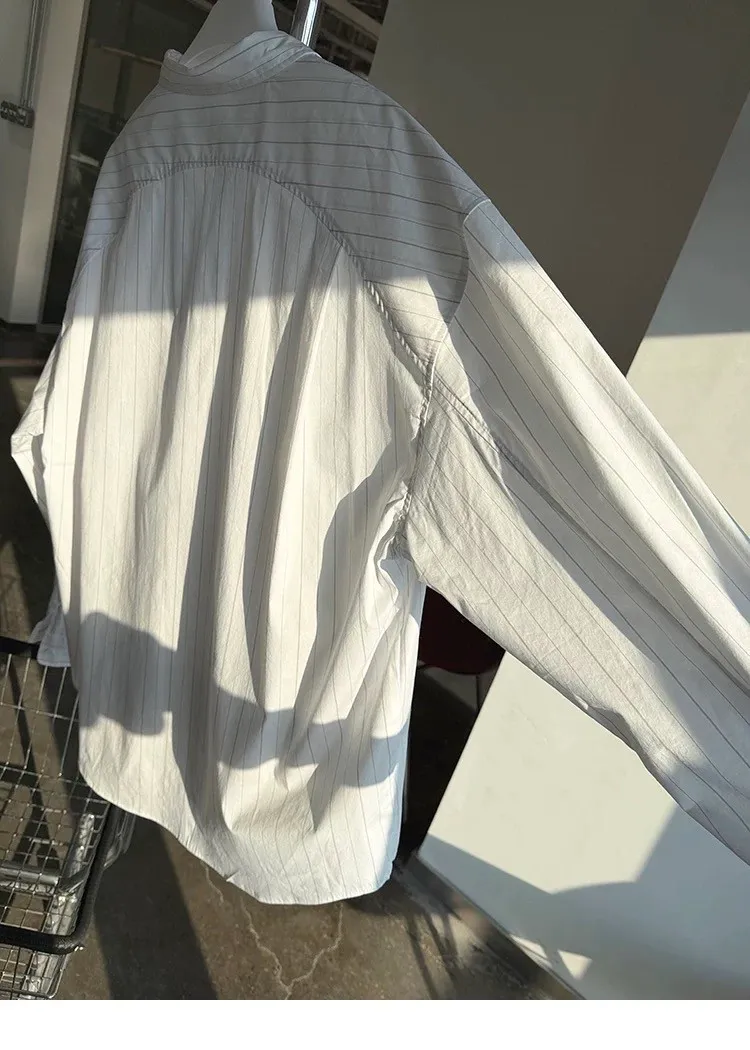 AUROCEAN 學院徽章刺繡 條紋 OS 襯衫(白色)
