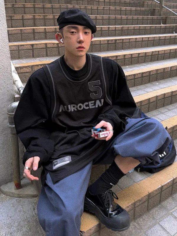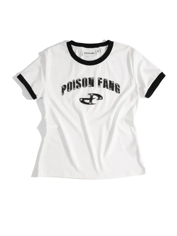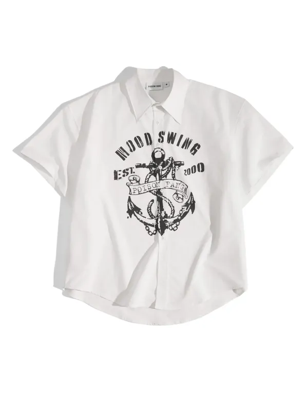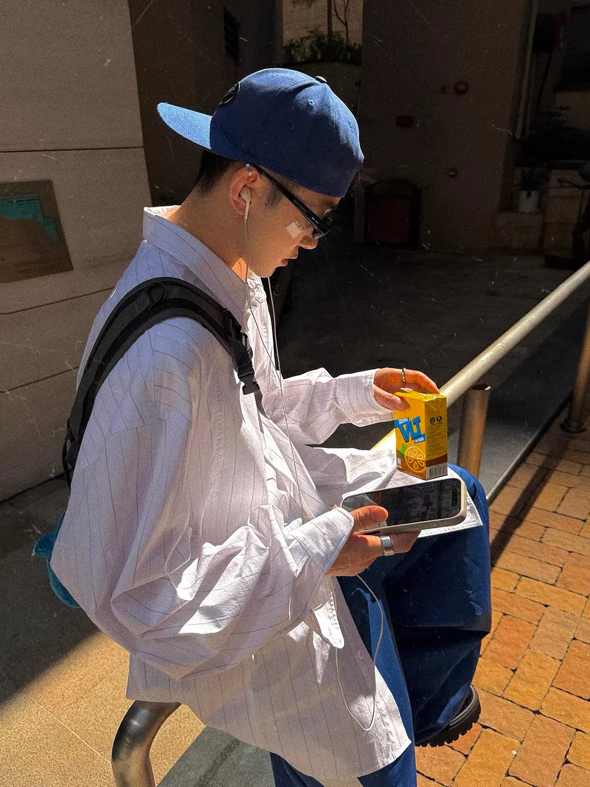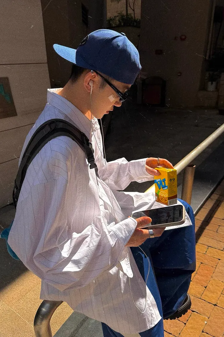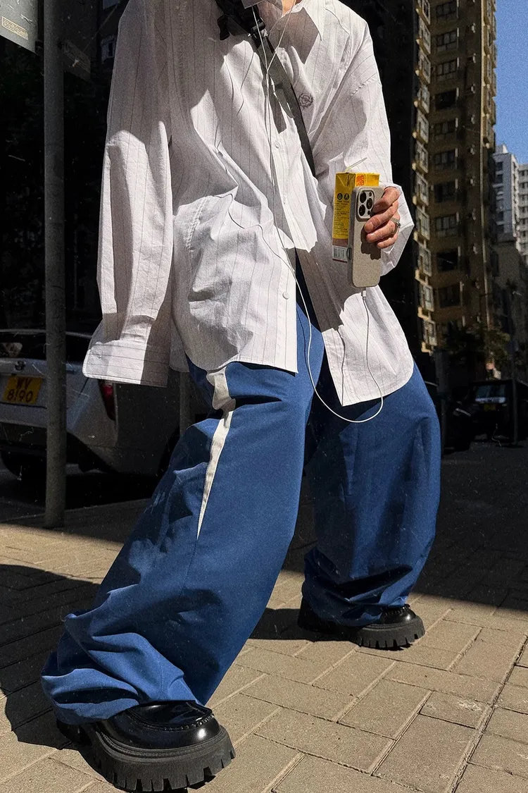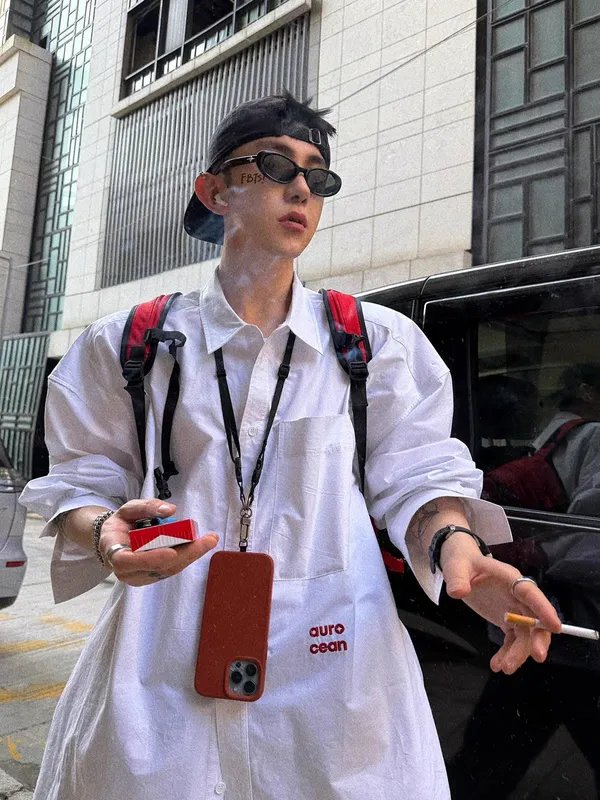 AUROCEAN 學院徽章刺繡 條紋 OS 襯衫(白色)