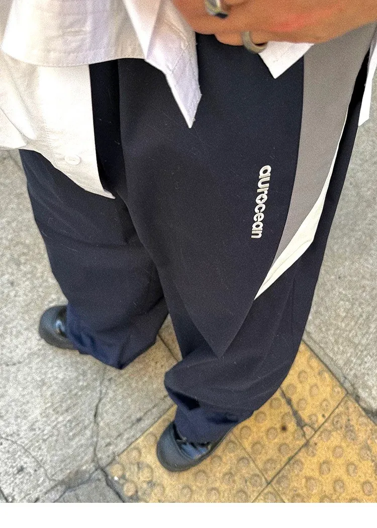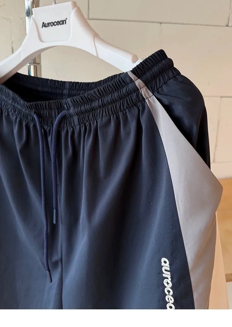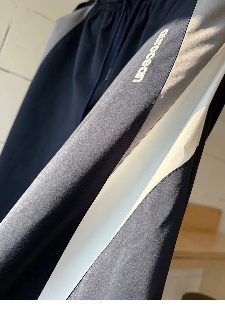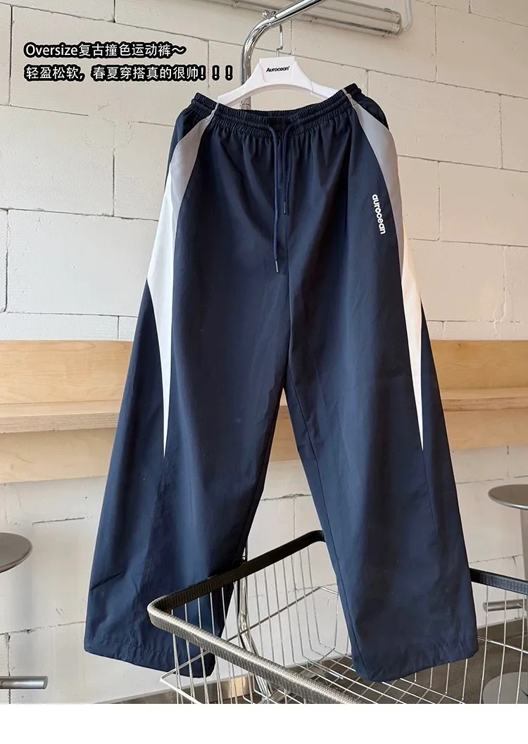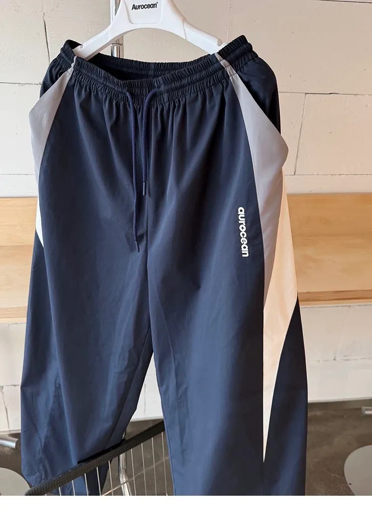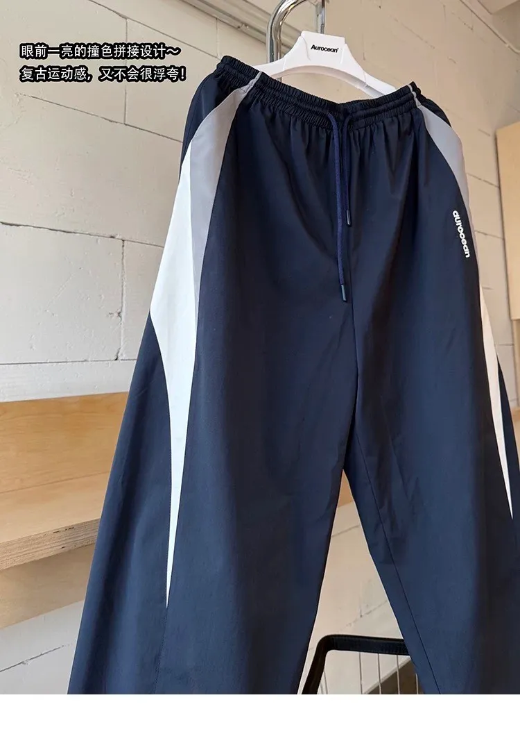 AUROCEAN 輕盈速乾 古著撞色 尼龍 長褲(藏青)