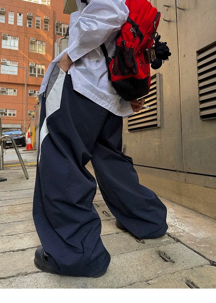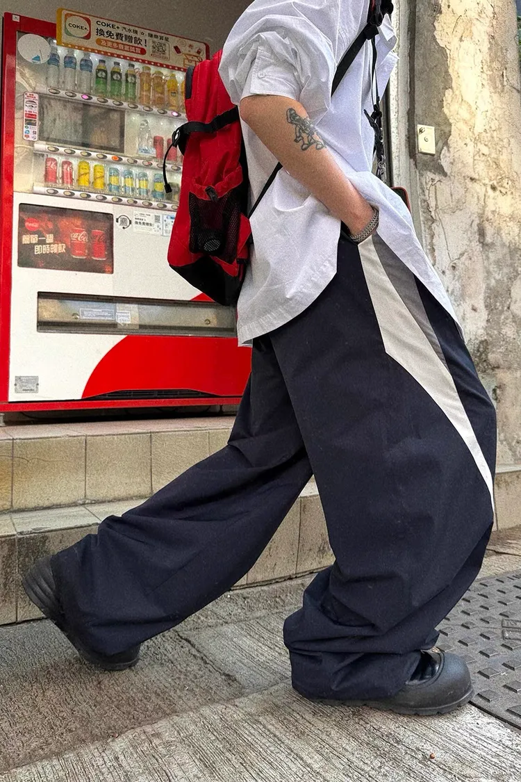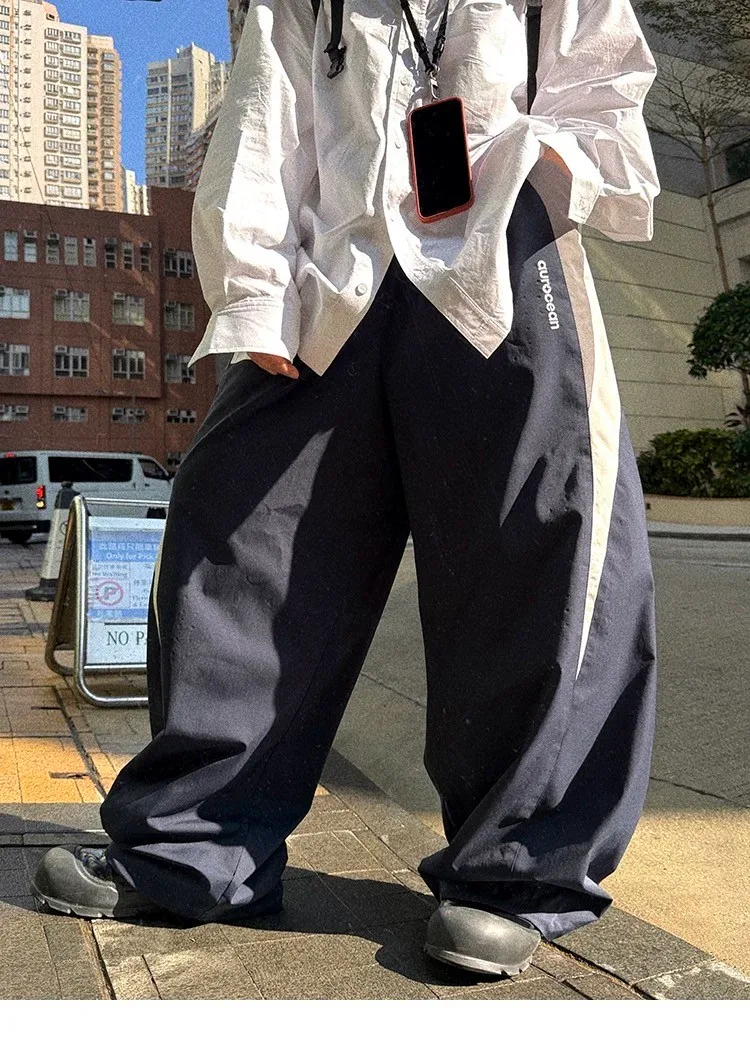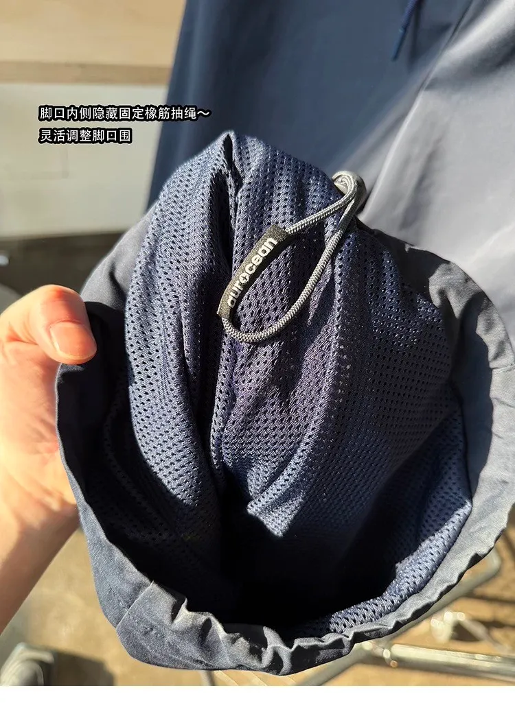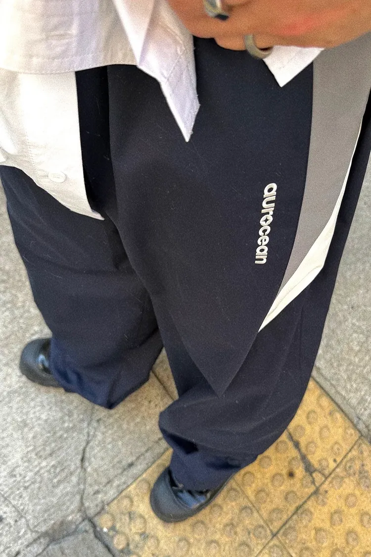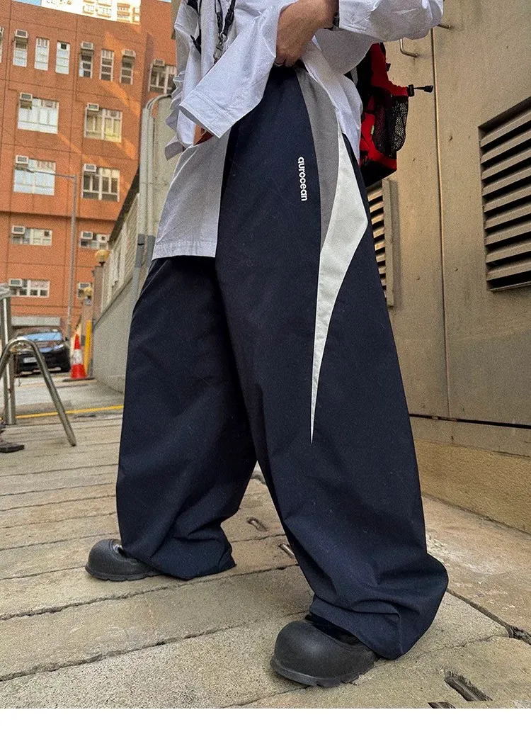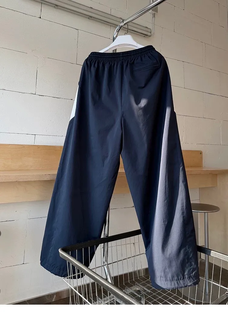 AUROCEAN 輕盈速乾 古著撞色 尼龍 長褲(藏青)