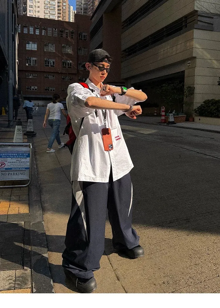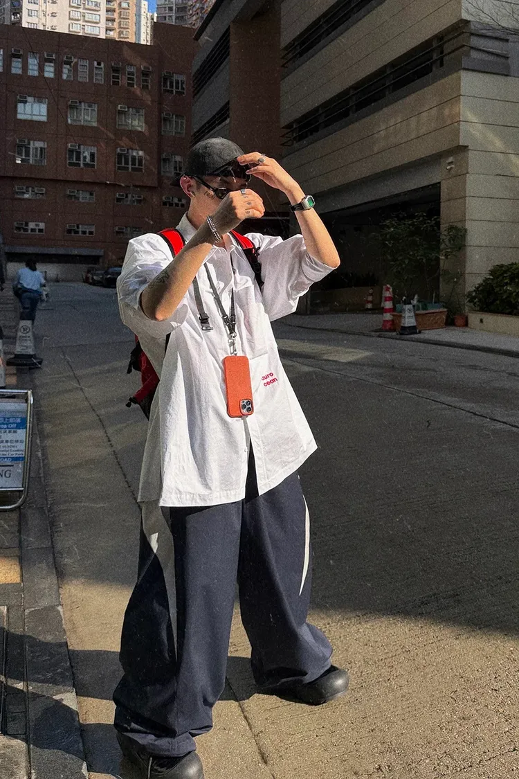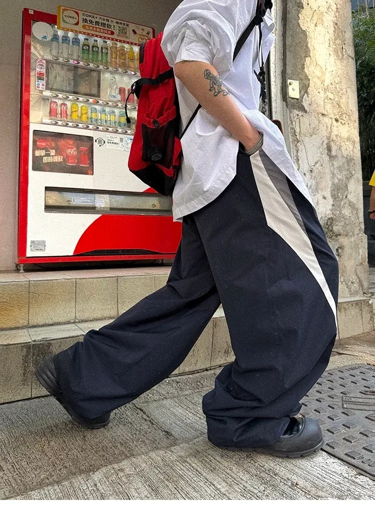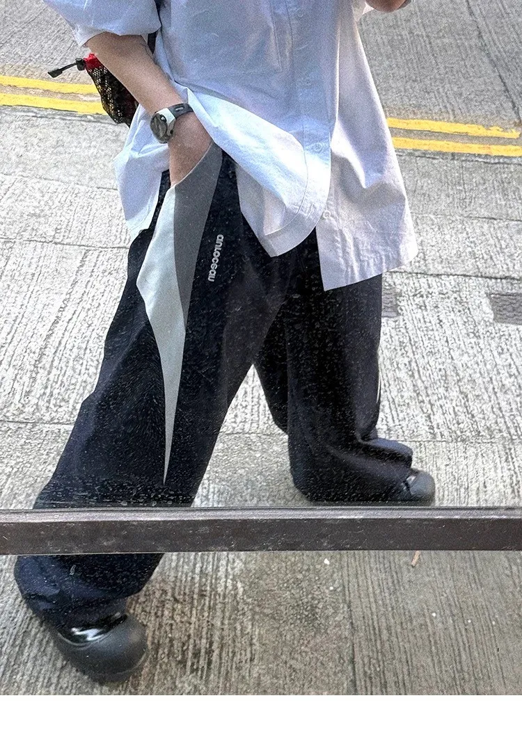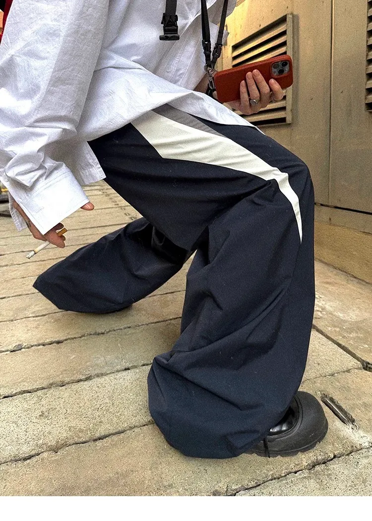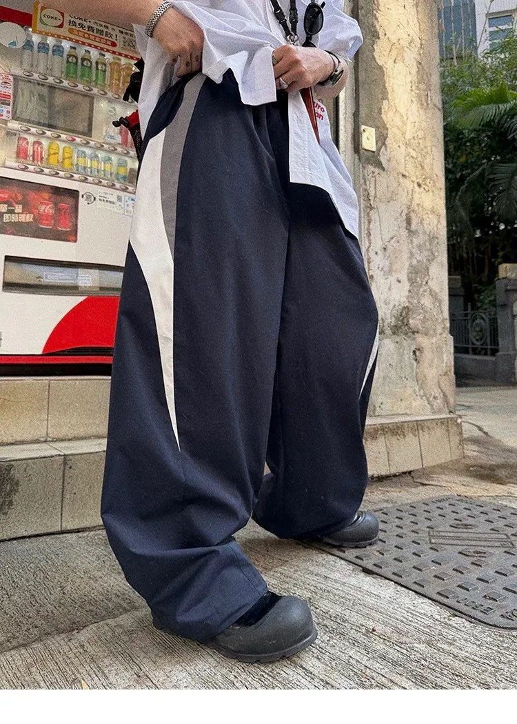 AUROCEAN 輕盈速乾 古著撞色 尼龍 長褲(藏青)