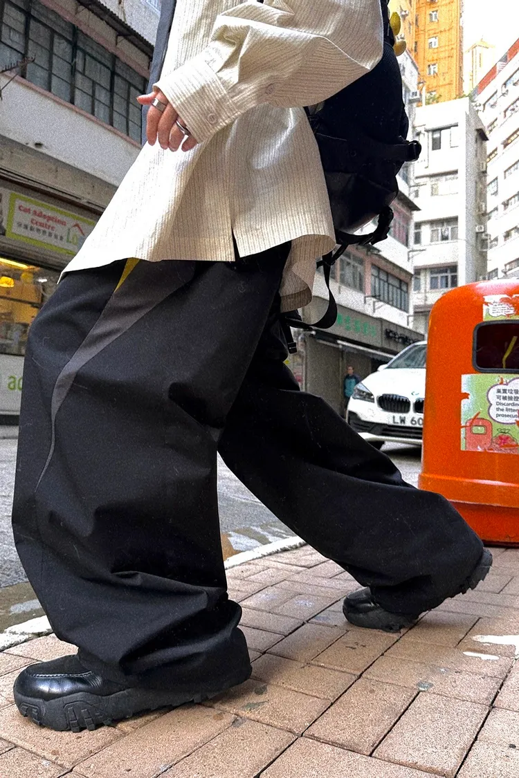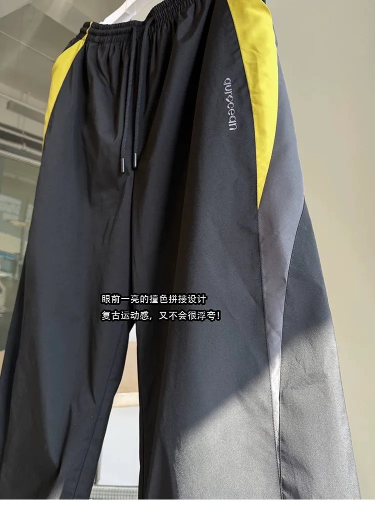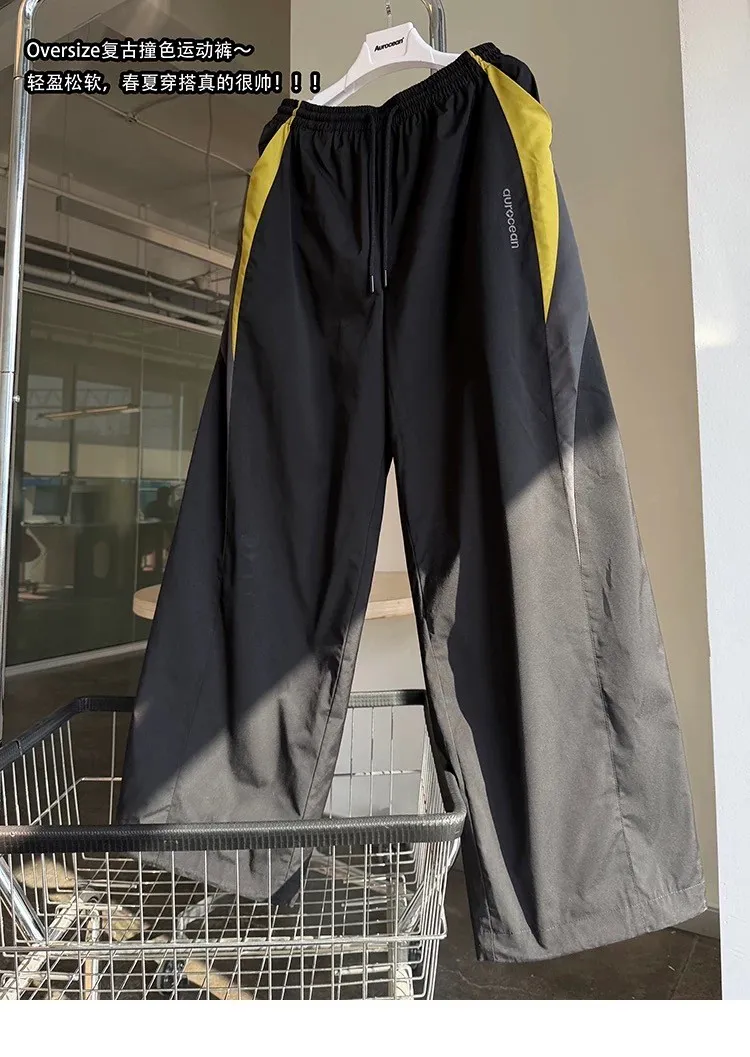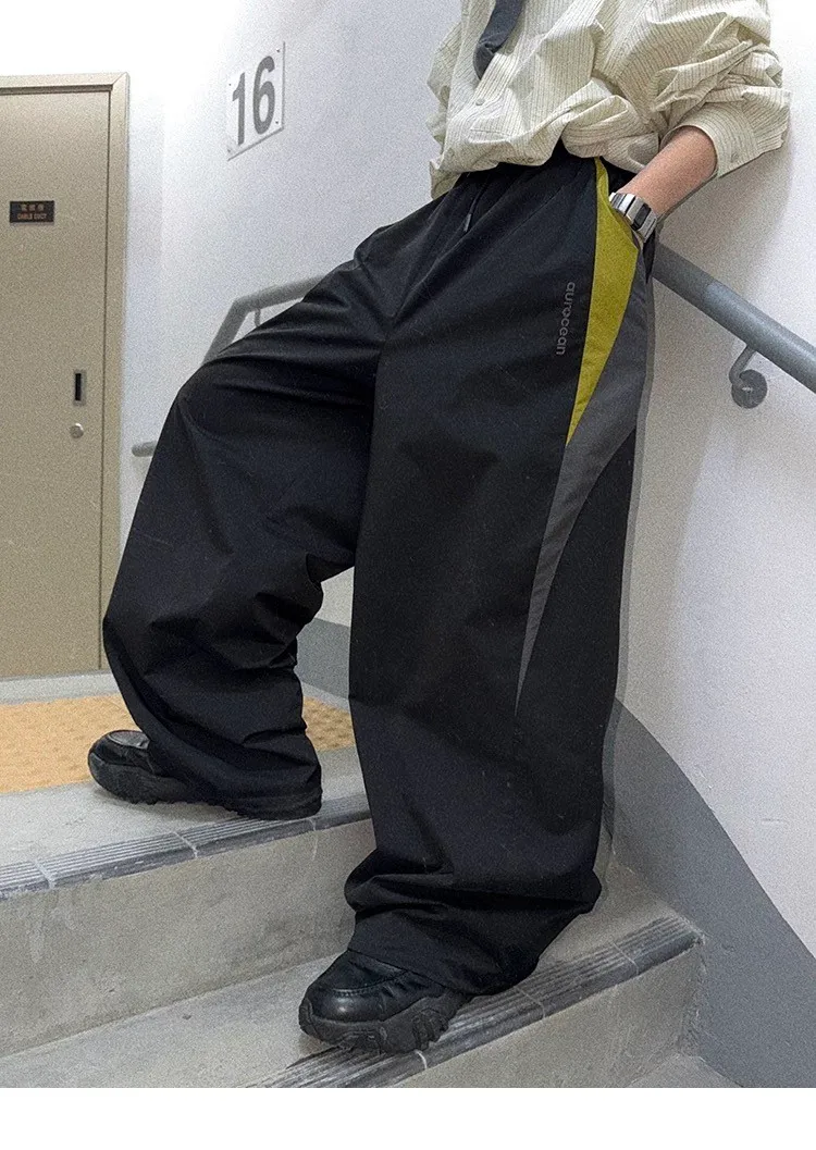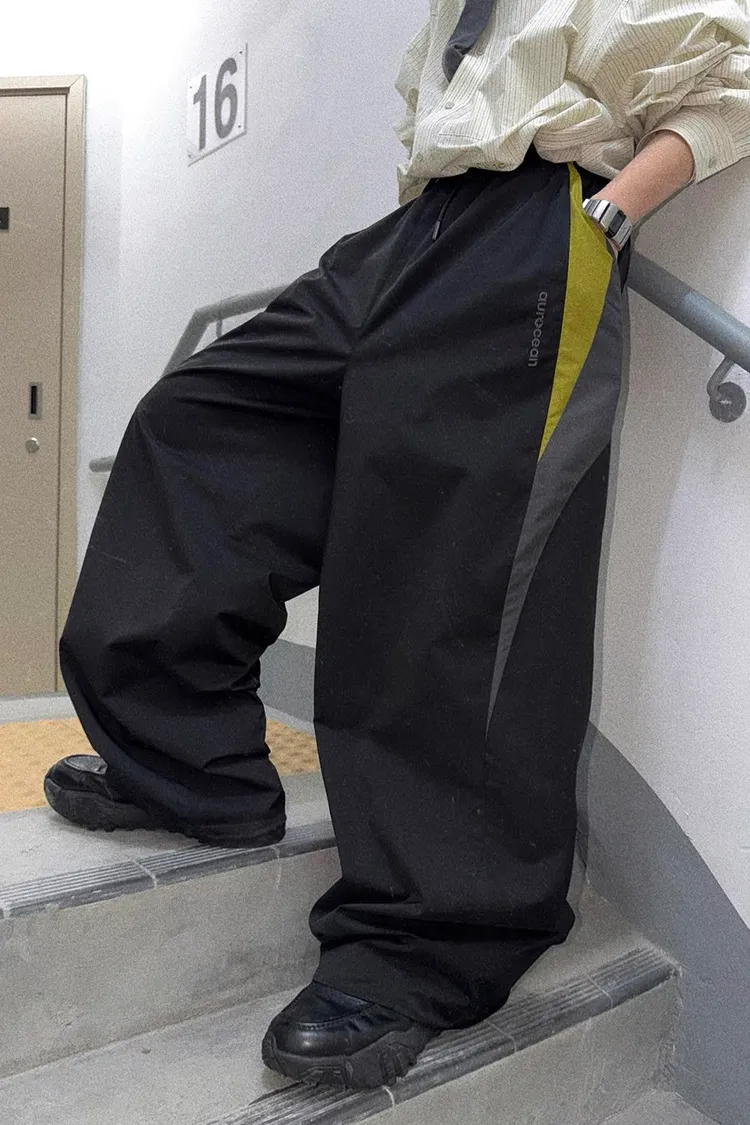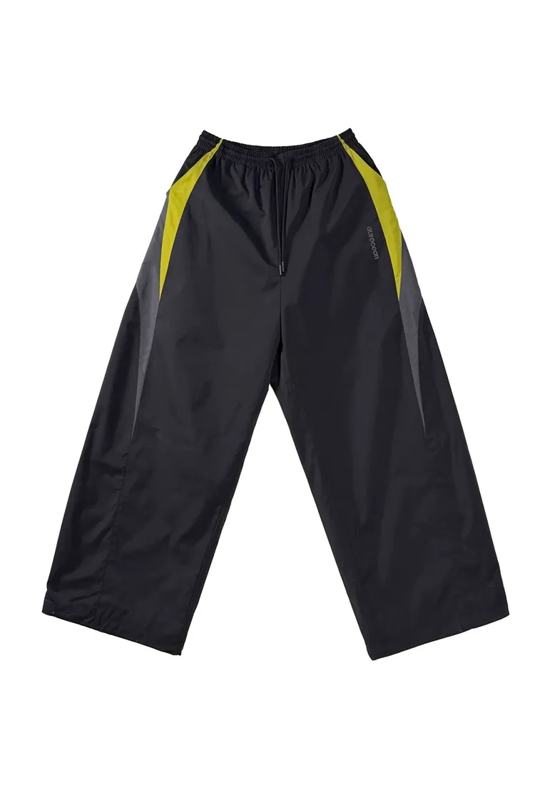 AUROCEAN 輕盈速乾 古著撞色 尼龍 長褲 (黑色)