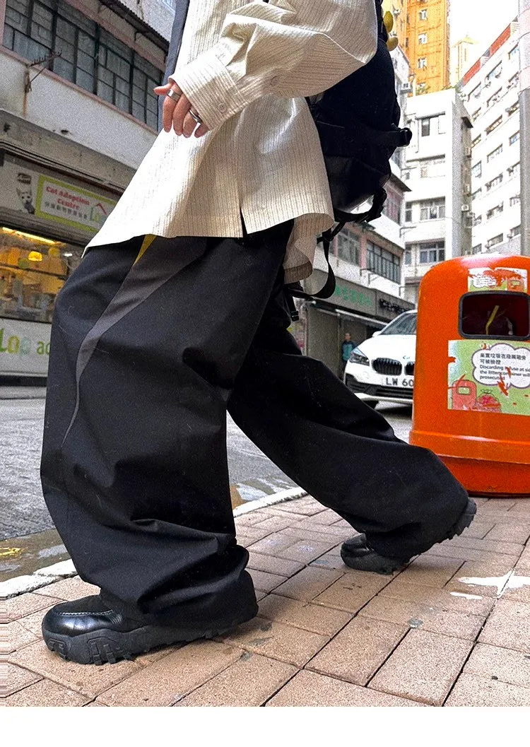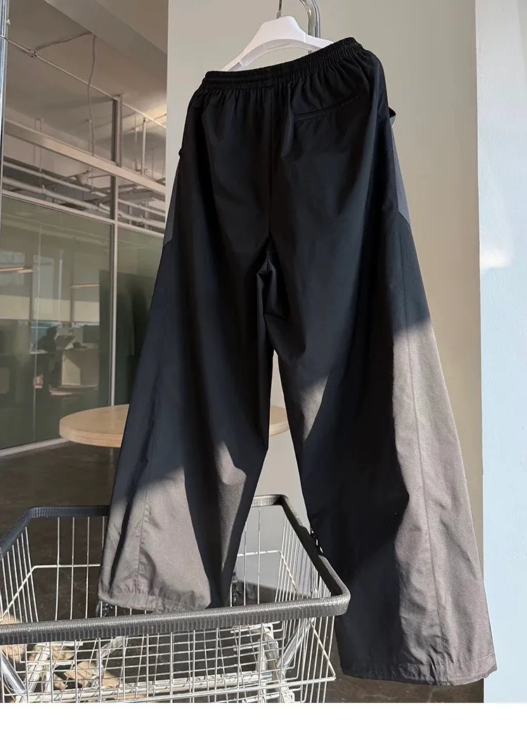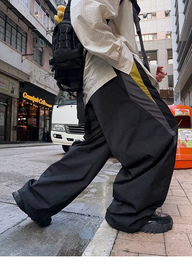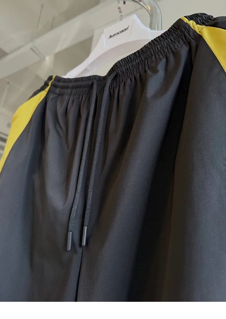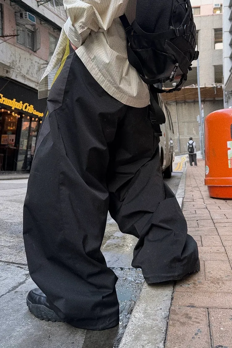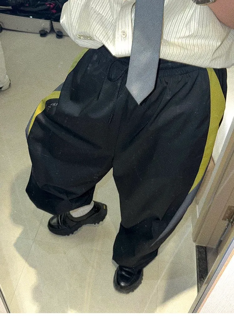 AUROCEAN 輕盈速乾 古著撞色 尼龍 長褲 (黑色)