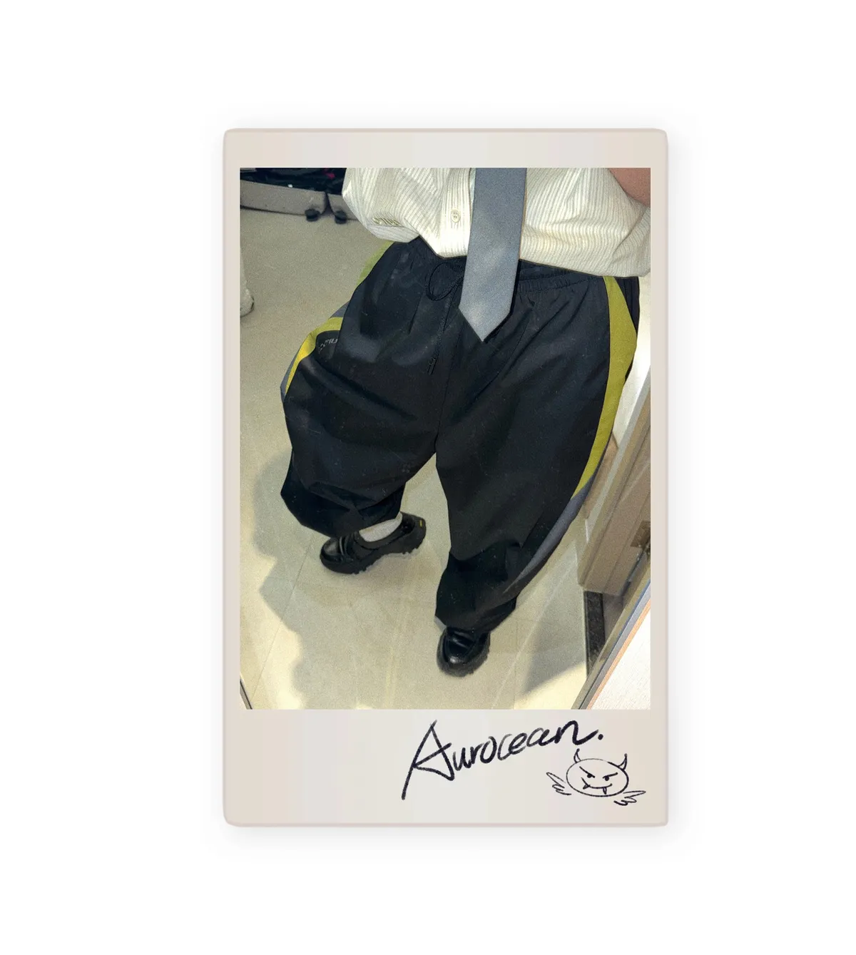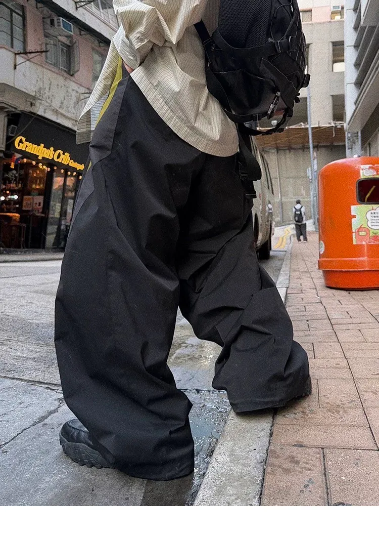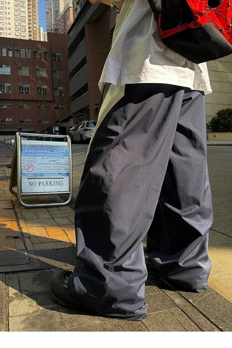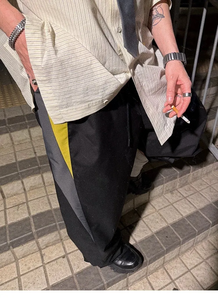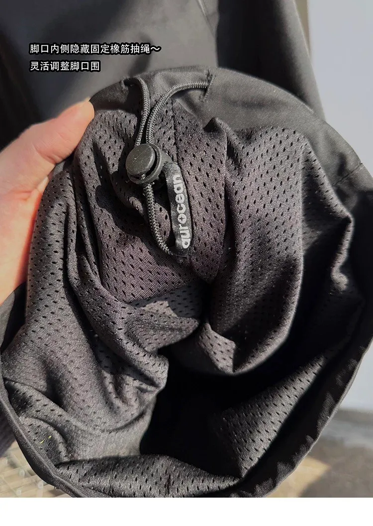 AUROCEAN 輕盈速乾 古著撞色 尼龍 長褲 (黑色)