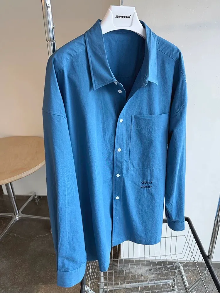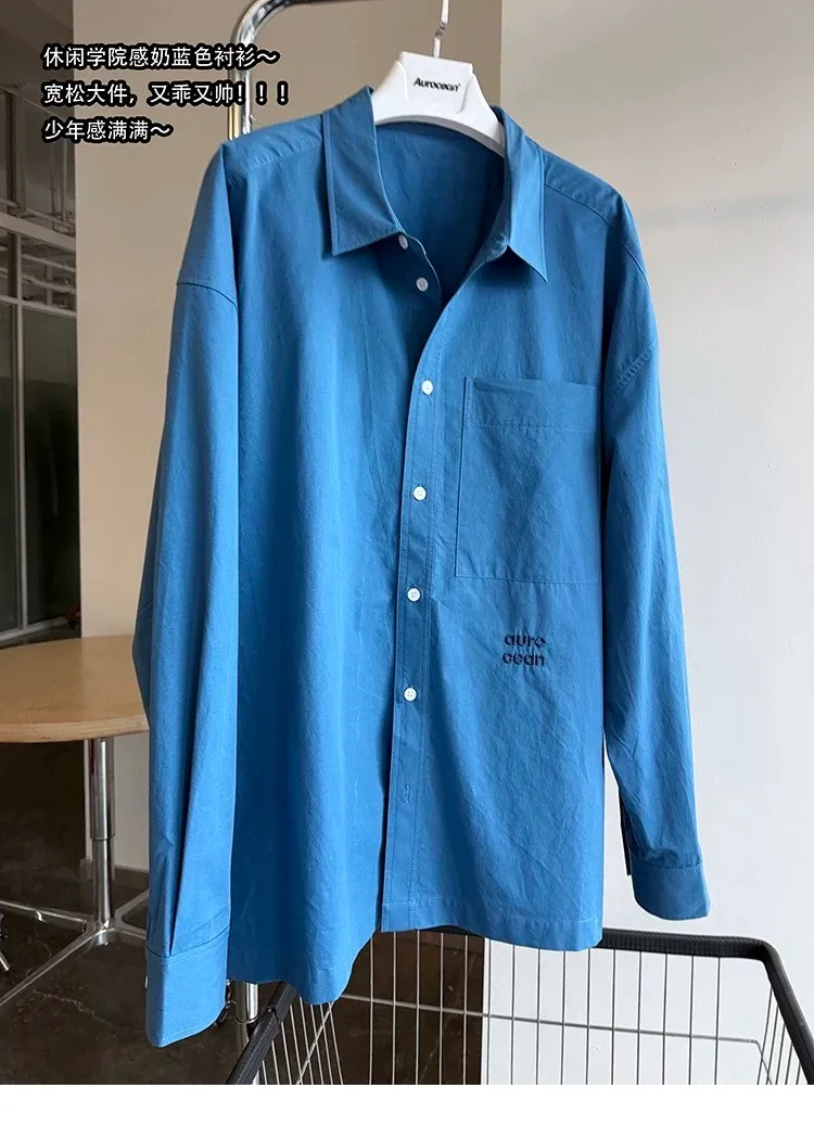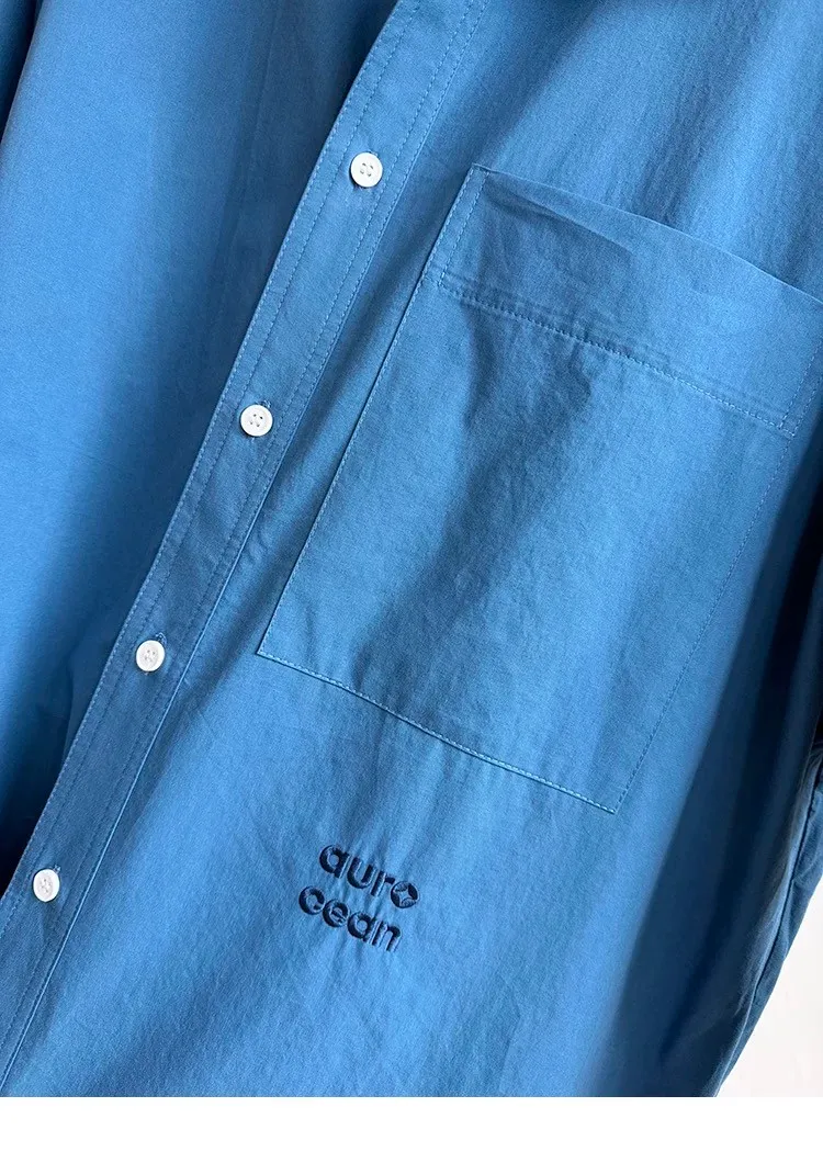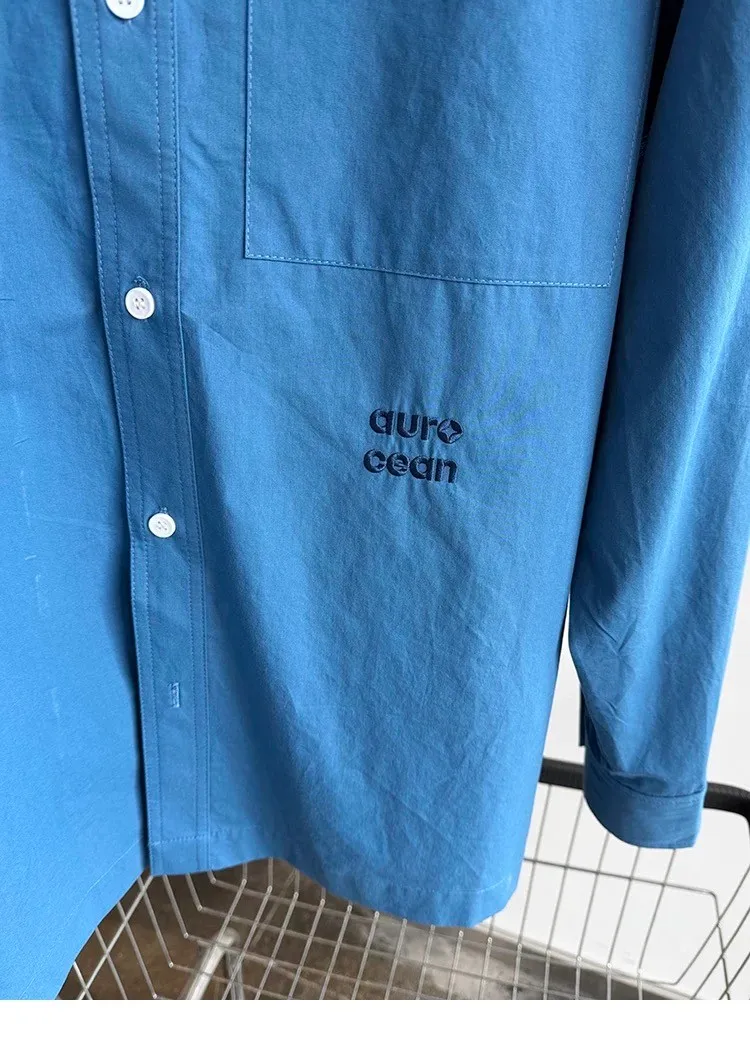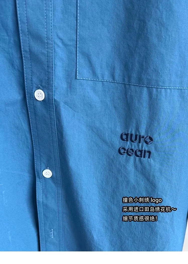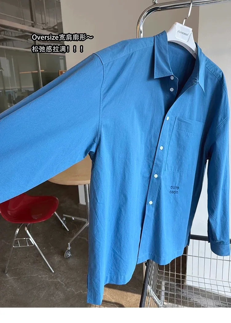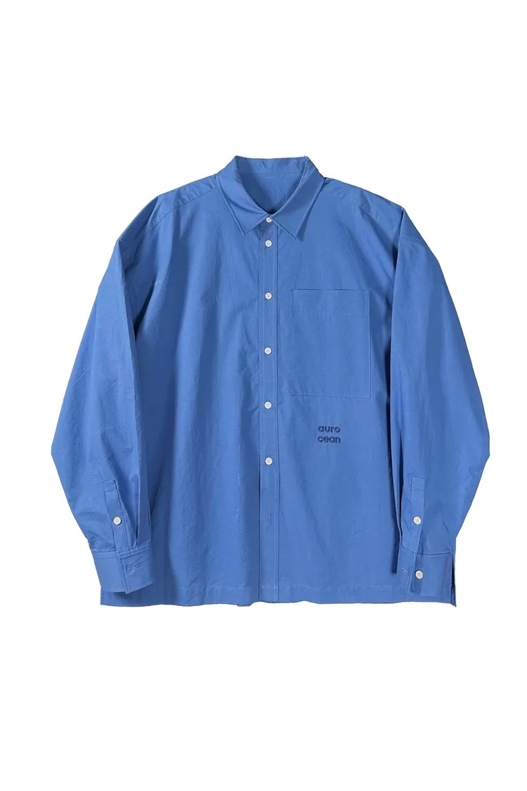 AUROCEAN 純色奶帥 刺繡 OS 襯衫(藍色)