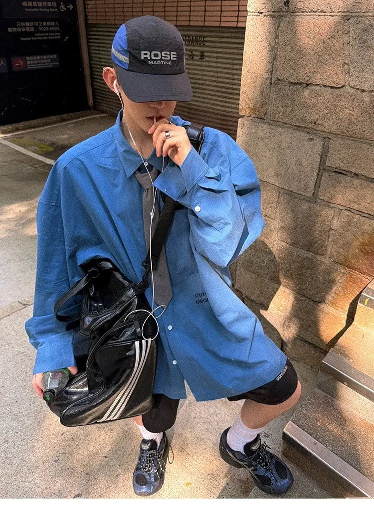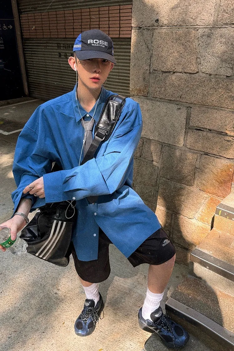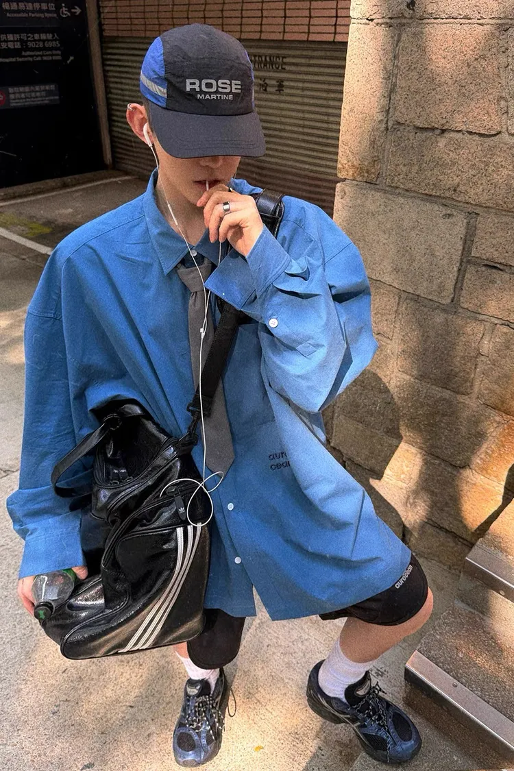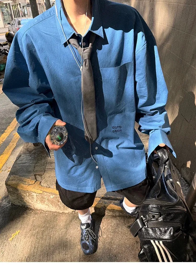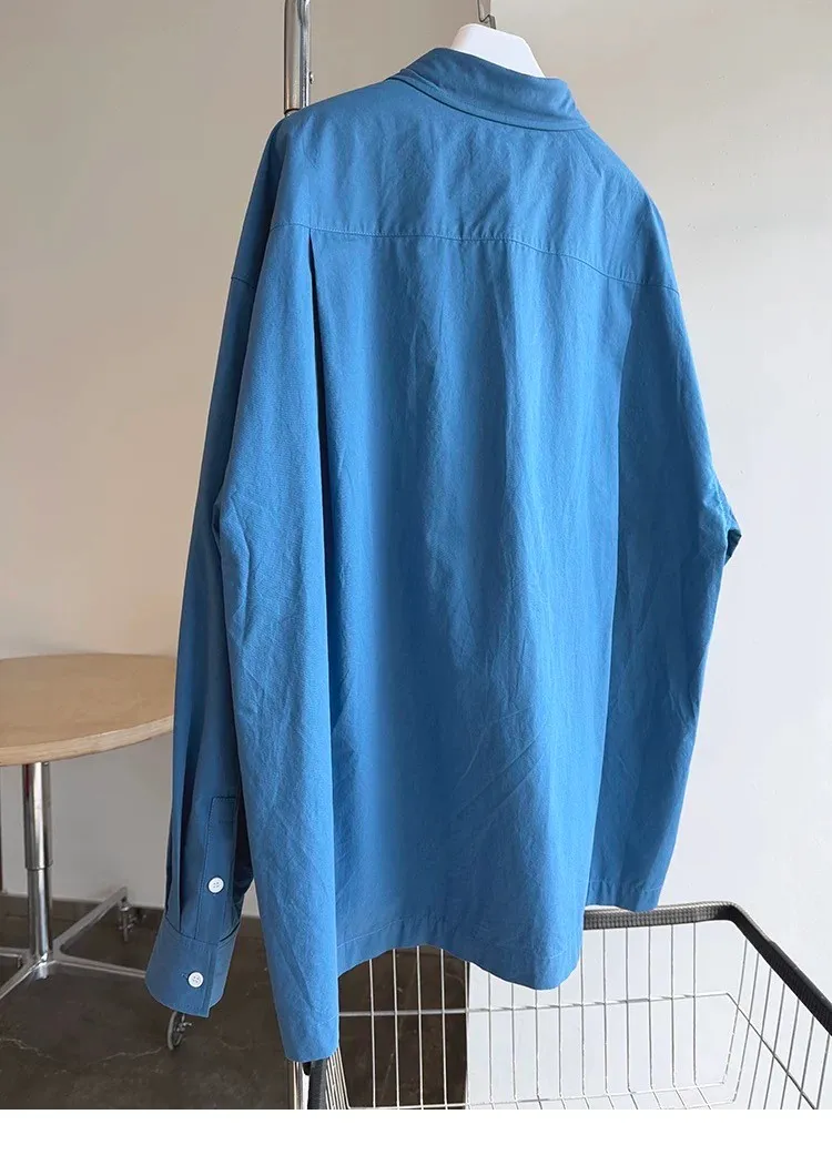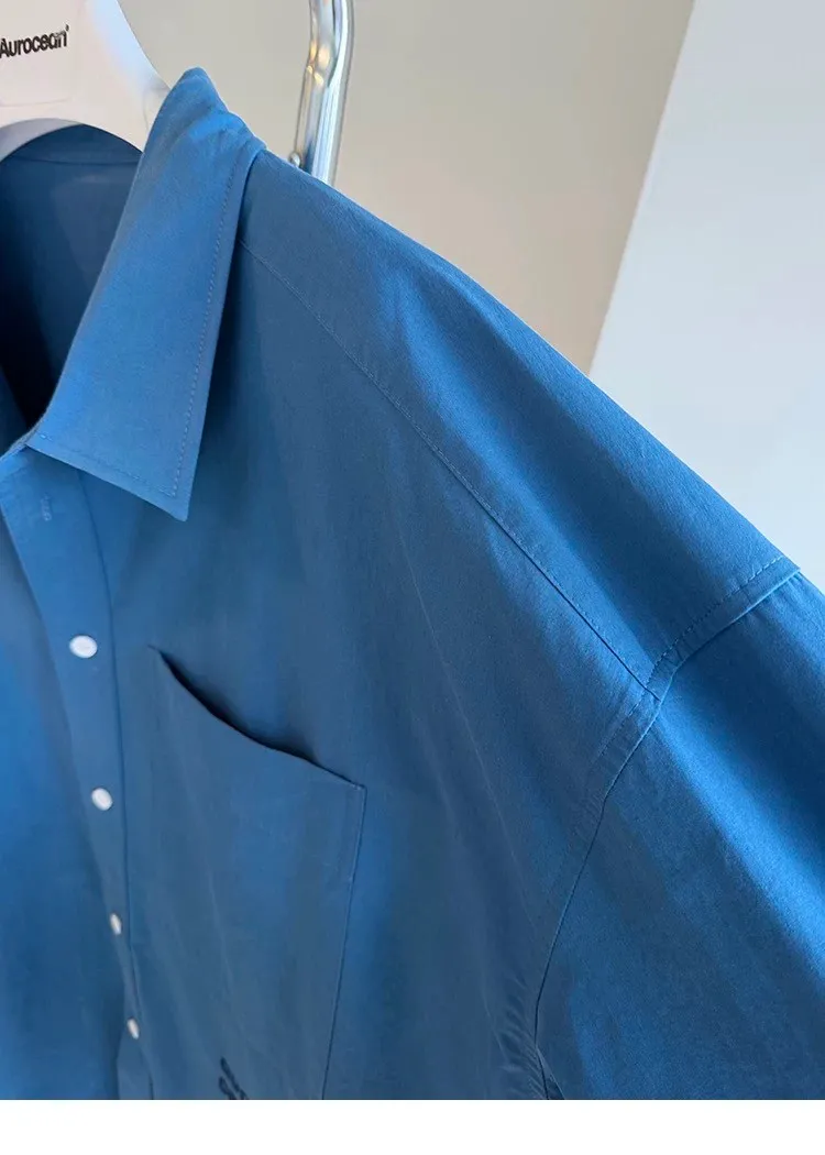 AUROCEAN 純色奶帥 刺繡 OS 襯衫(藍色)