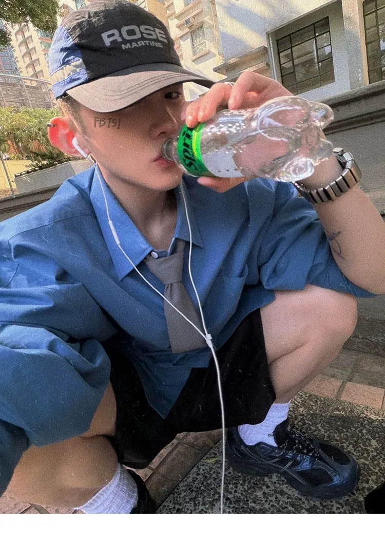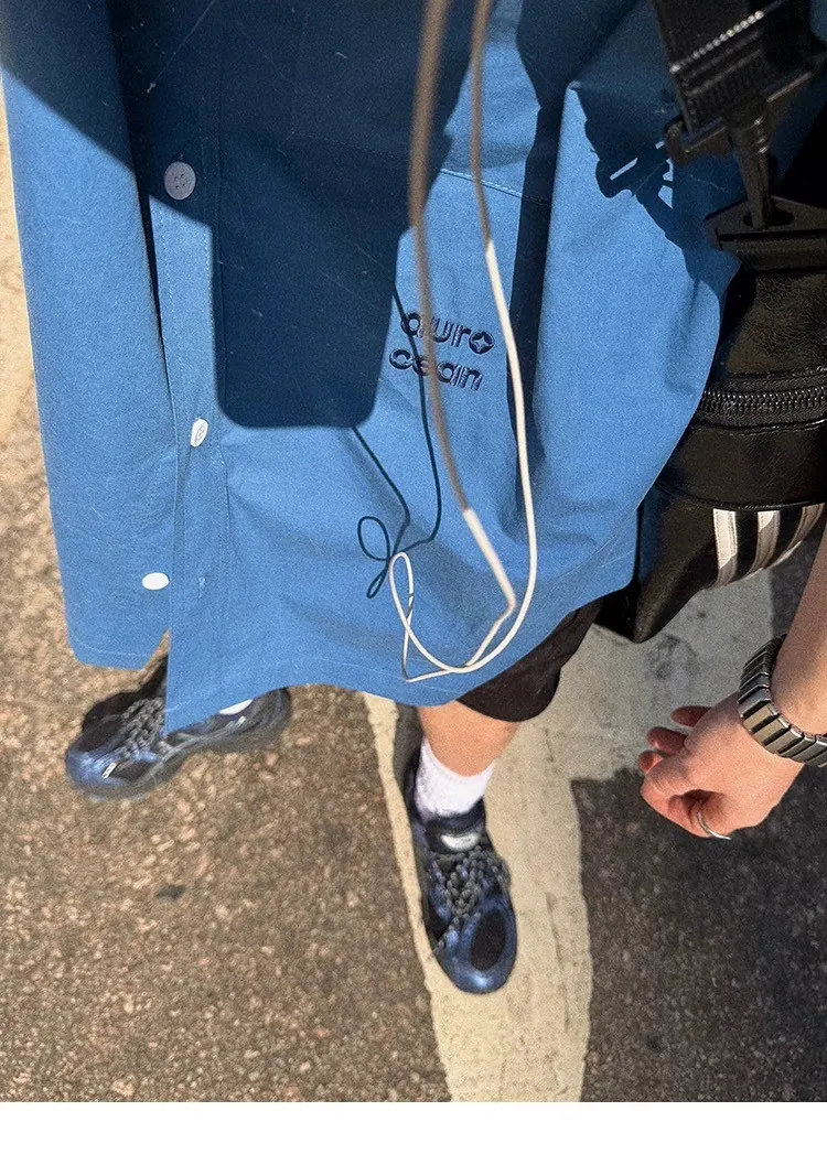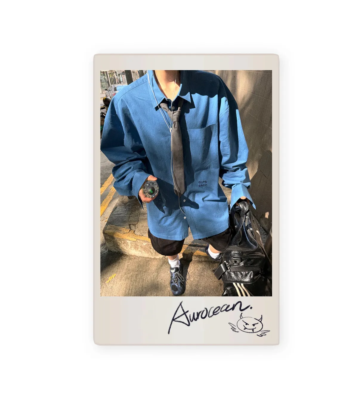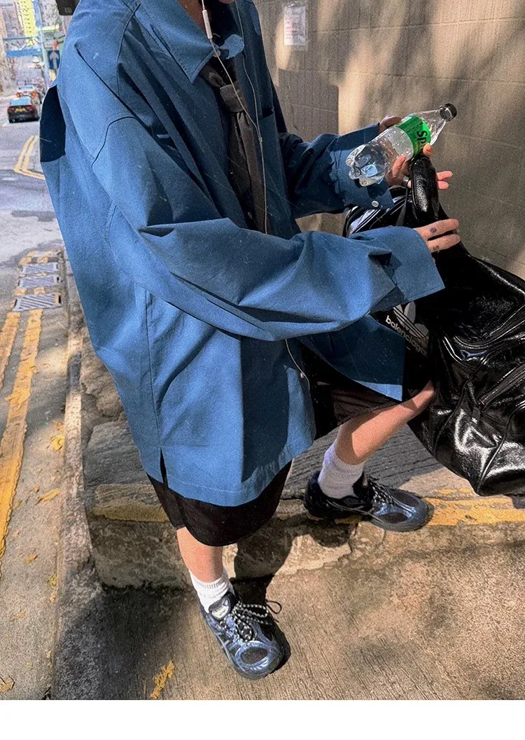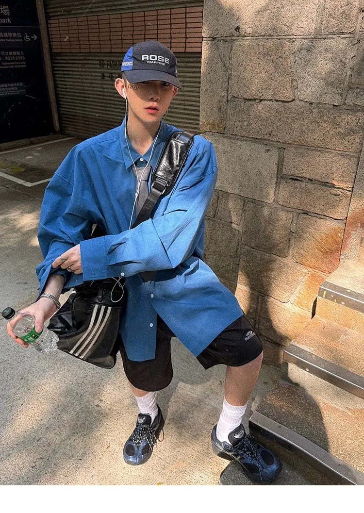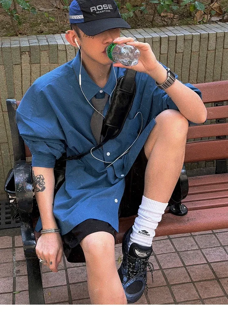 AUROCEAN 純色奶帥 刺繡 OS 襯衫(藍色)
