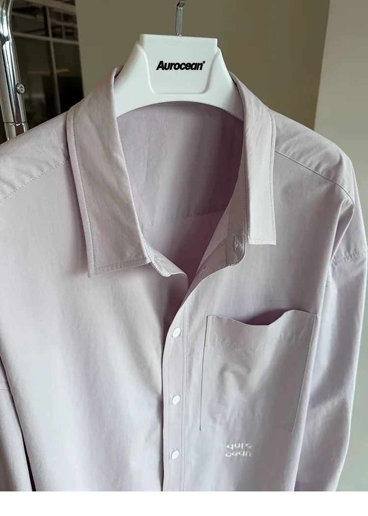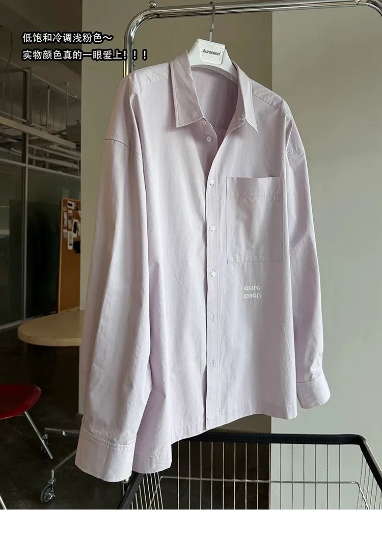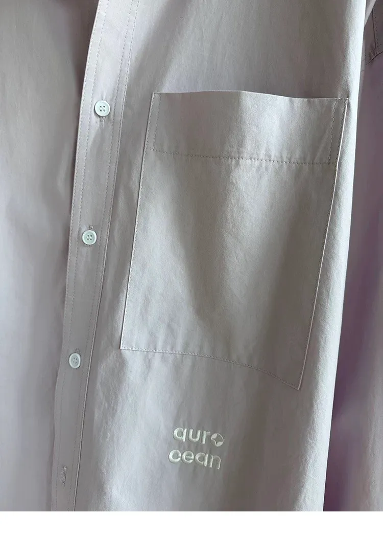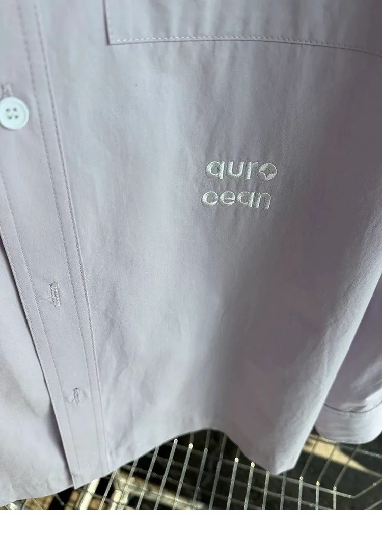 AUROCEAN 純色奶帥 刺繡 OS 襯衫(淺粉)