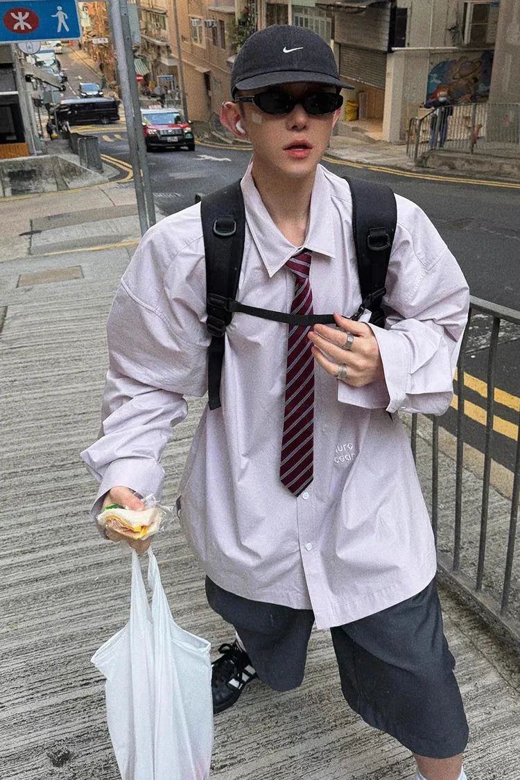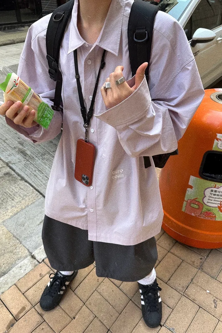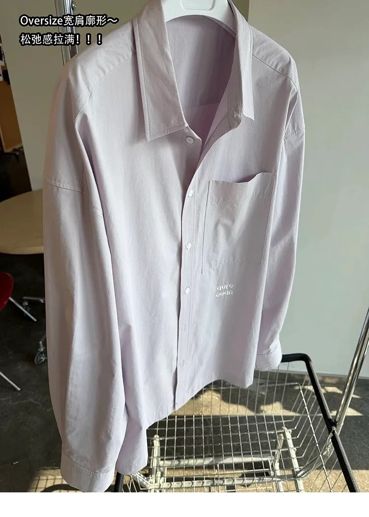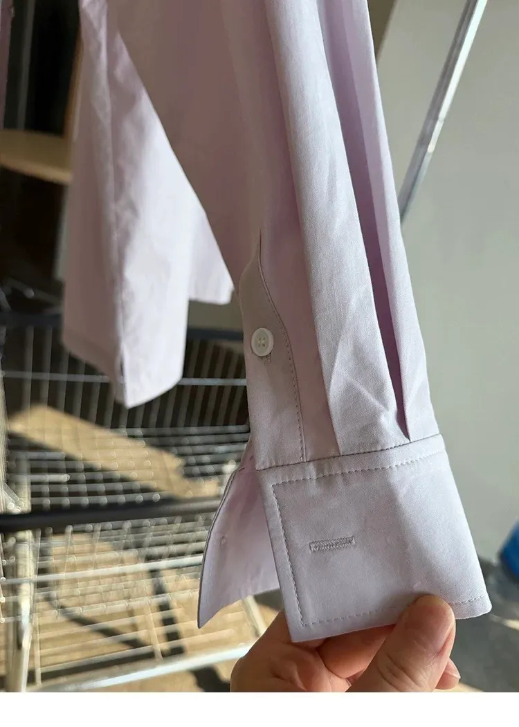AUROCEAN 純色奶帥 刺繡 OS 襯衫(淺粉)