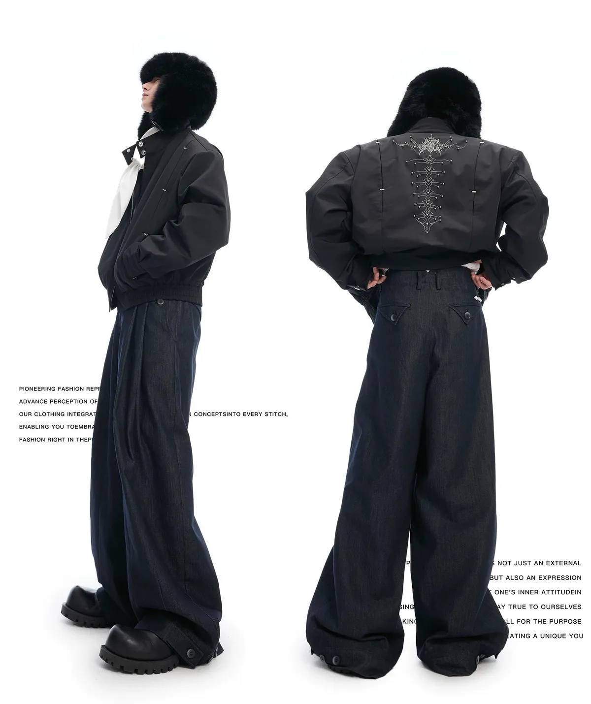 ARGUE 設計感 多重飄帶 金屬標 帽踢 棉褲 套裝(黑/灰)