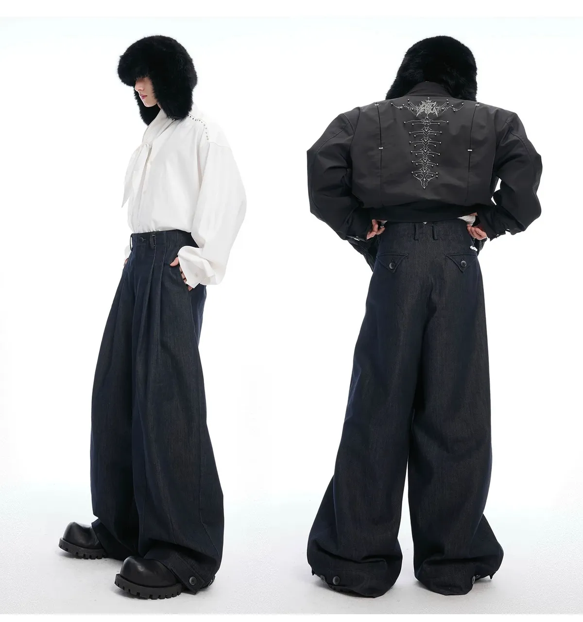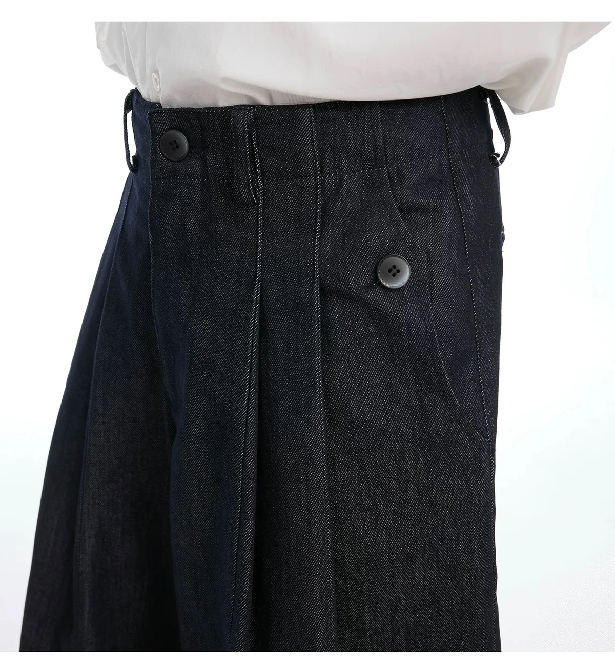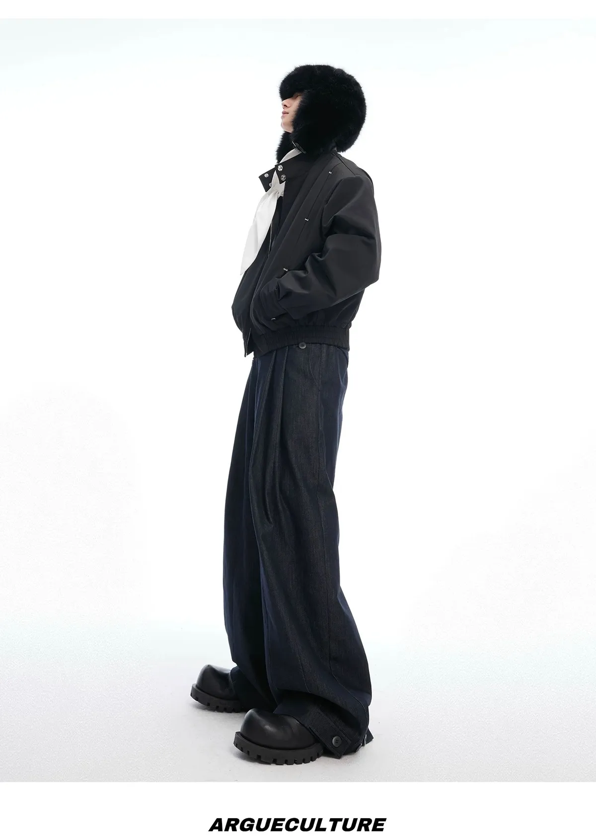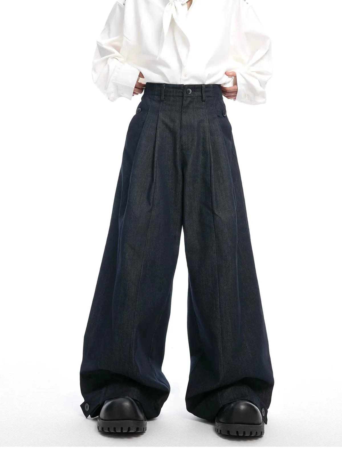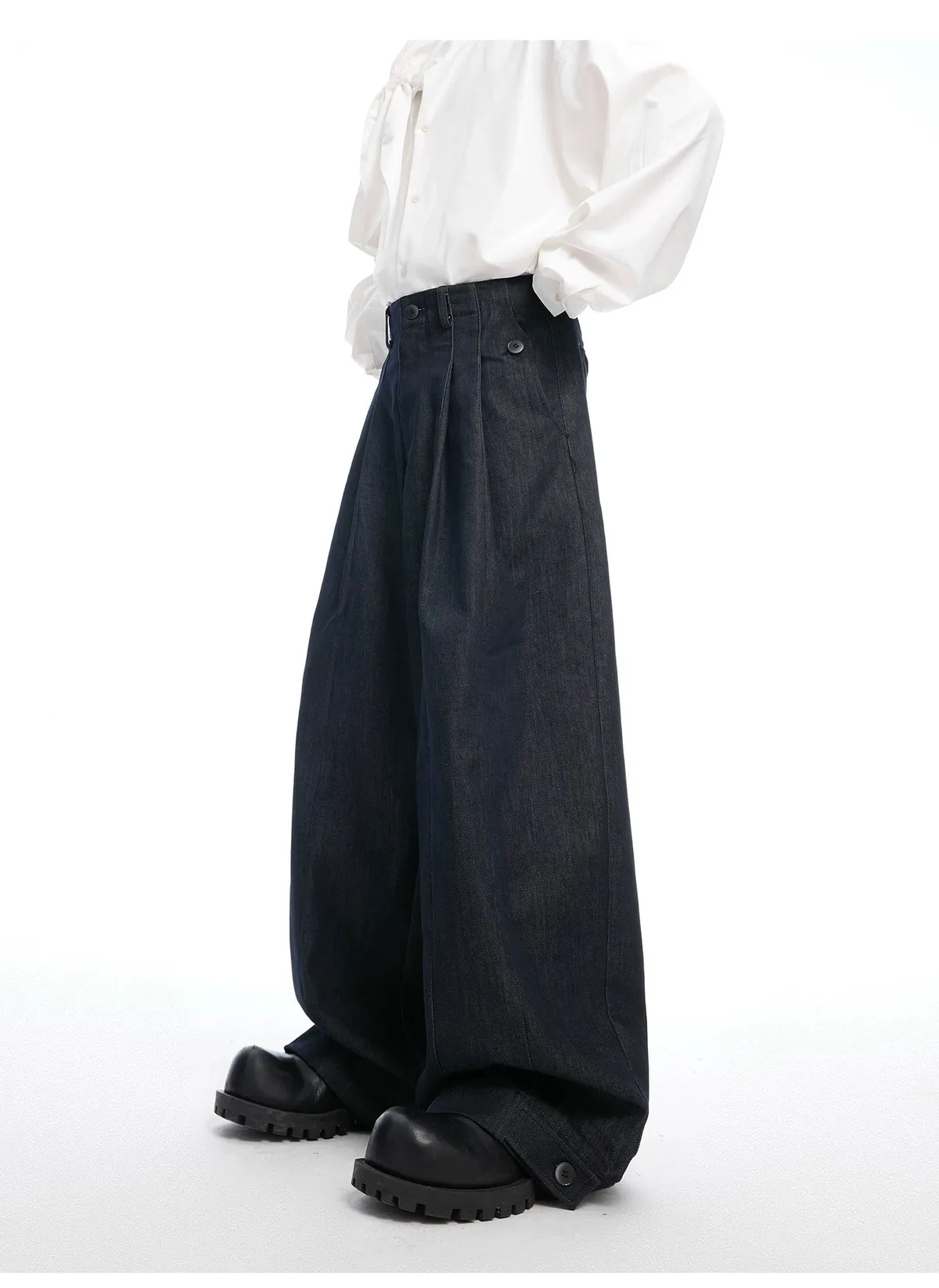 ARGUE 原漿丹寧 復古 褶皺 闊腿 牛仔褲(深藍)