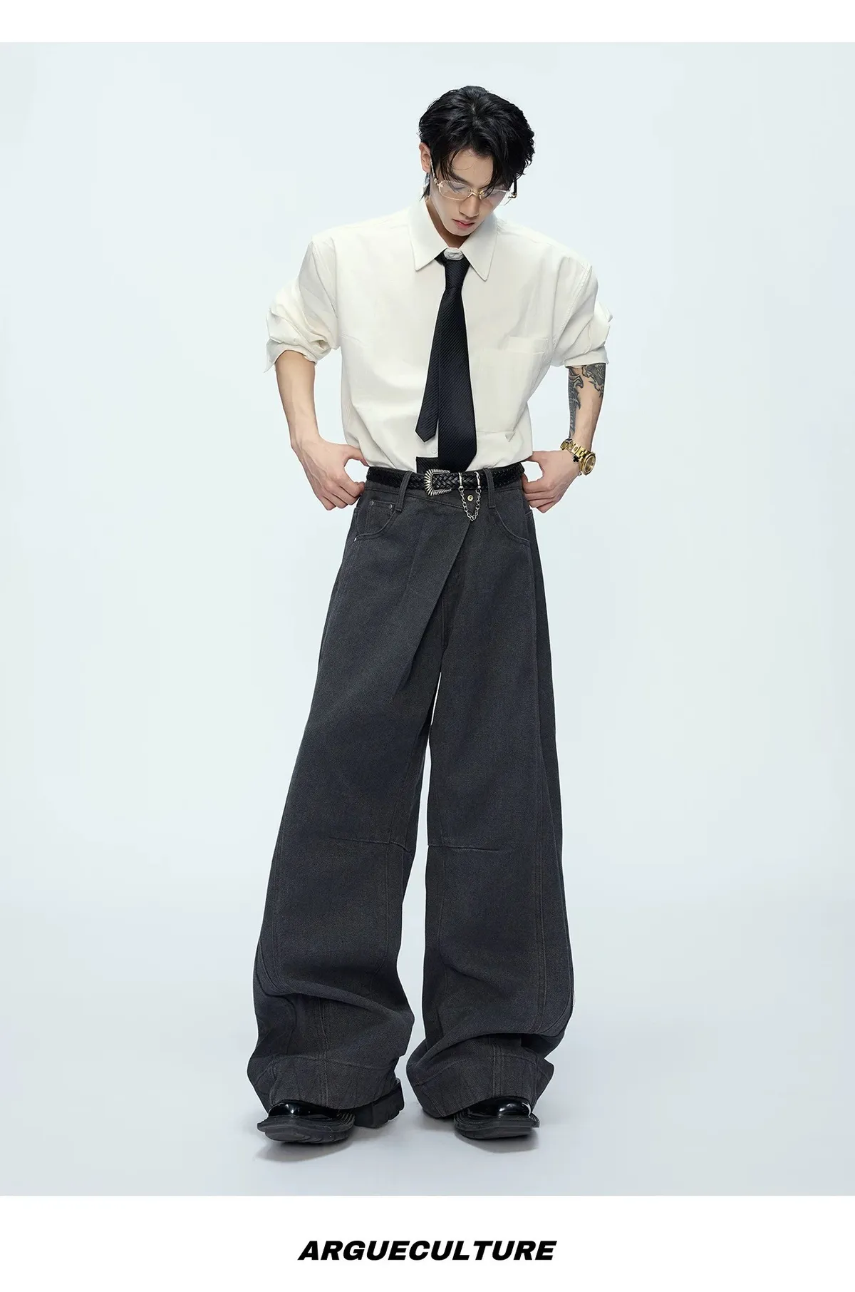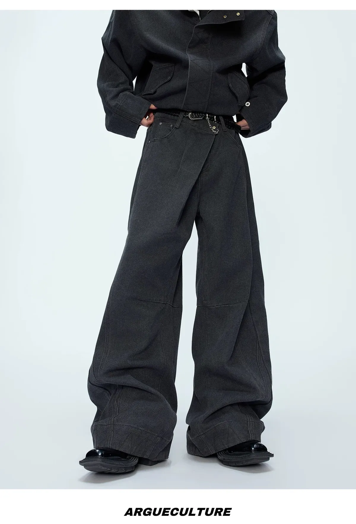 ARGUE 灰影縫線 手工別針 塗層 牛仔外套 牛仔褲 彎刀褲 套裝(灰色)