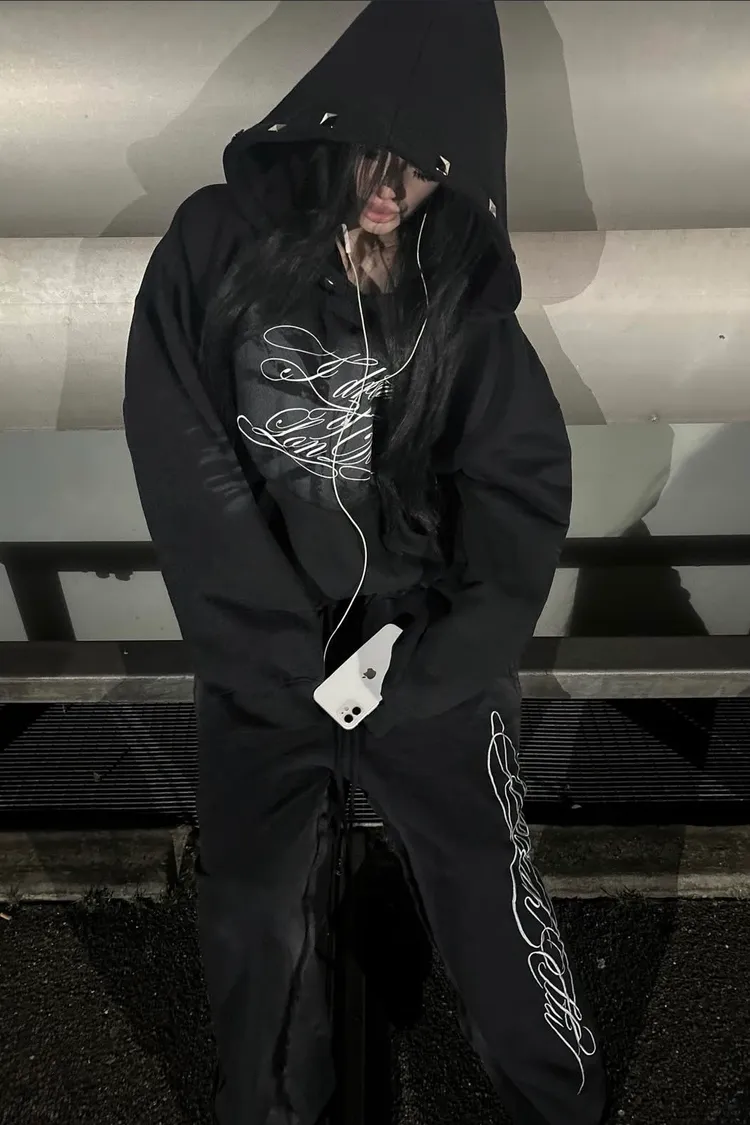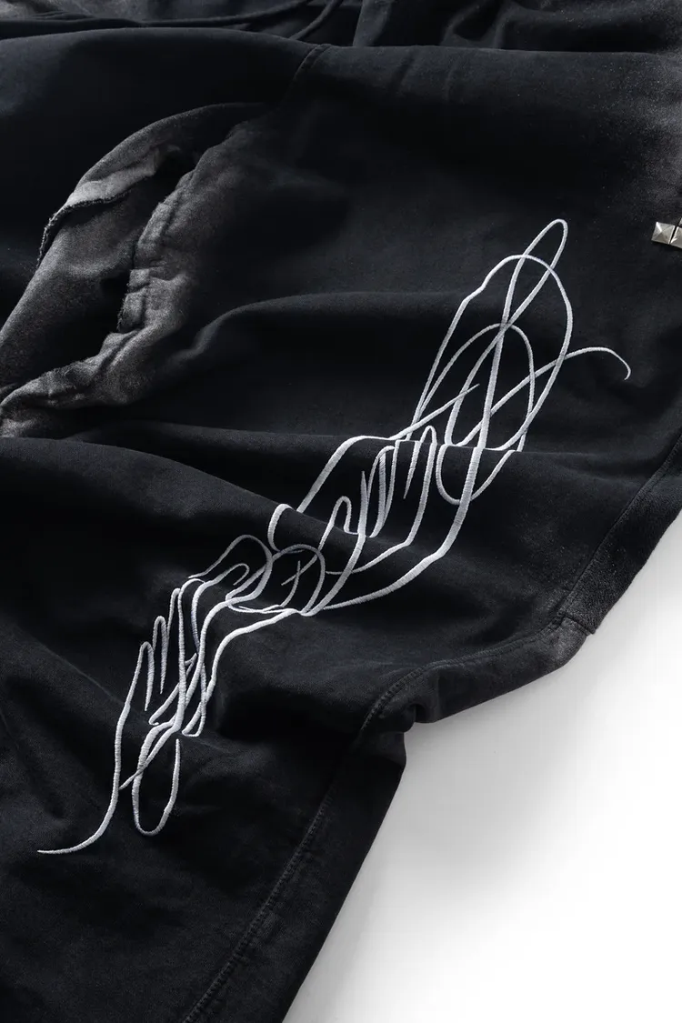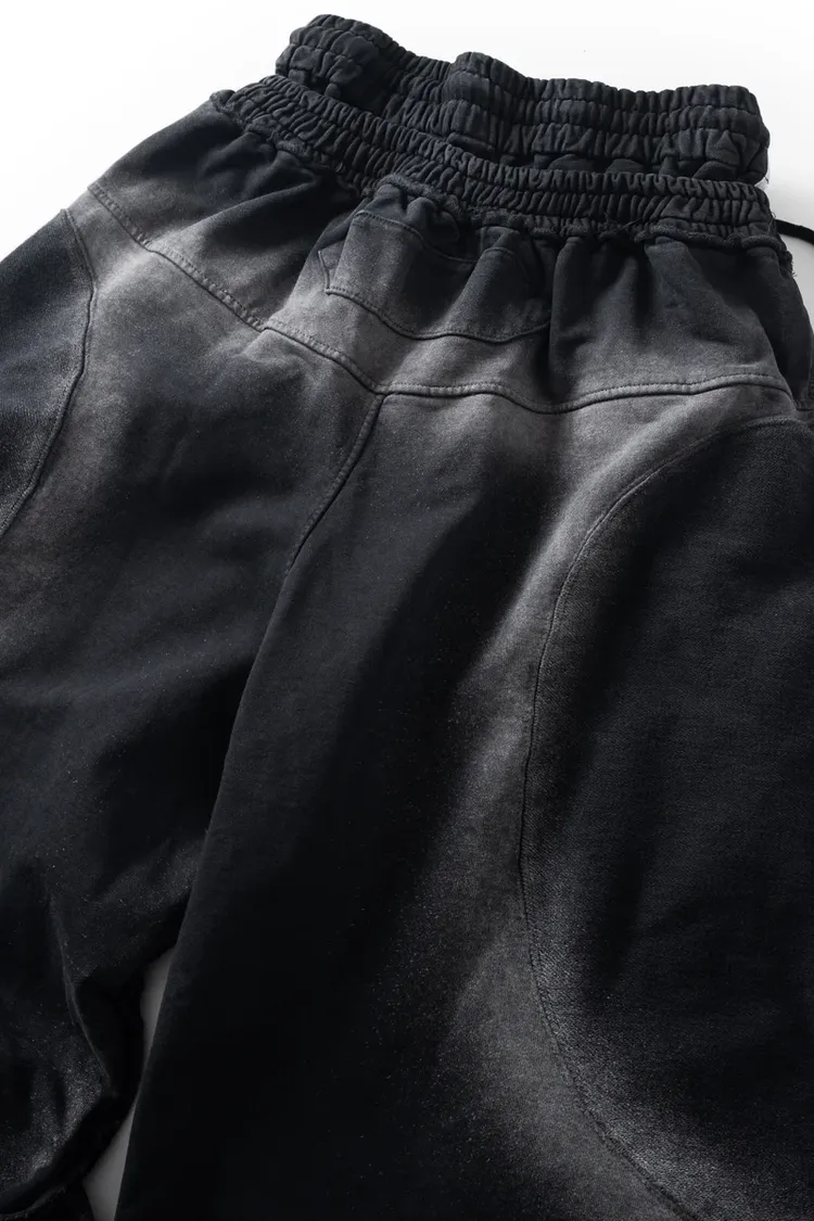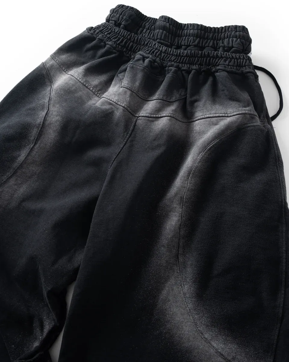 *Product Description : sweatpants in black. Baggy flared fit. 2 sizes. Heavy garment wash. Raw edge details. embroidered detail. Distressed finish. Unisex
