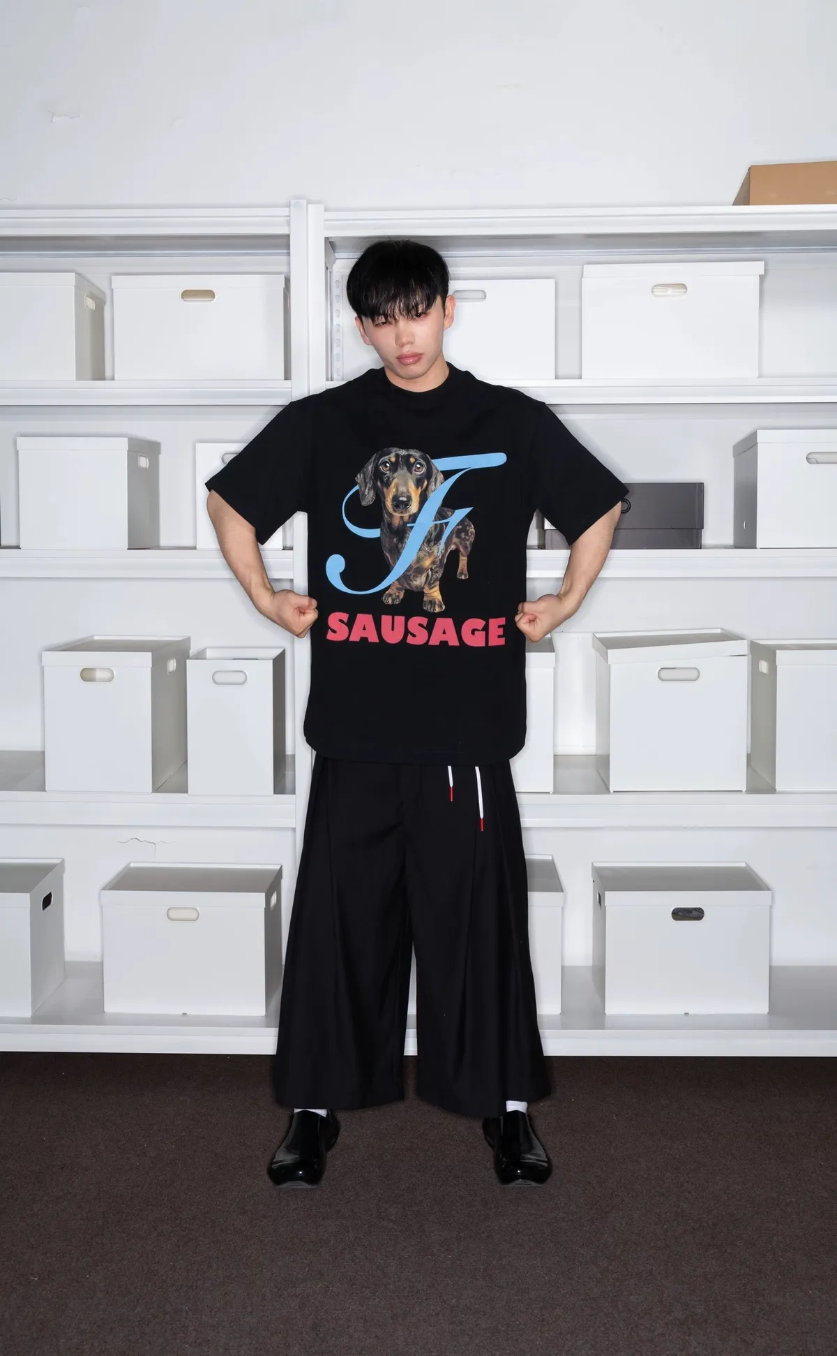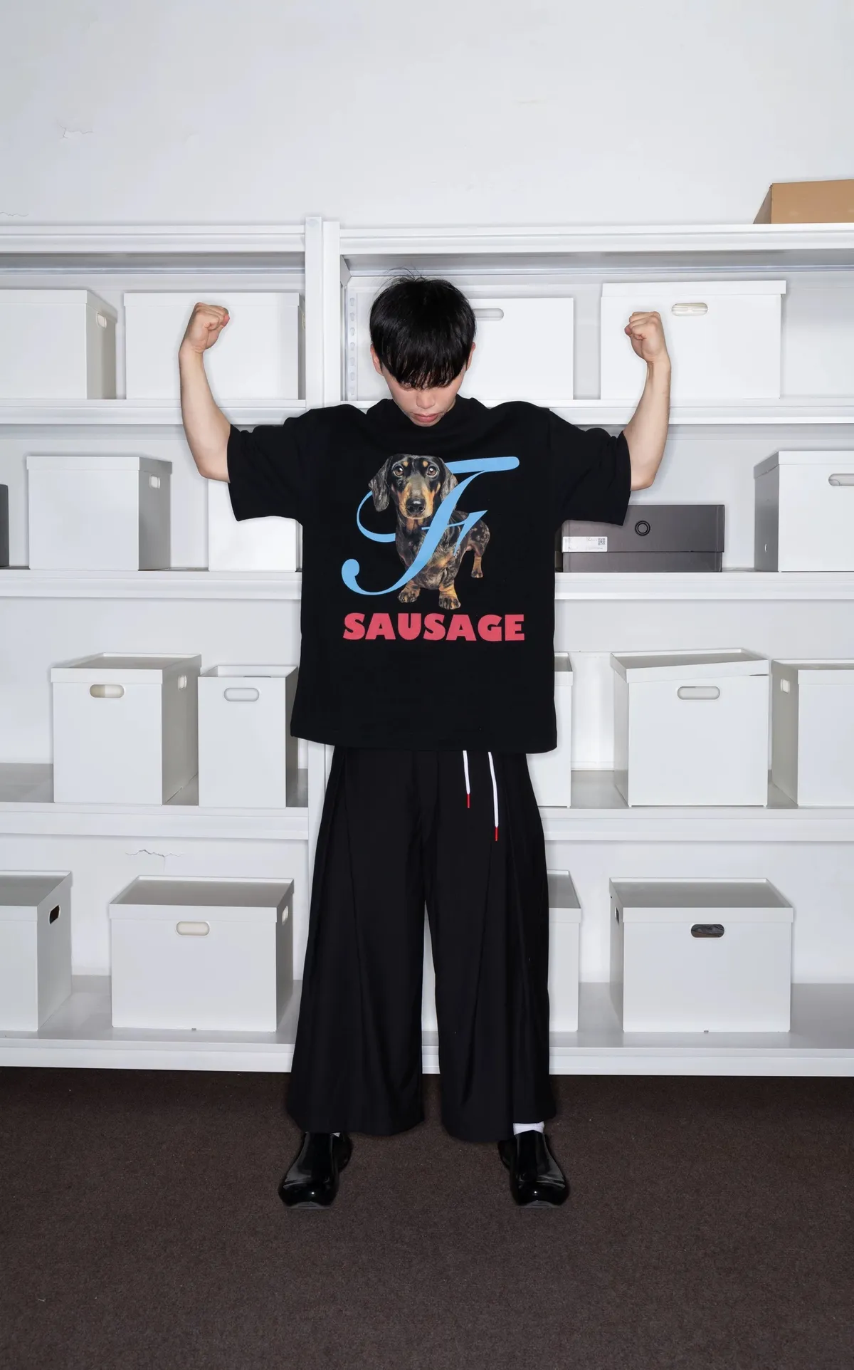 F4F 臘腸狗 小領口 短袖(黑/白)