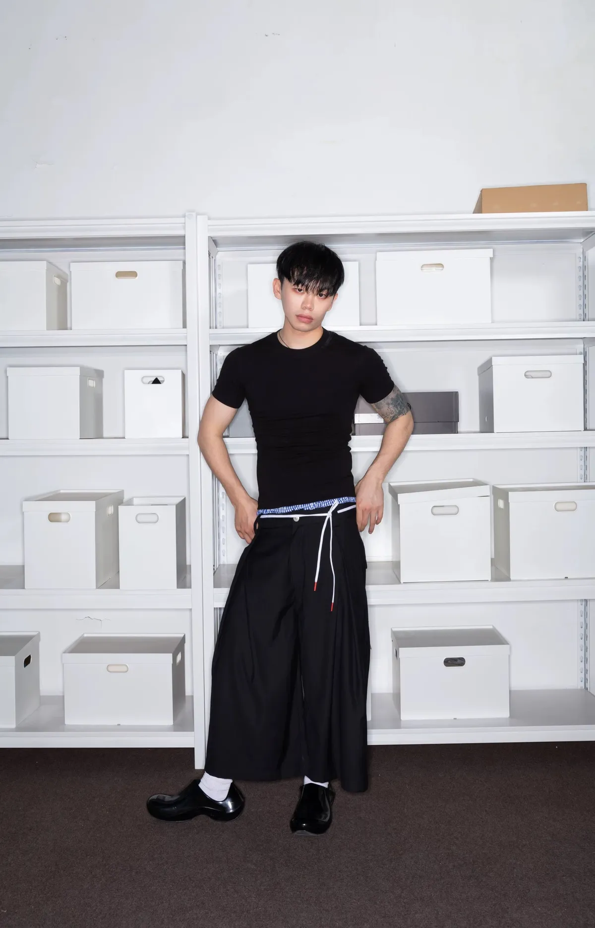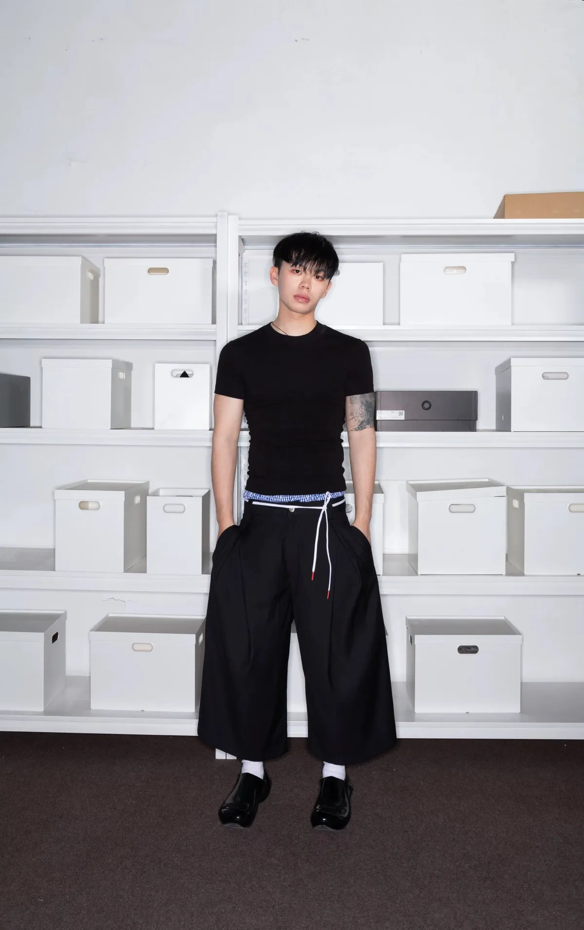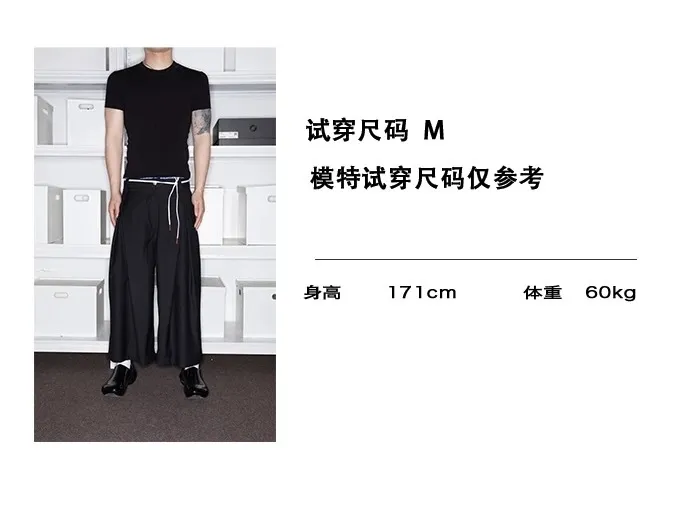 F4F 立體感 皺褶 西裝七分褲(黑色)