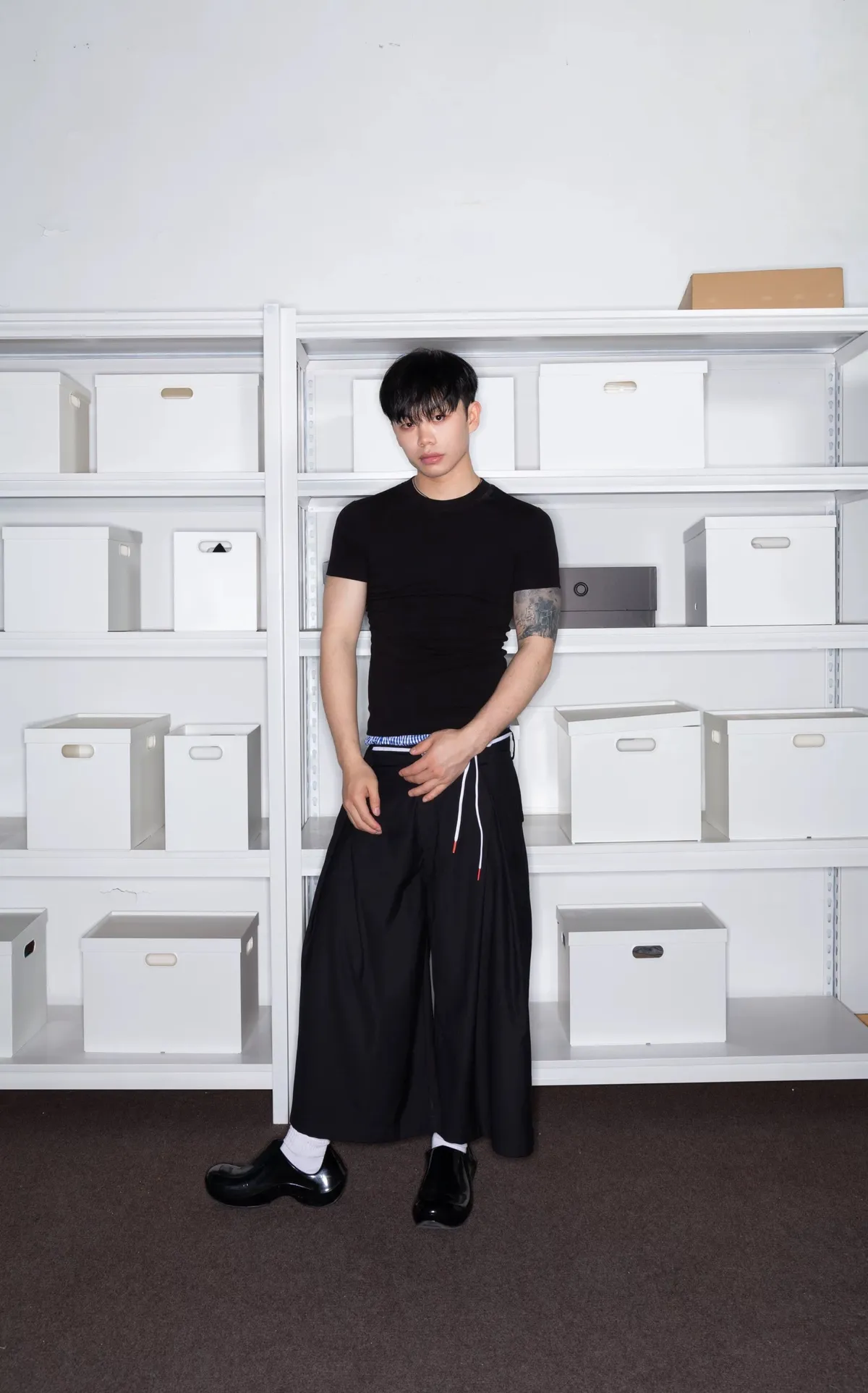 F4F 江草子 雙拉鍊 魚骨墊肩 襯衫 闊腿褲 西裝褲 西裝套裝