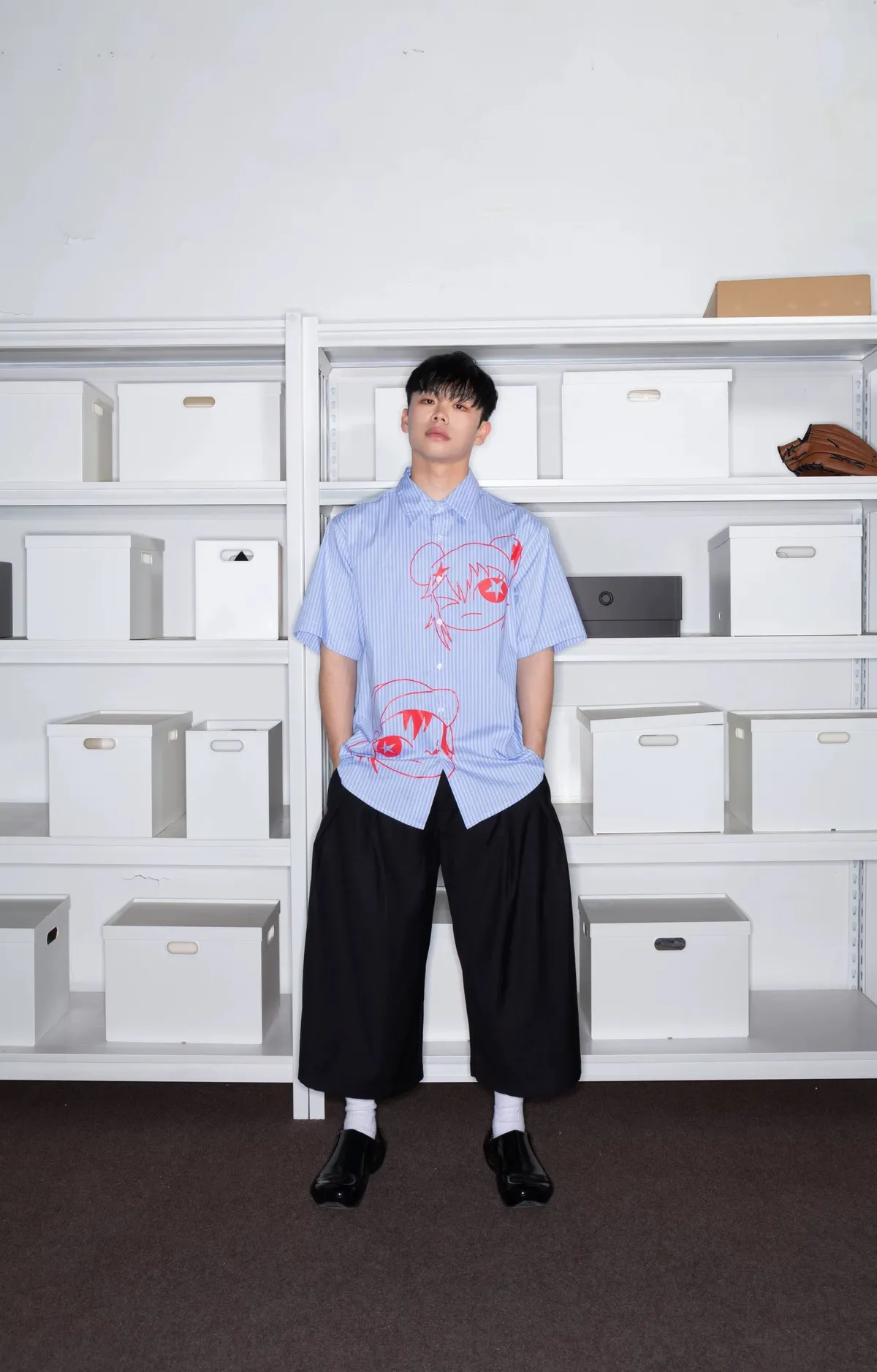 F4F 漫畫感 條紋 襯衫(藍色)