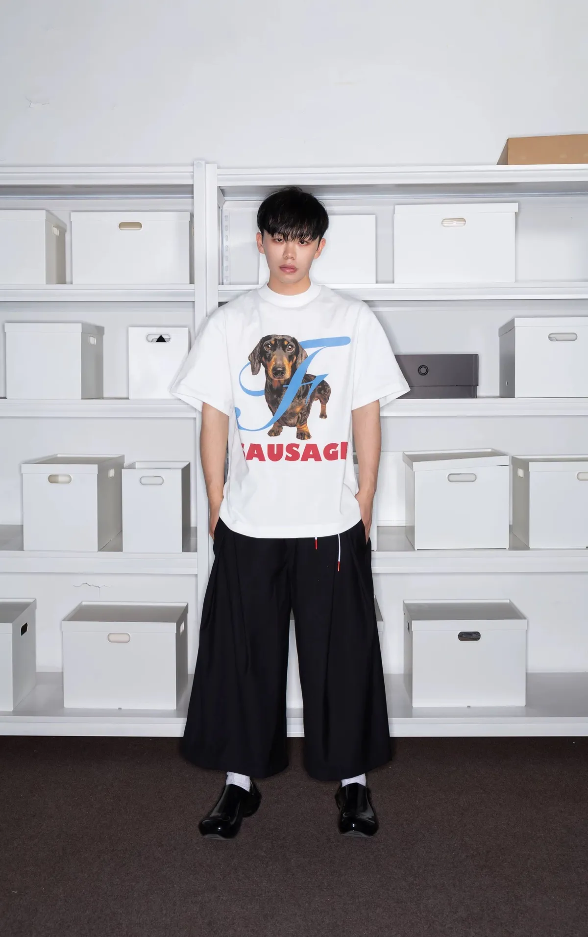 F4F 臘腸狗 小領口 短袖(黑/白)