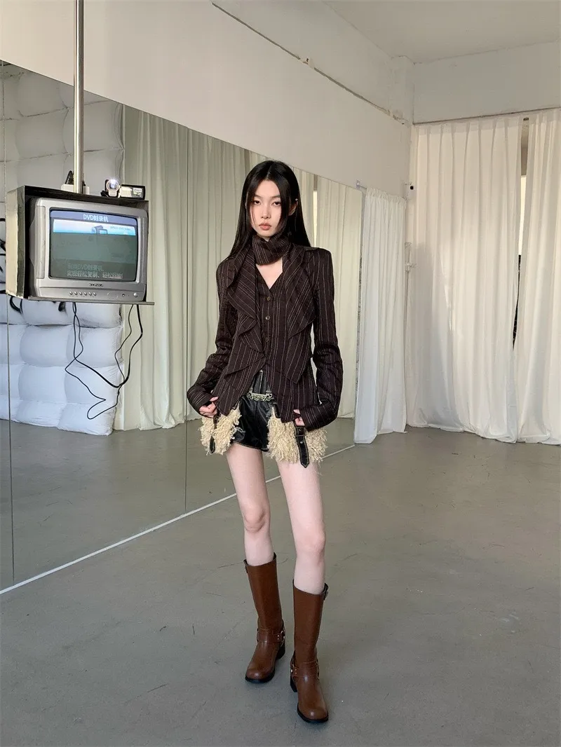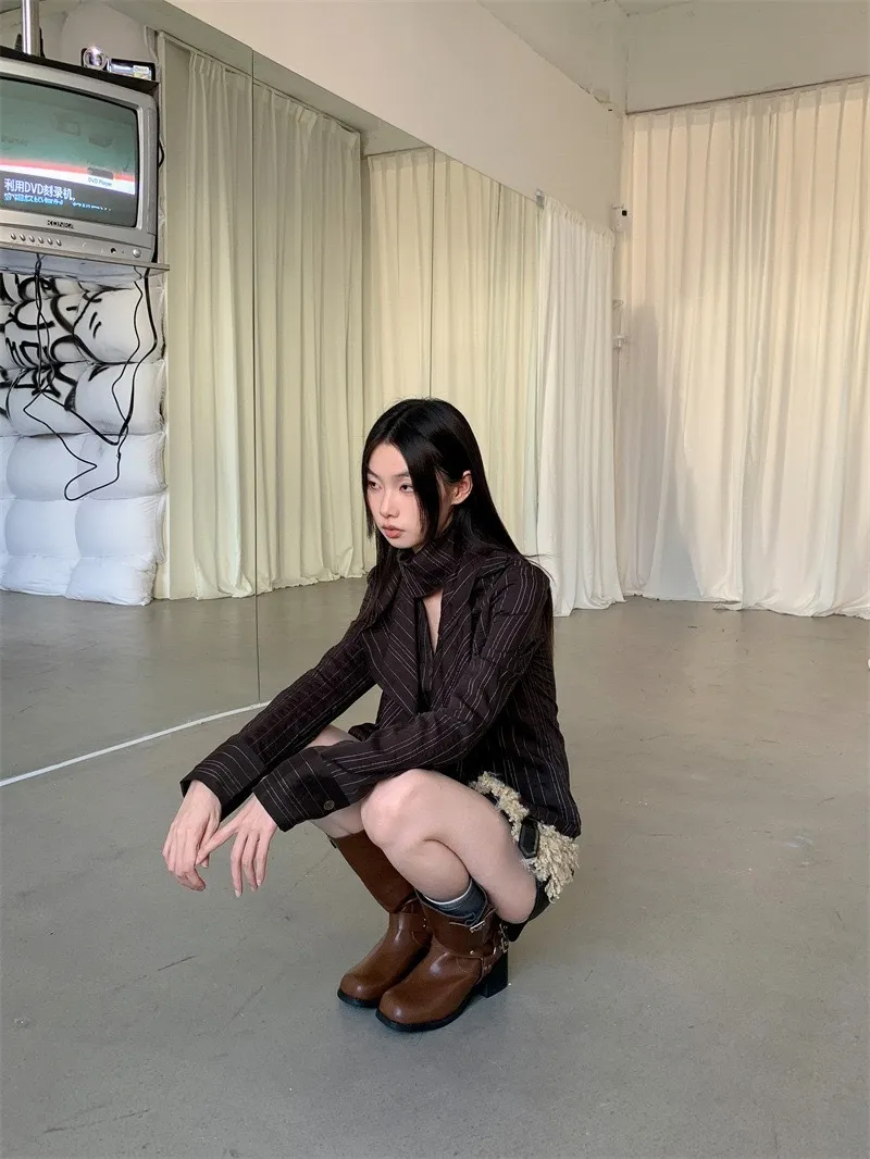 GIRLS 做舊 加絨 復古 外套(棕/深灰)