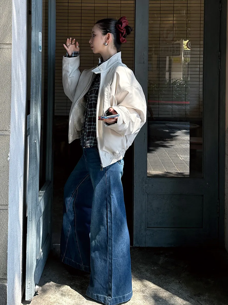 GIRLS 水洗立領 加厚 皮革 外套(黑/白/綠)