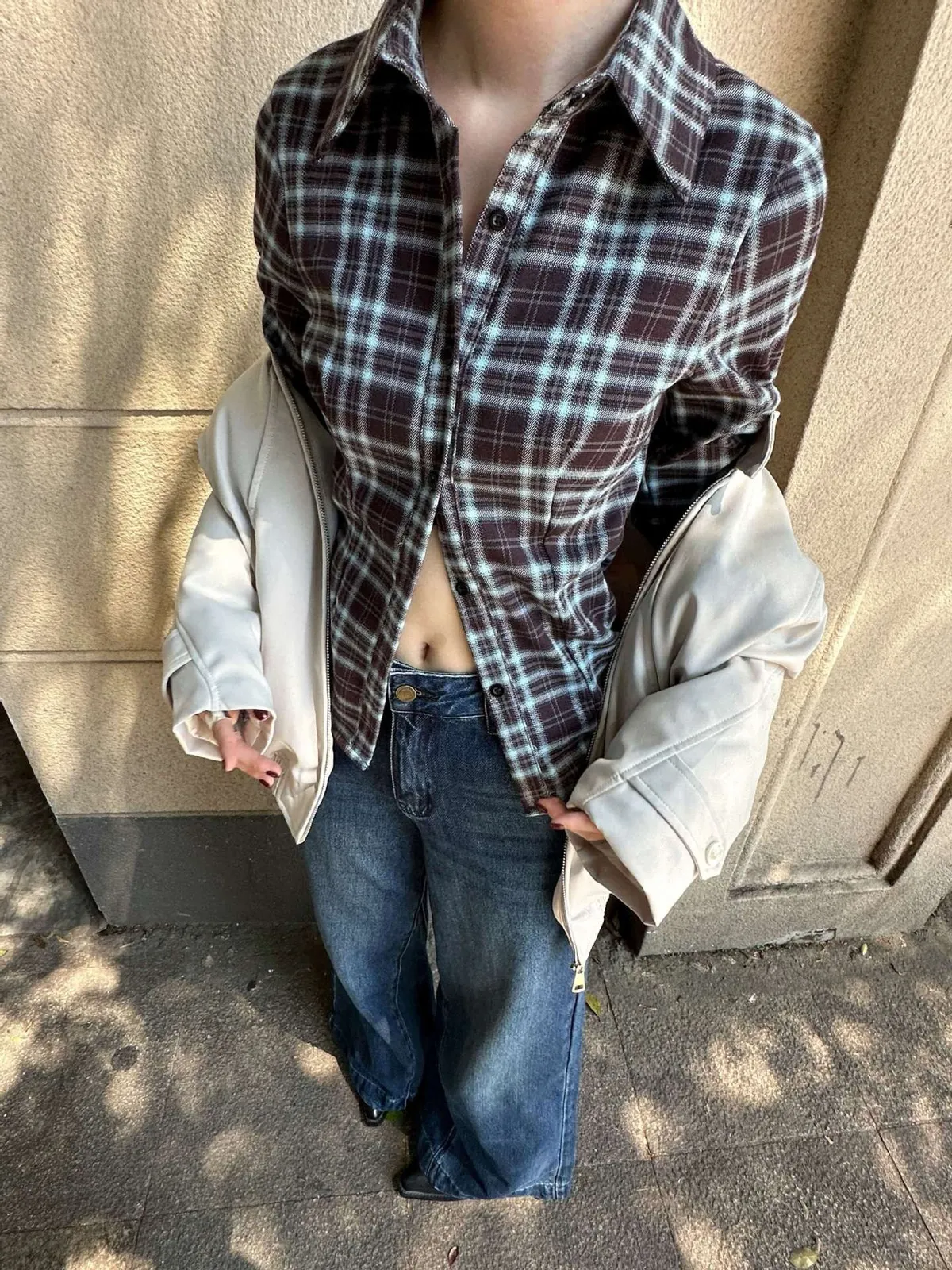 GIRLS 做舊 加絨 復古 外套(棕/深灰)