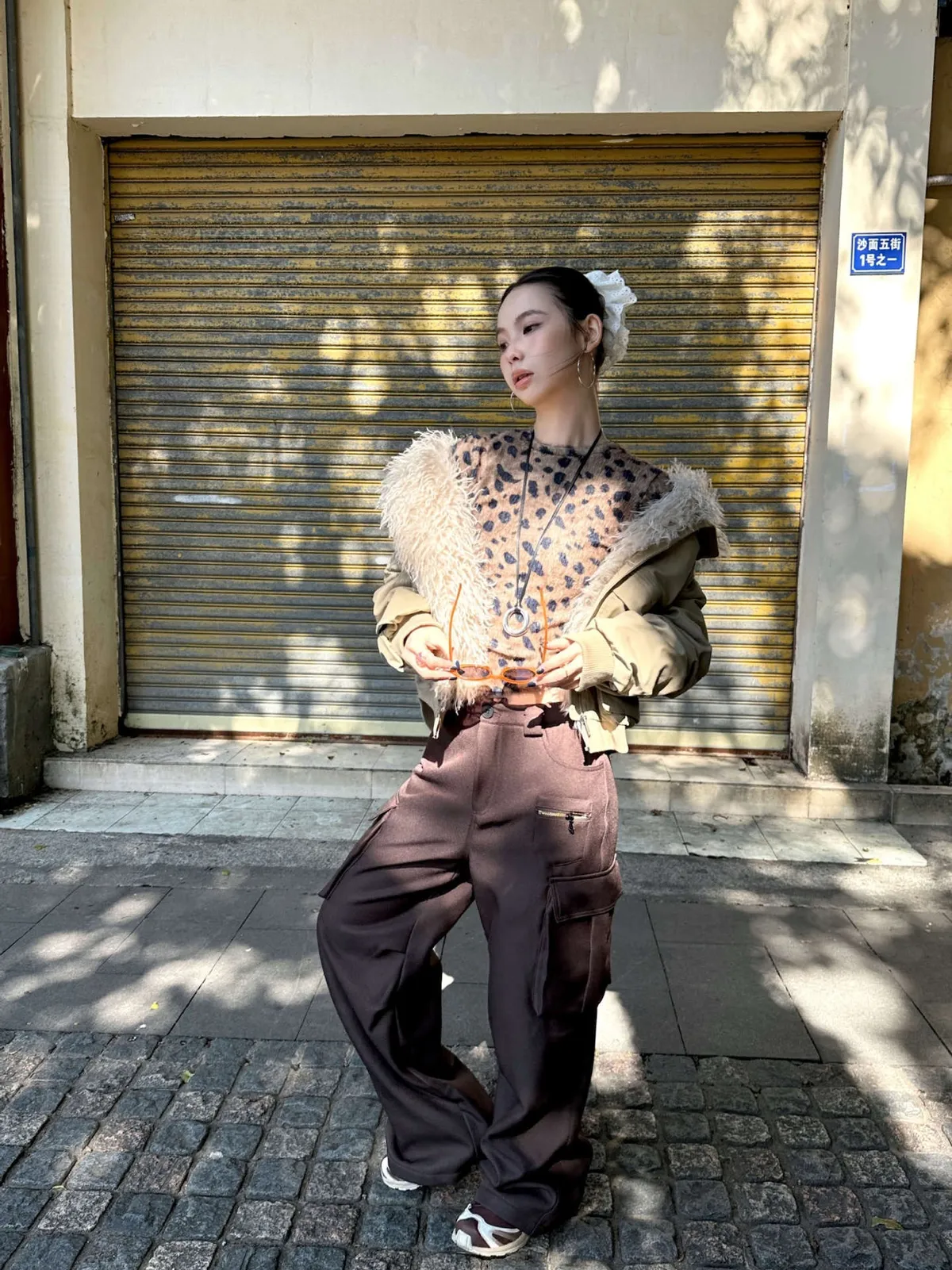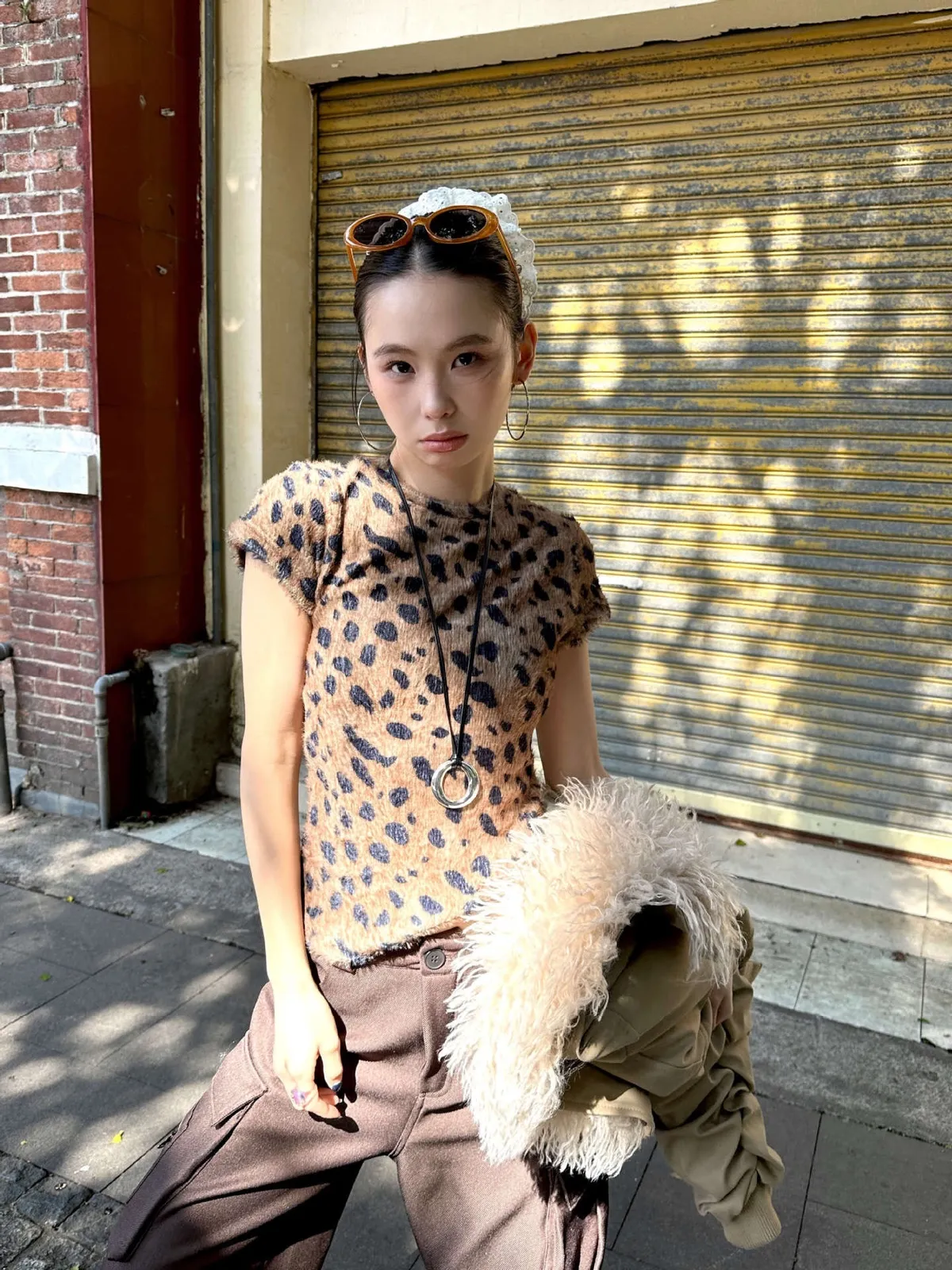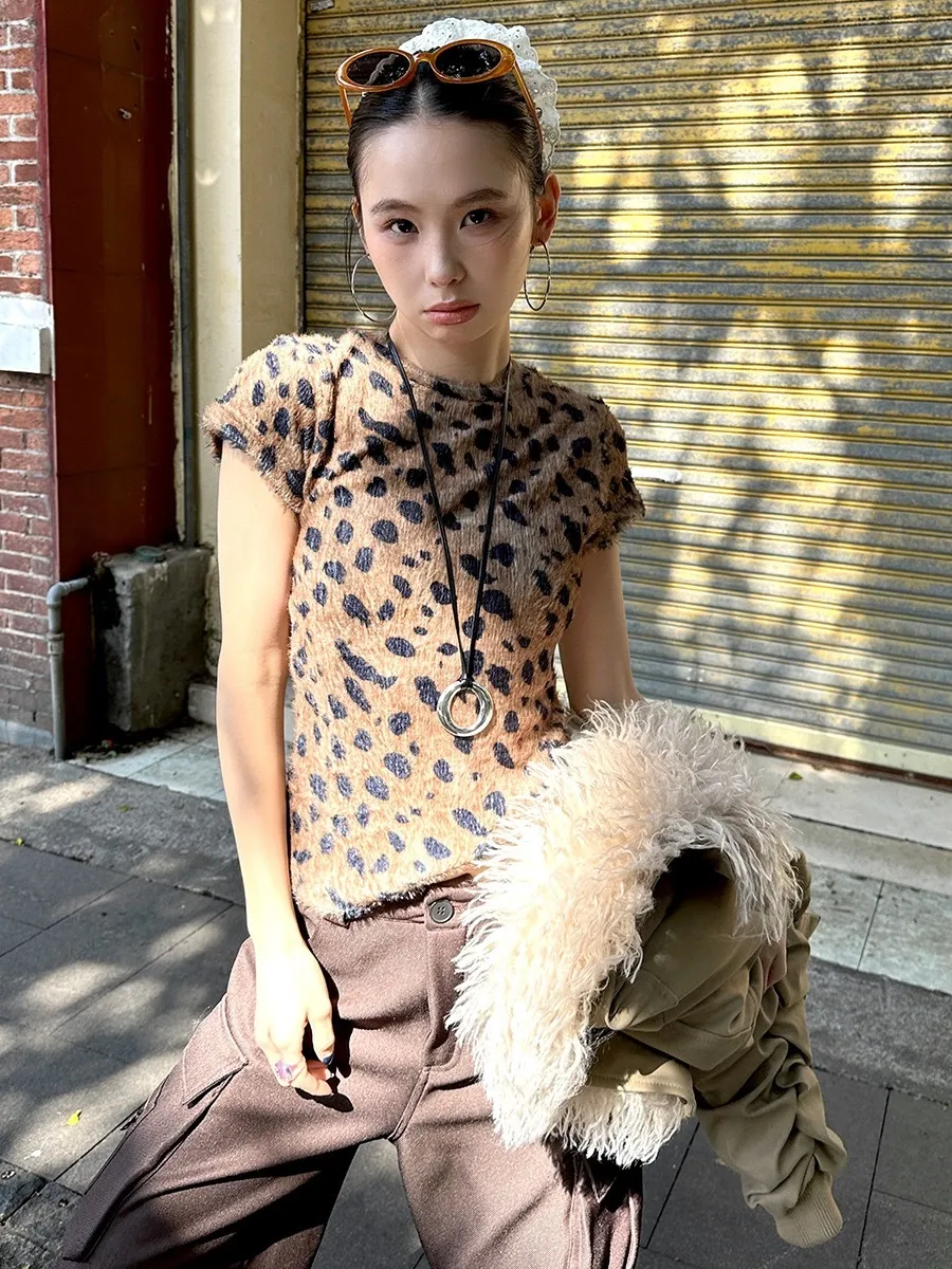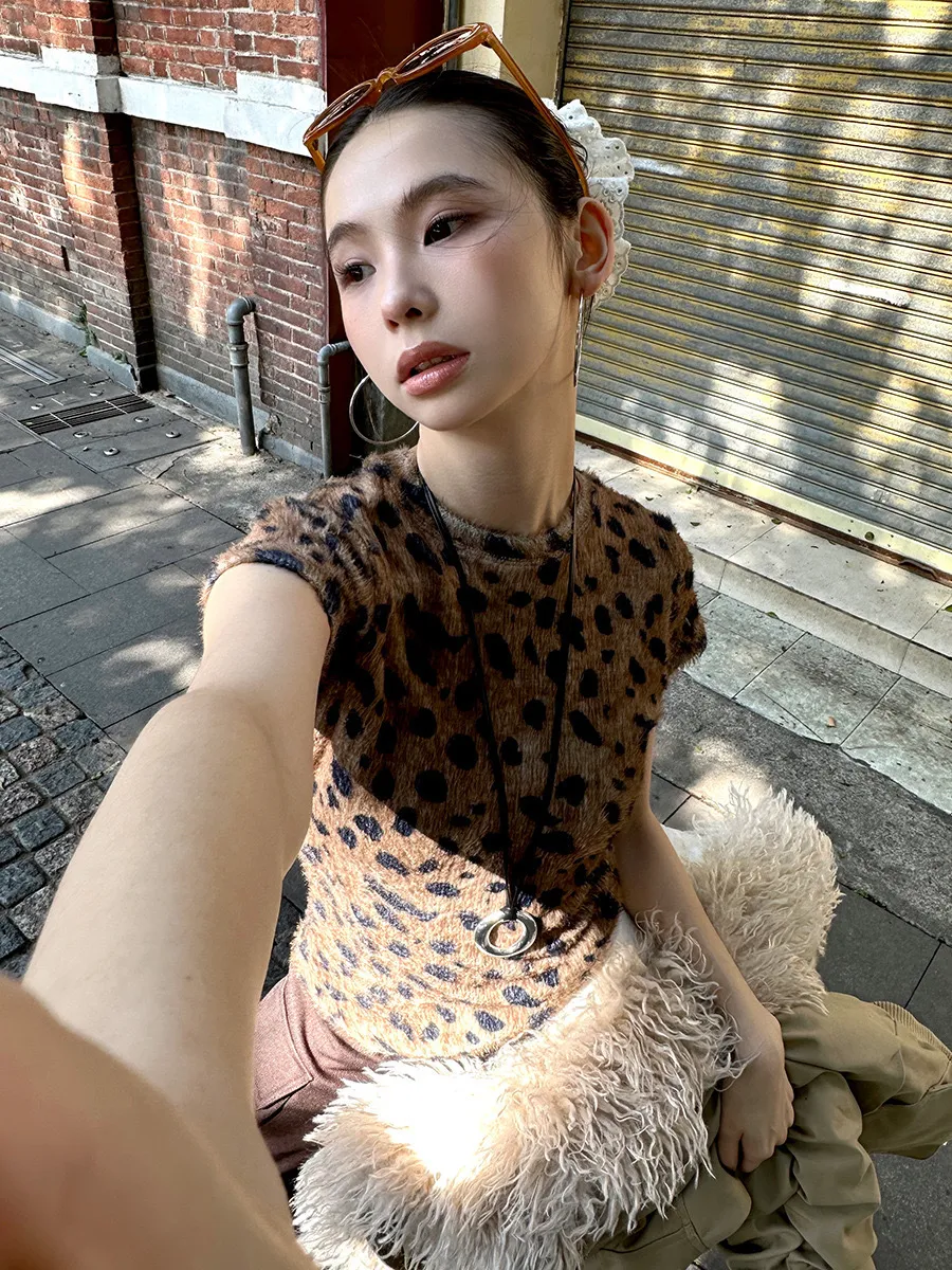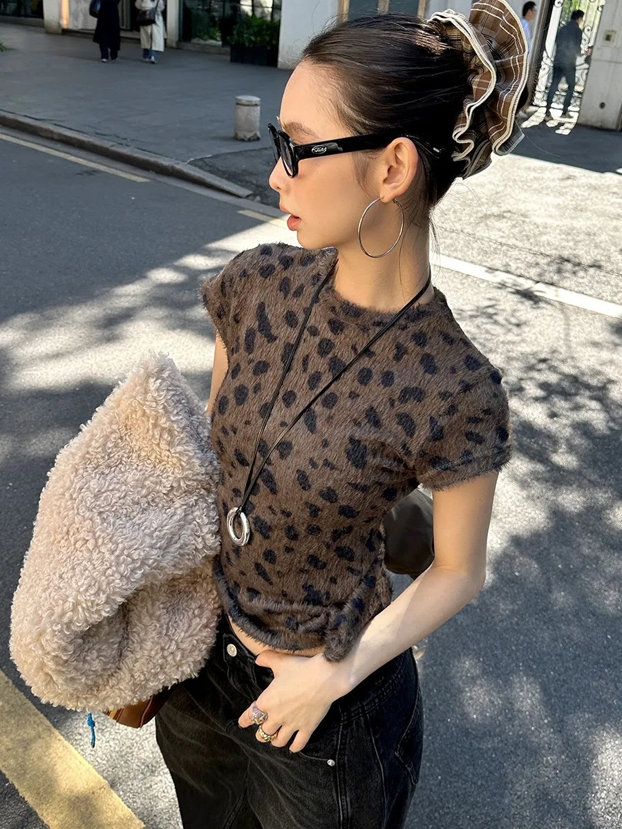 GIRLS 水貂絨 豹紋 短袖(卡其/棕色)