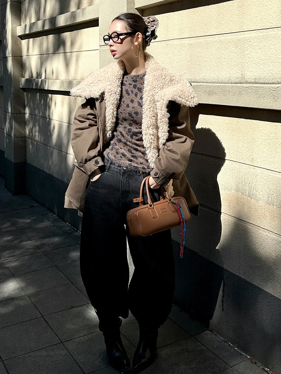 GIRLS 做舊 加絨 復古 外套(棕/深灰)