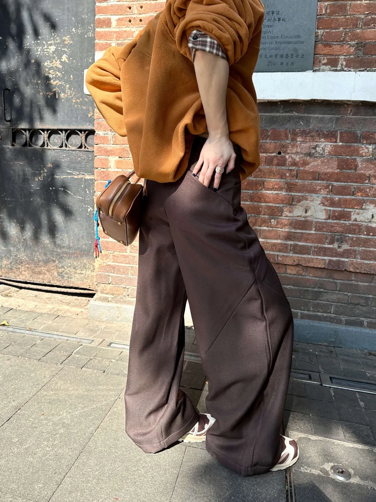 GIRLS 解構彎刀 闊腿 西裝褲(黑/白/棕)