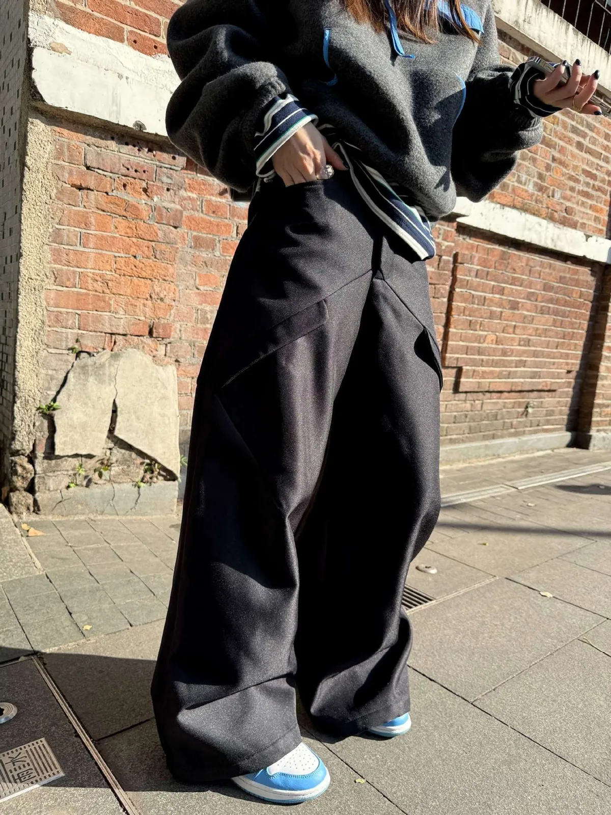 GIRLS 時裝感 不規則 大衣 外套(純灰)