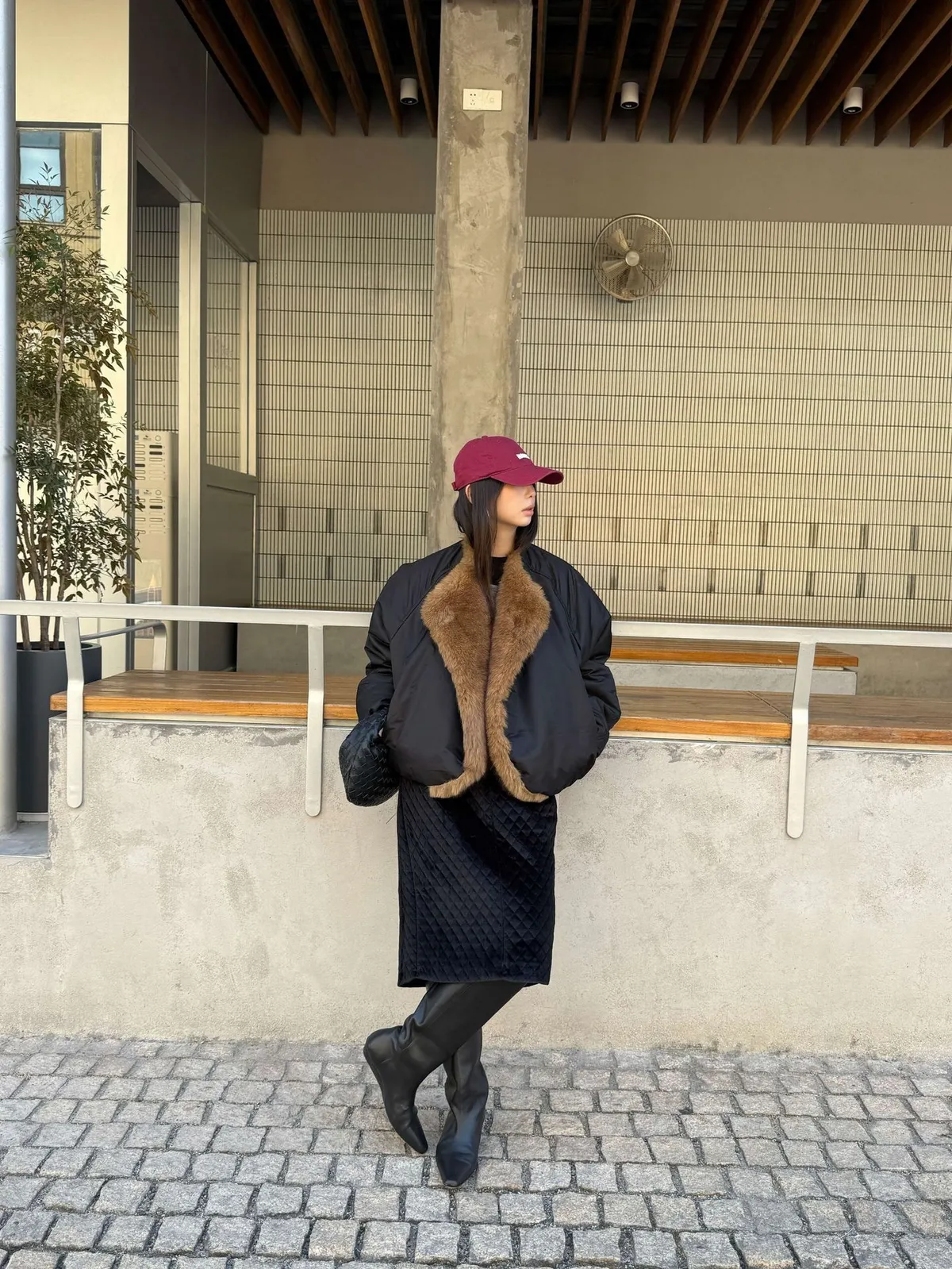 GIRLS 巴恩風 毛領 大衣 外套(黑色/墨綠)