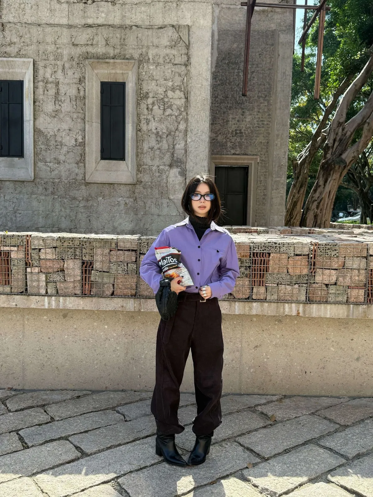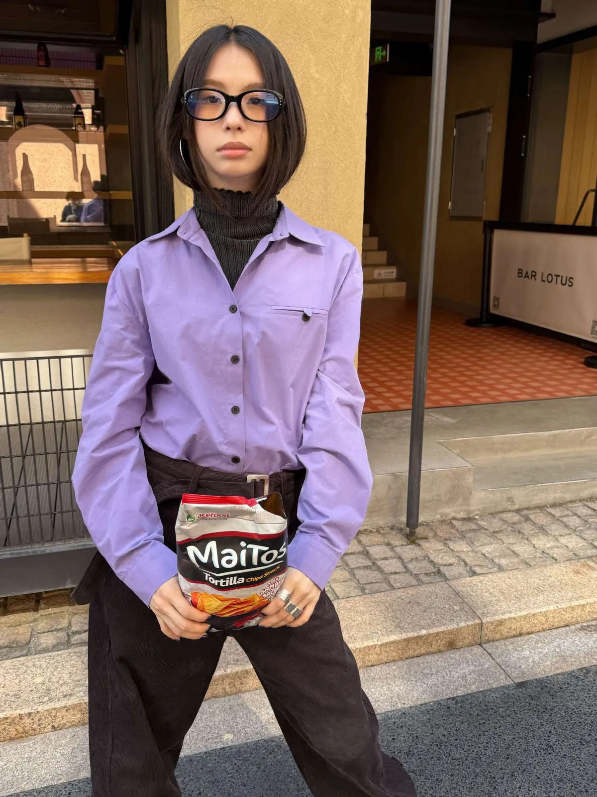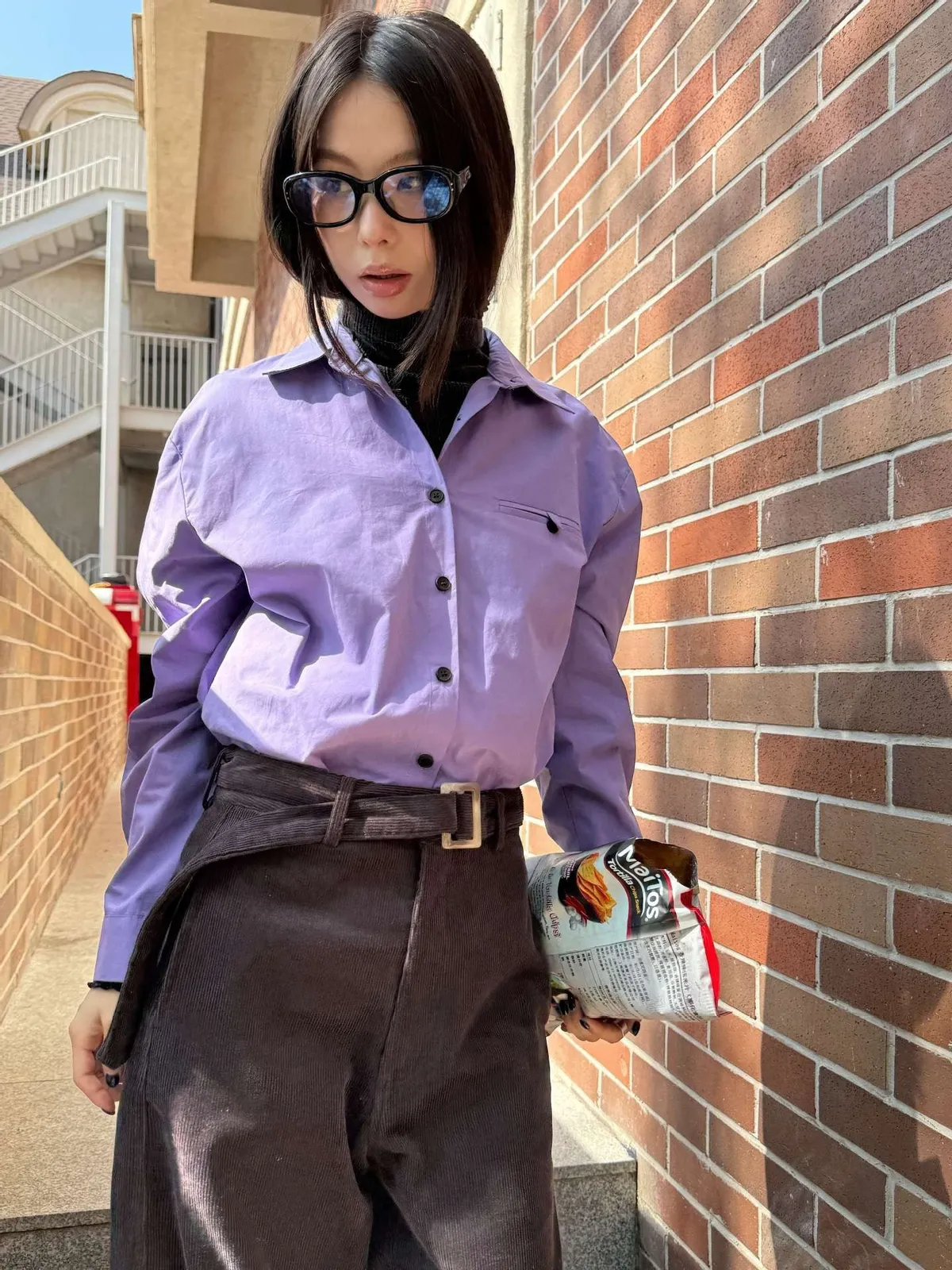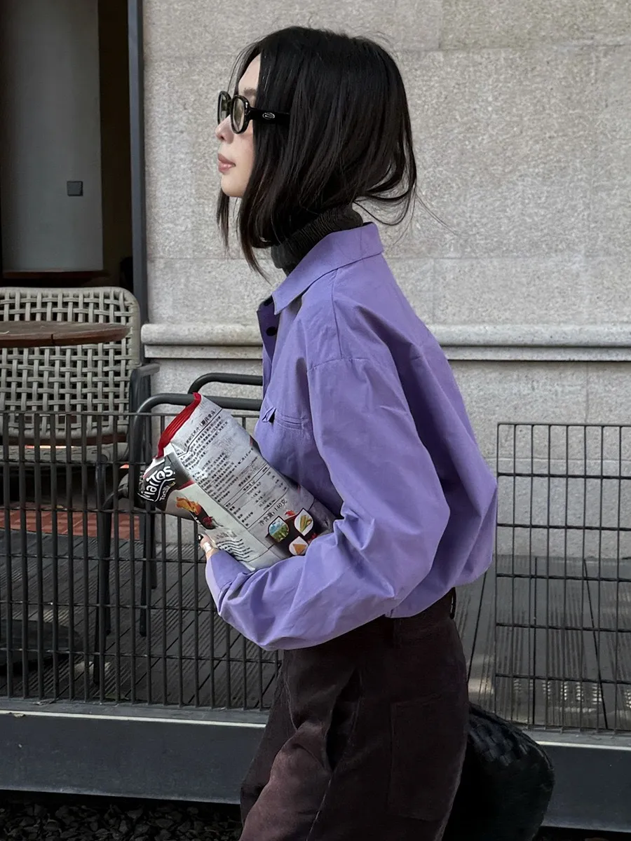 GIRLS 時髦亮色 設計感 長袖襯衫(藍/棕/紫)