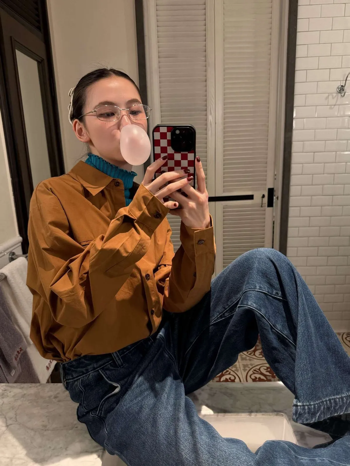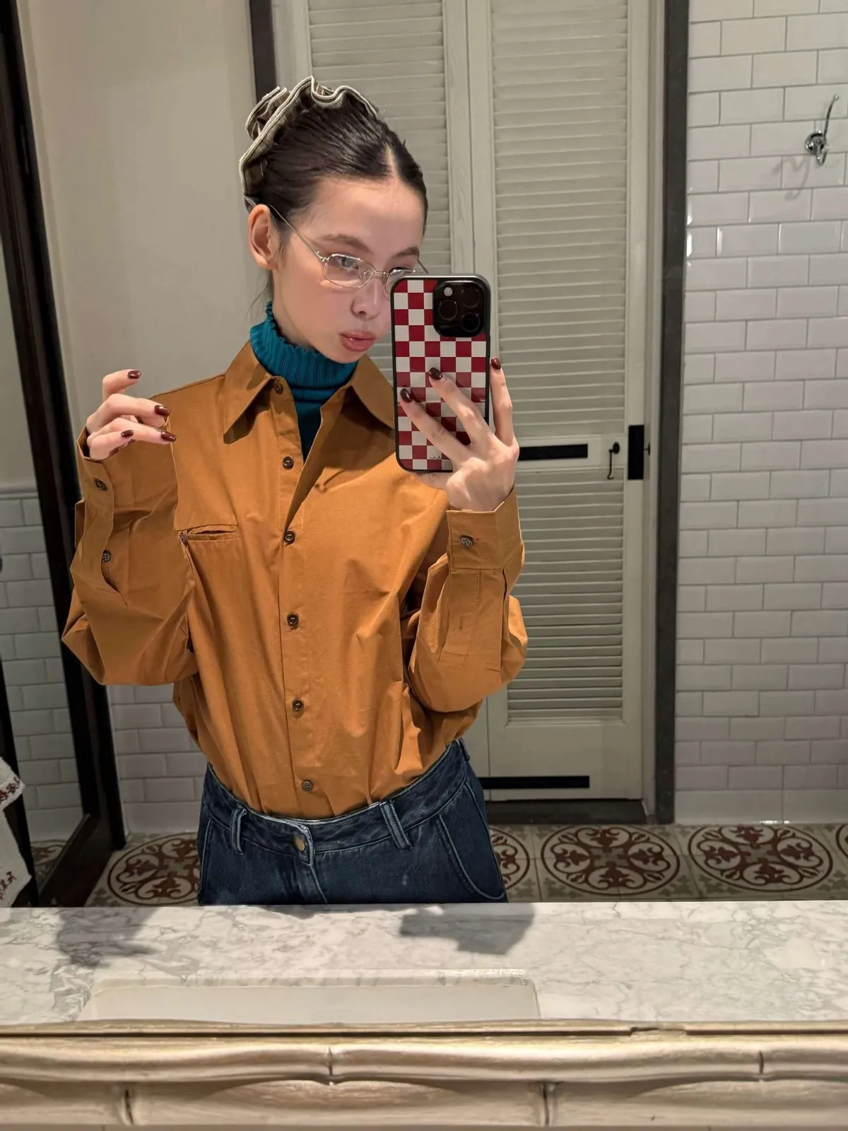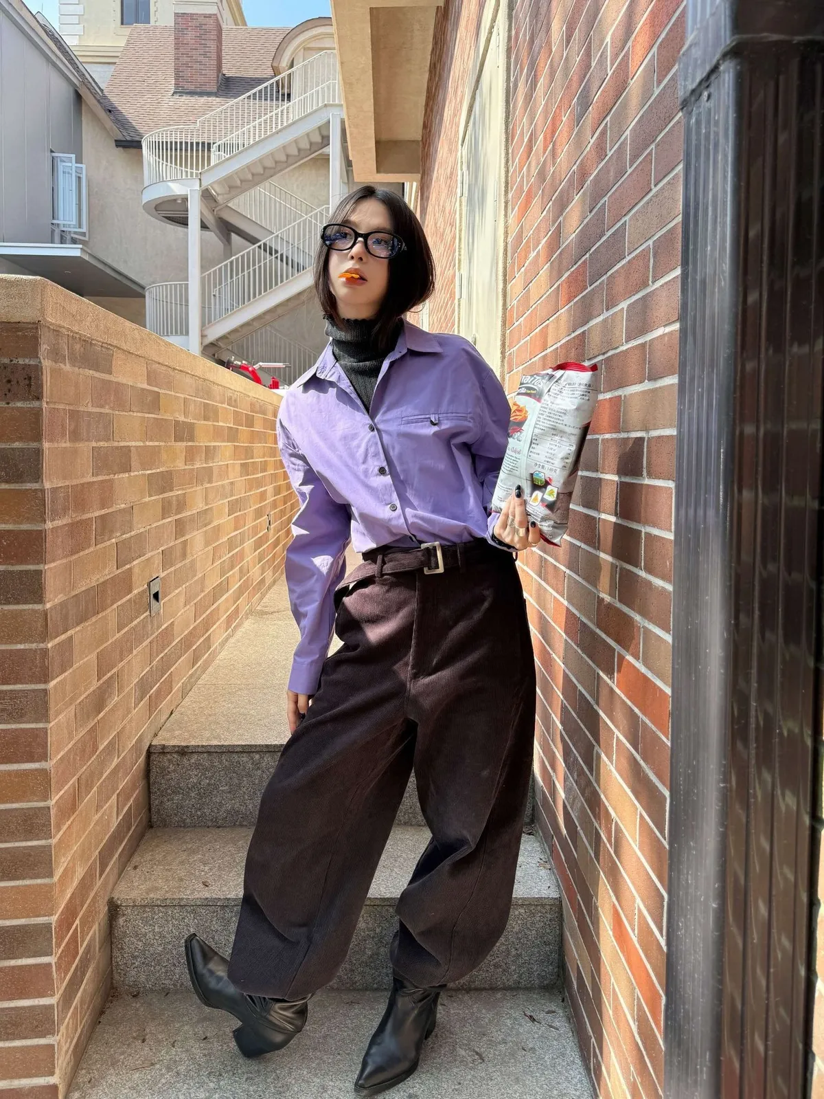 GIRLS 時髦亮色 設計感 長袖襯衫(藍/棕/紫)