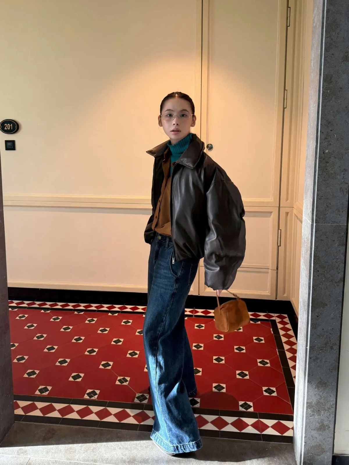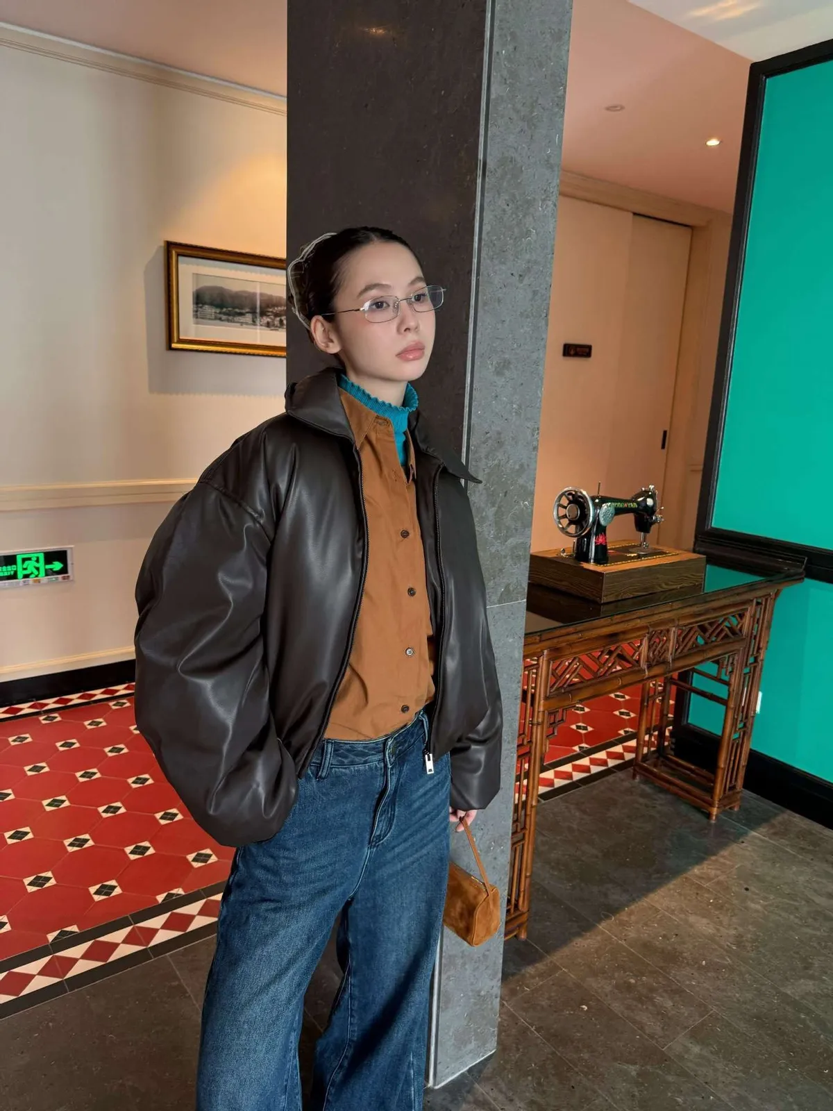GIRLS 水洗立領 加厚 皮革 外套(黑/白/綠)