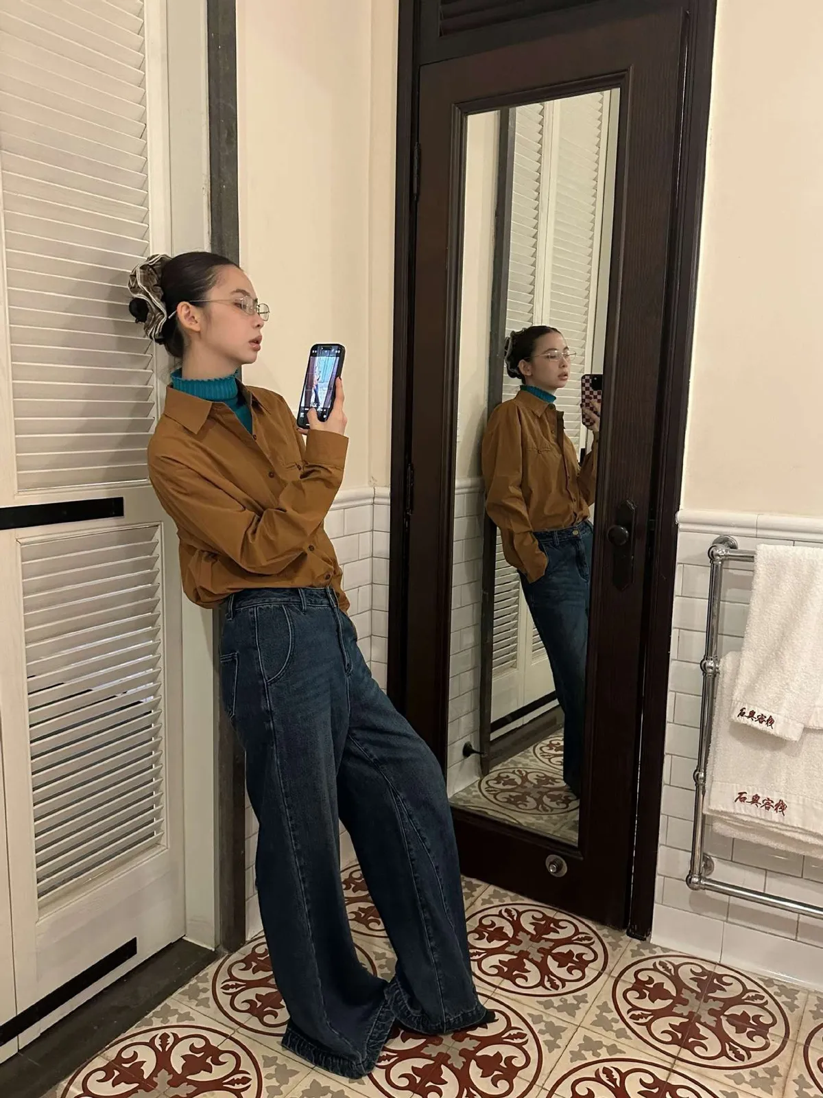 GIRLS 水洗 設計感 牛仔襯衫 牛仔褲 套裝(水洗藍)