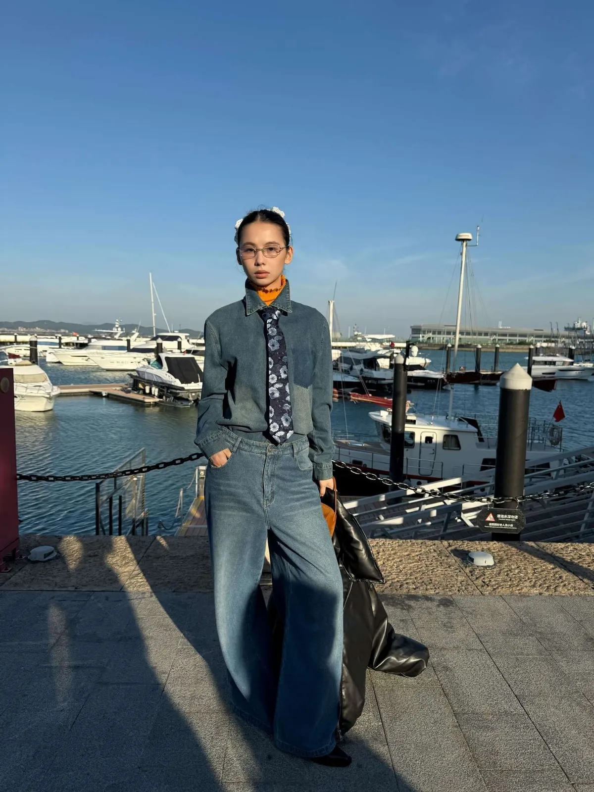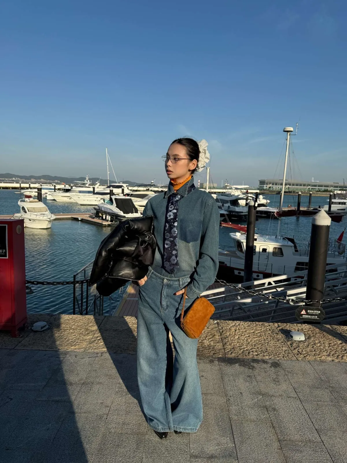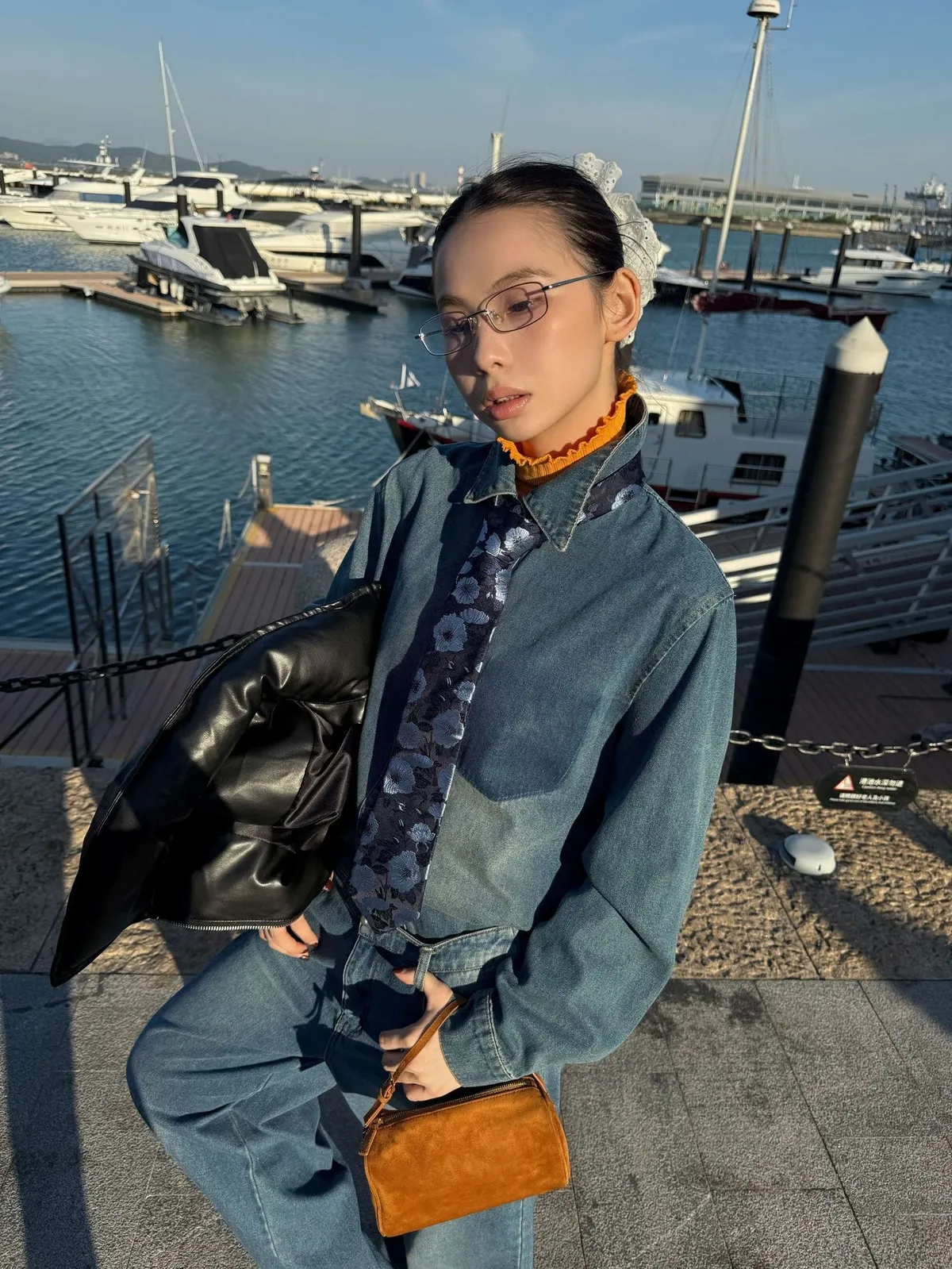 GIRLS 水洗 設計感 牛仔襯衫 牛仔褲 套裝(水洗藍)