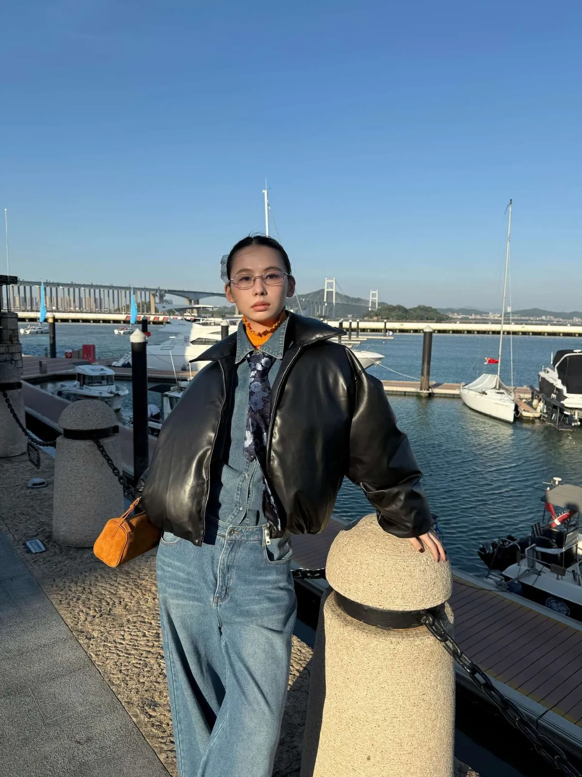 GIRLS 水洗立領 加厚 皮革 外套(黑/白/綠)