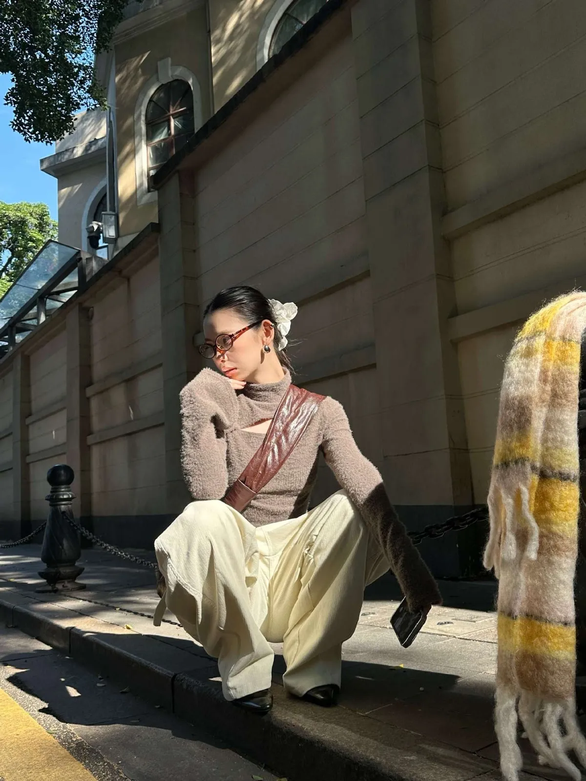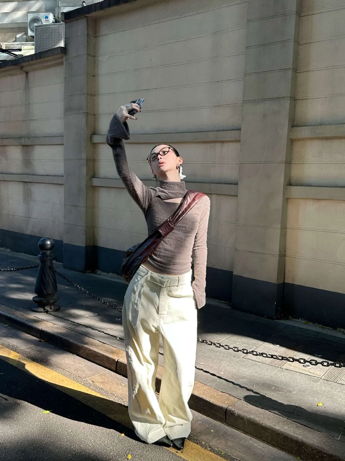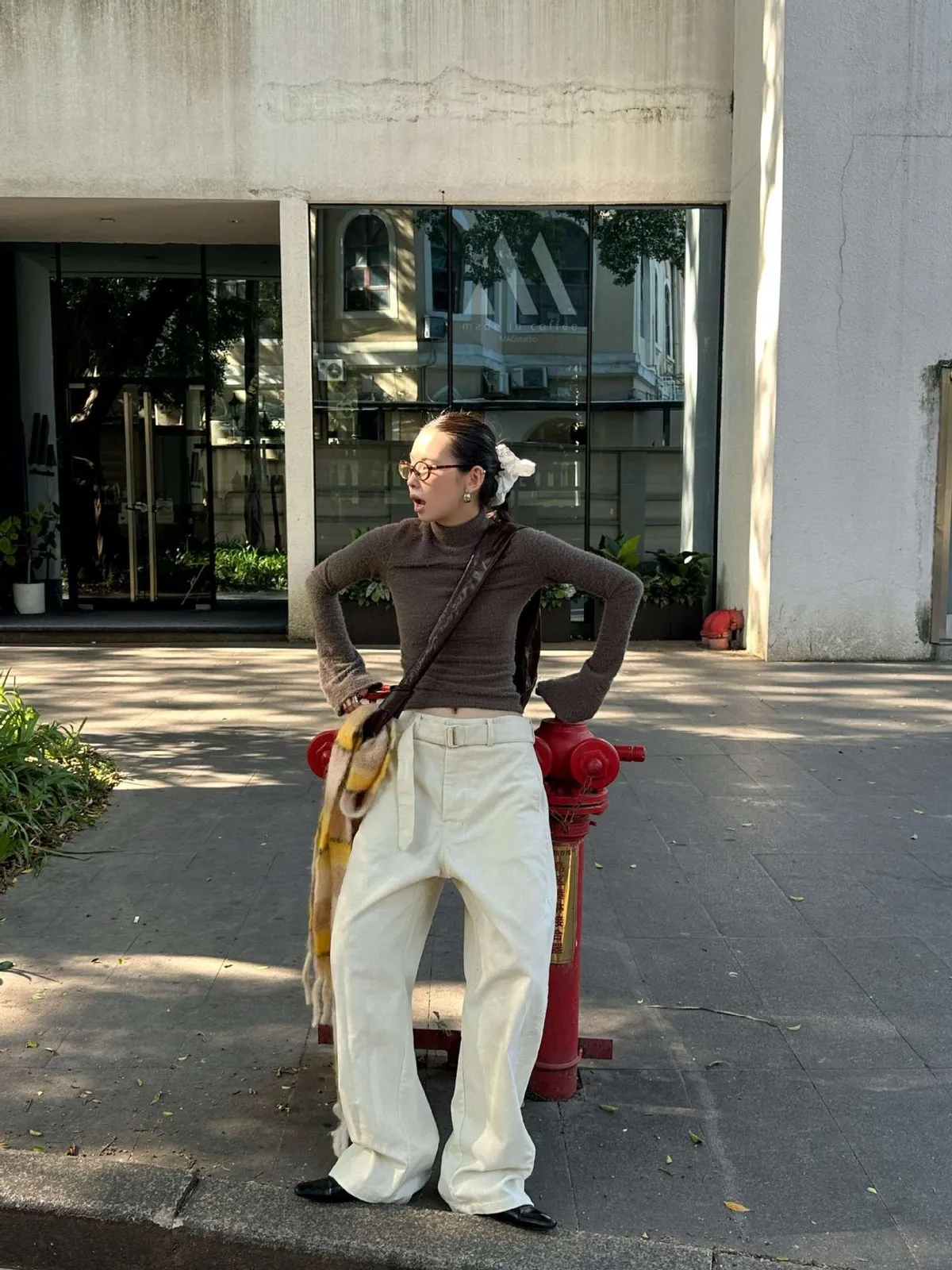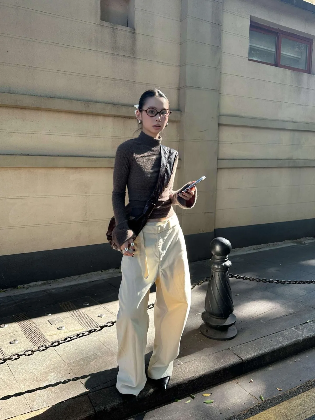 GIRLS 解構彎刀 闊腿 西裝褲(黑/白/棕)